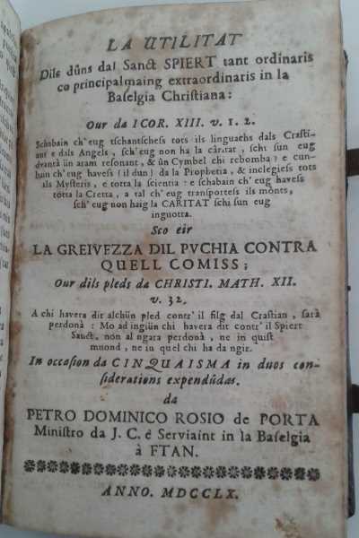 Sammlung von homilien, übersetzt in Rätoromanischer sprache aus und drucken sie in Scuol, gemeinde im Kanton Graubünden im Engadin, land der verbreitung dieser sprache.