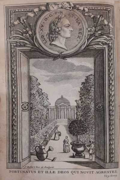 Nur der erste Band dieses Werks, der dem Dictionnaire étymologique et raisonné sur le jardinage gewidmet ist. Jean-Roger Schabol, eine interessante Figur des Geistlichen und Gärtners, setzt sich im umfangreichen Vorwort zum Wörterbuch das Ziel, "excellens Ouvriers" auszubilden, indem er eine rationale und wissenschaftliche Sicht auf die Kunst des Gärtnerns und der Gartenbaukunst anwendet und Innovationen vorschlägt, die er selbst hat experimentiert mit. . Der Band ist mit 19 Tafeln illustriert. eingraviert ft und eine wunderschöne Gravur auf dem Frontispiz, die den Blick auf einen italienischen Garten mit dem Vergilischen Vers Fortunatus et ille Deos qui novit agrestes zeigt, überragt von einem Tondo mit dem Profil von Ludwig XV