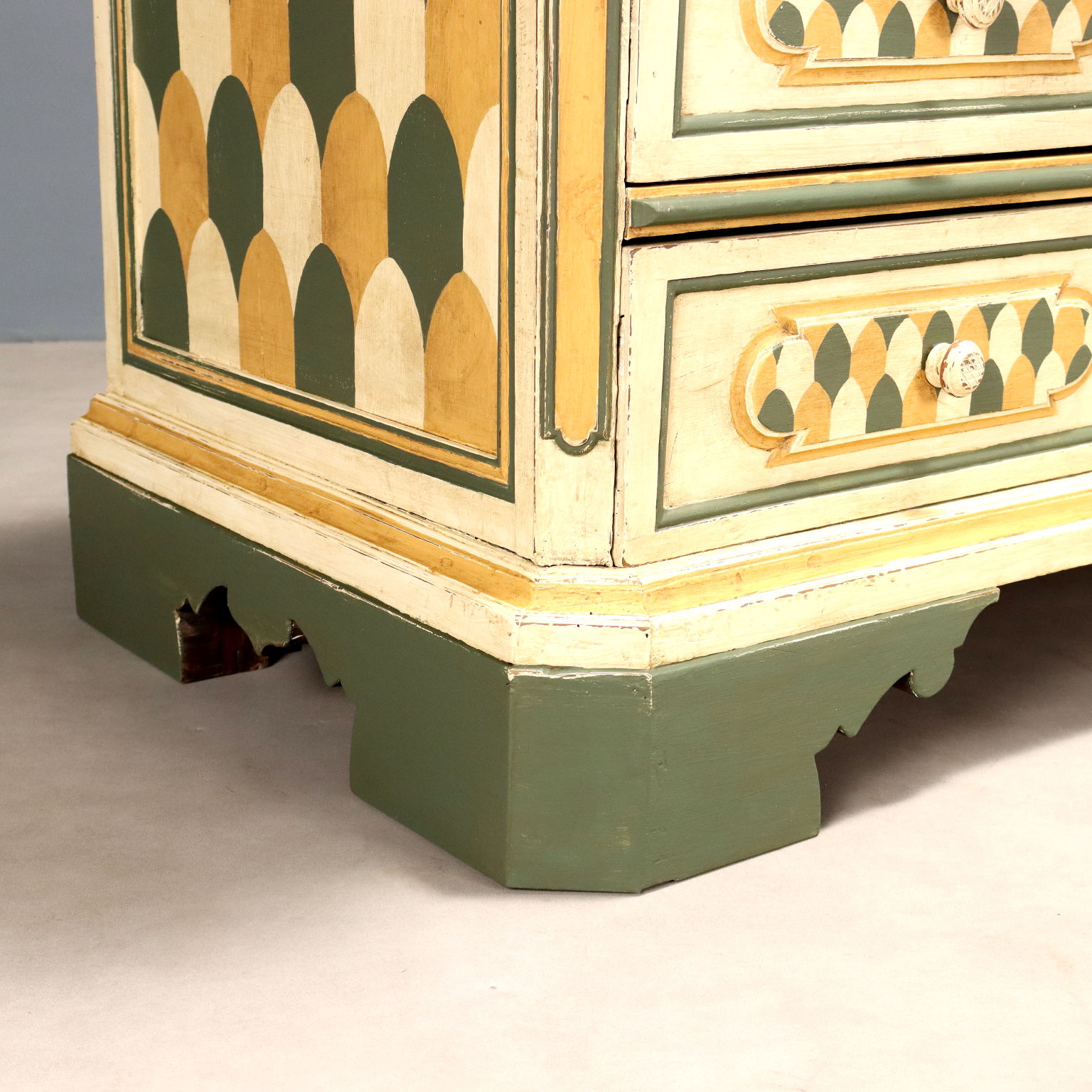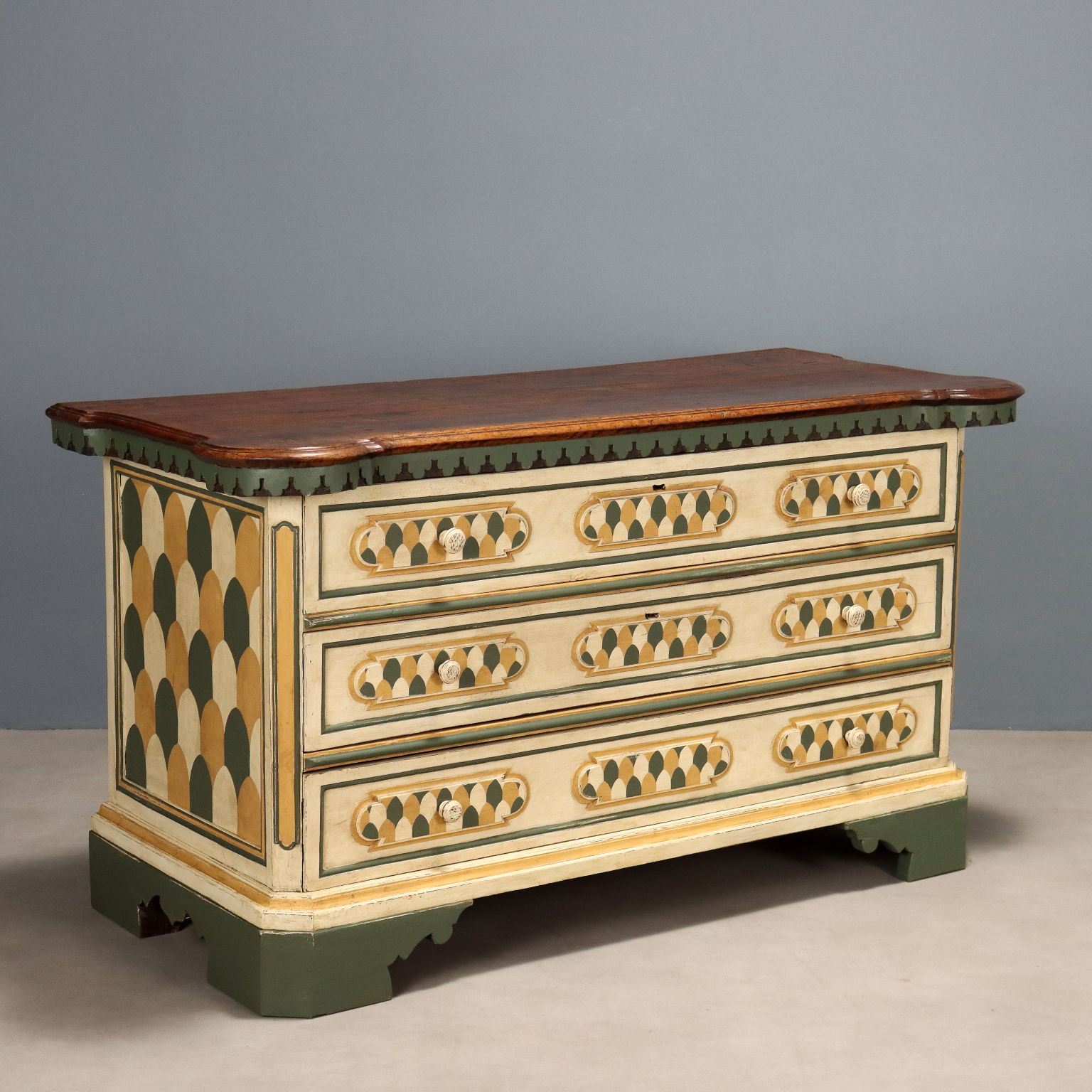 Una caratteristica cassettiera con alzata emiliana di perfetto gusto barocchetto