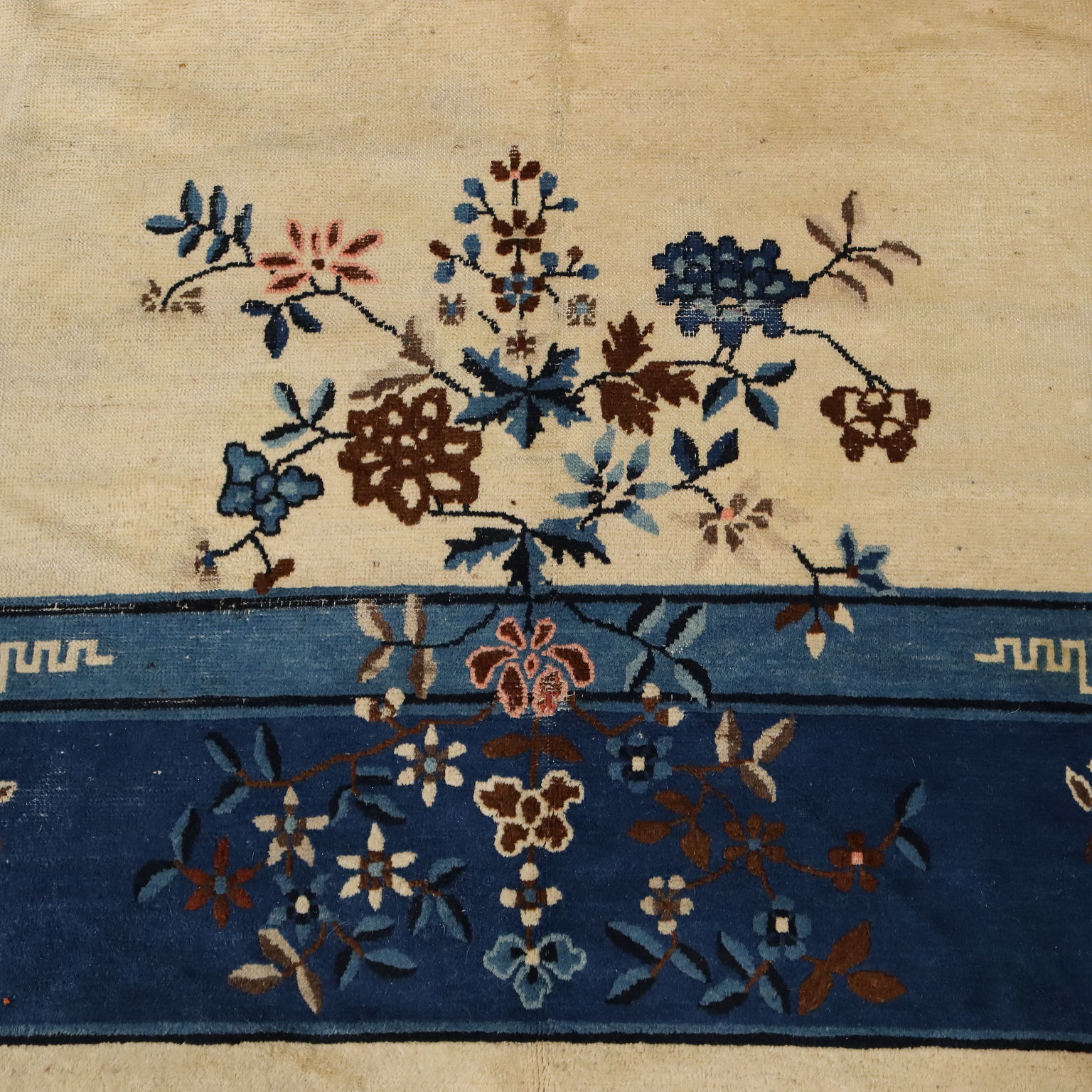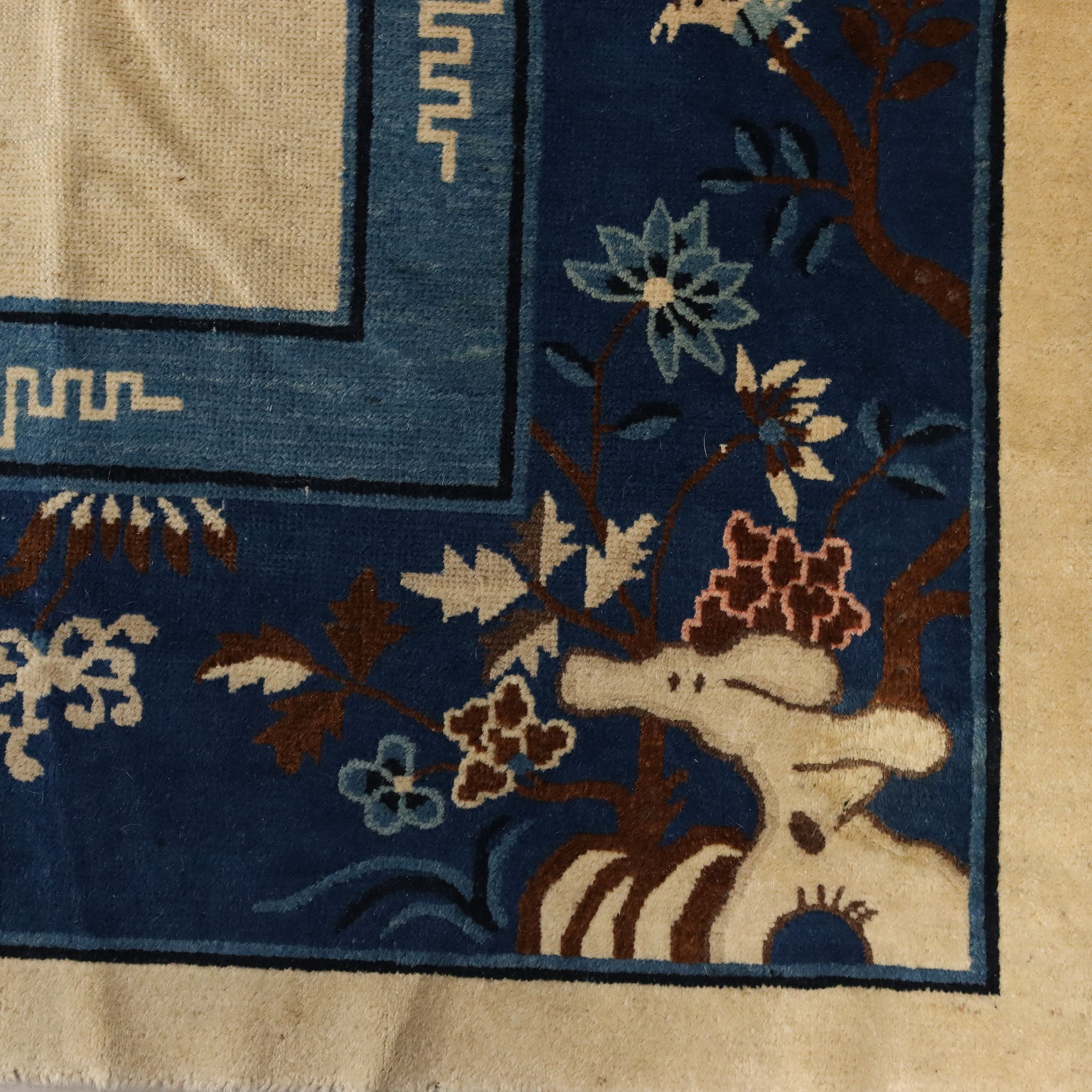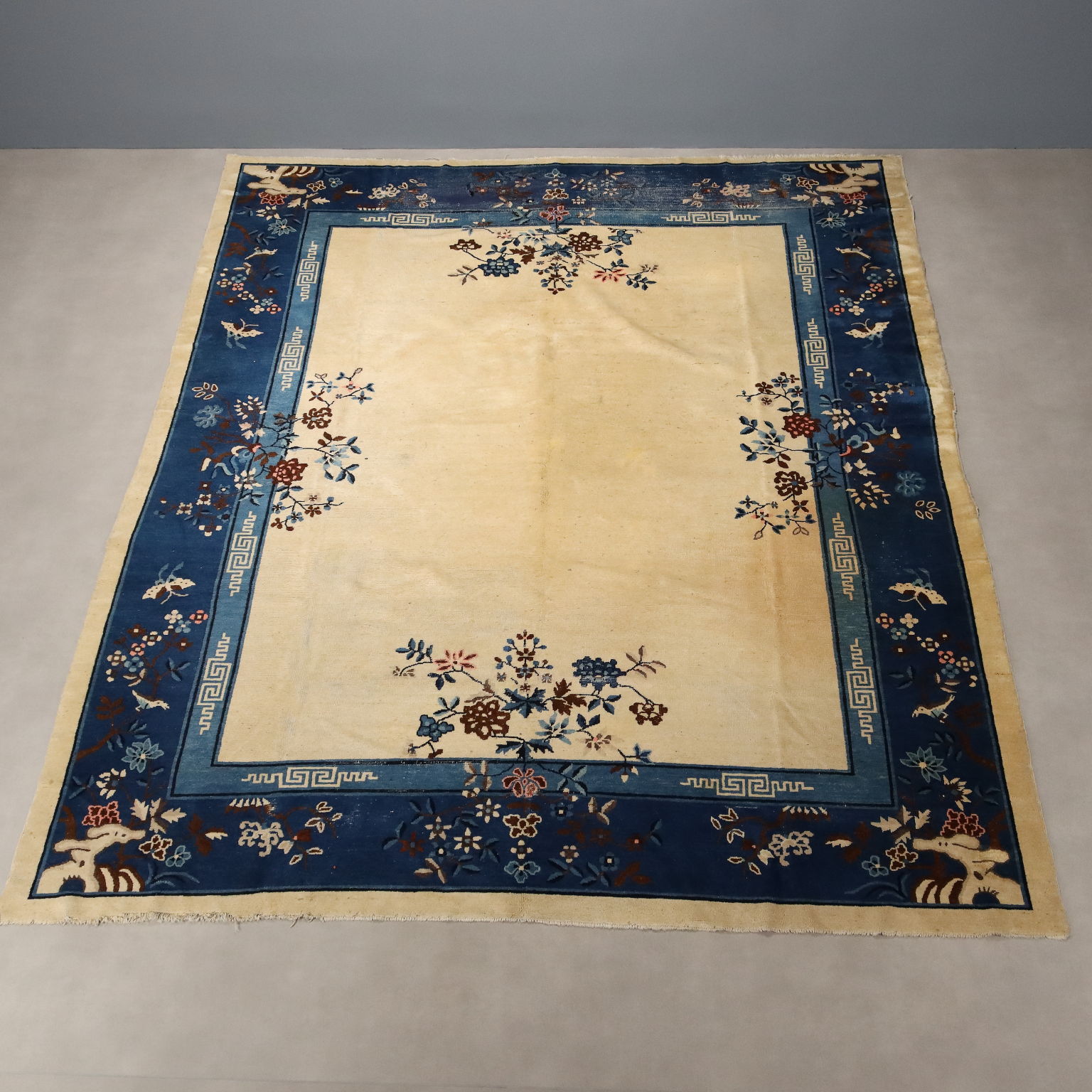 Ein fein geknüpfter Peking-Teppich aus Baumwolle und Wolle, handgewebt. Er wurde geringfügig restauriert.