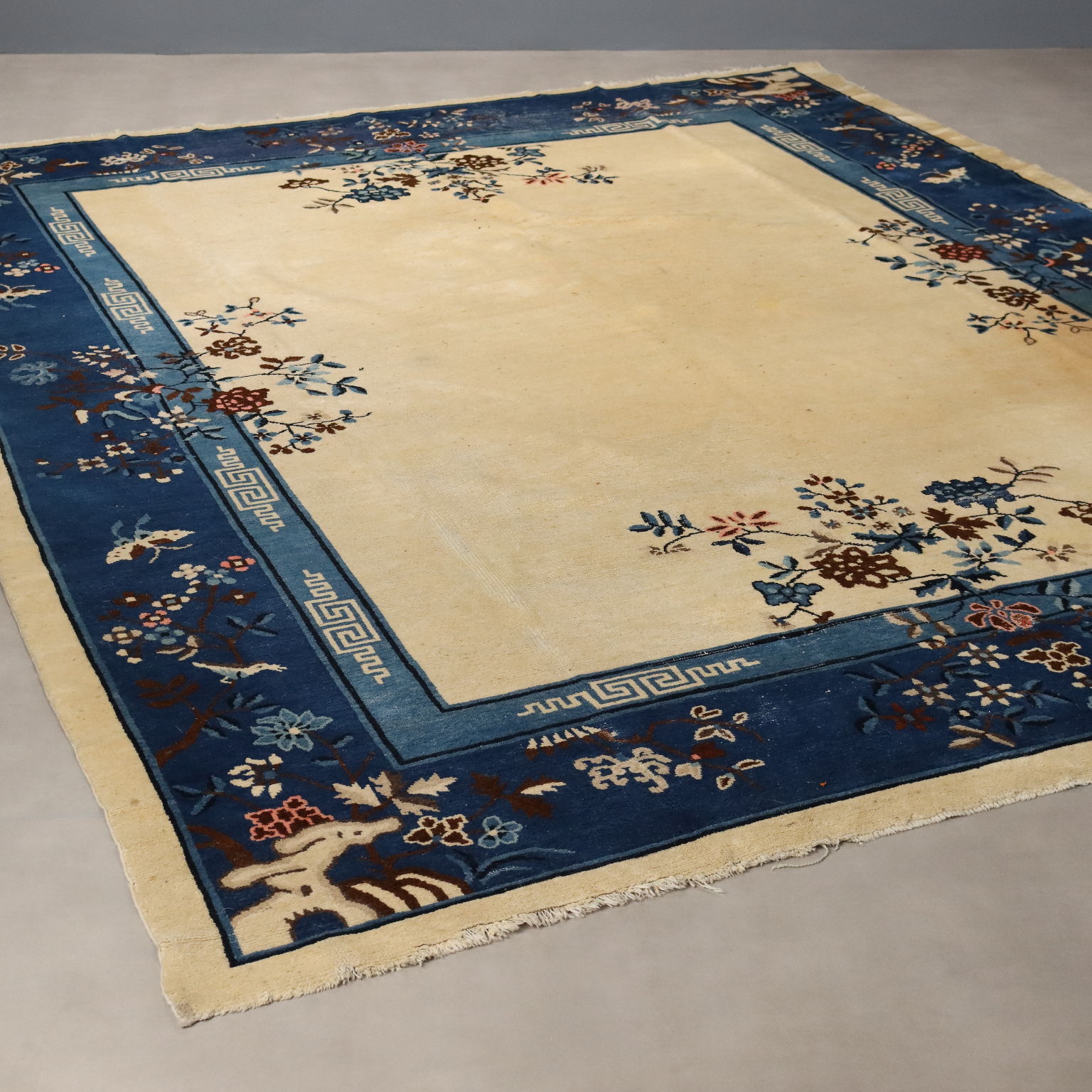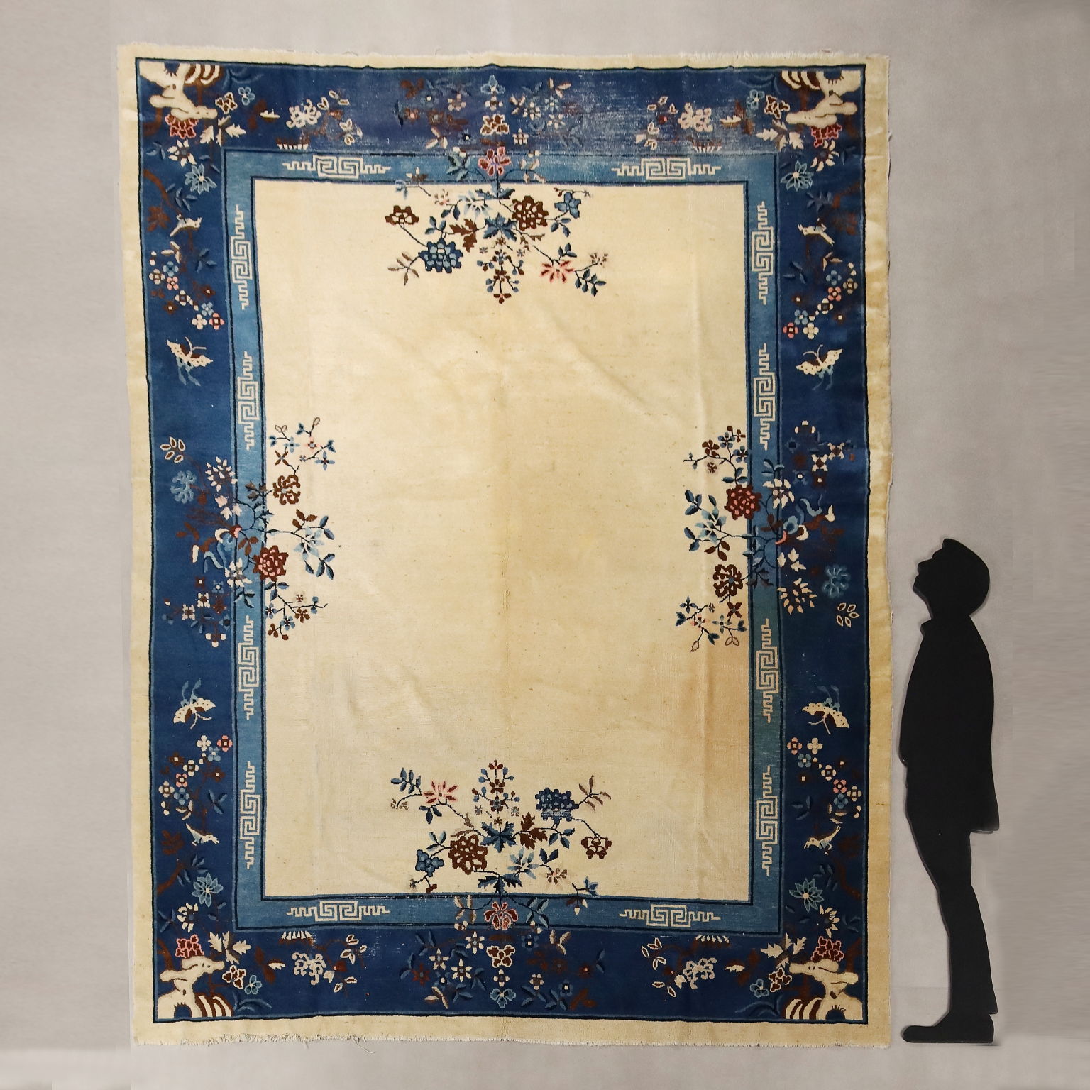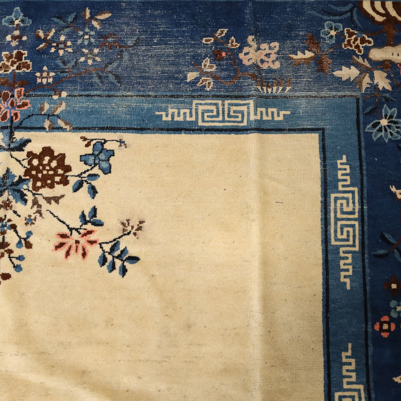 Ein fein geknüpfter Peking-Teppich aus Baumwolle und Wolle, handgewebt. Er wurde geringfügig restauriert.