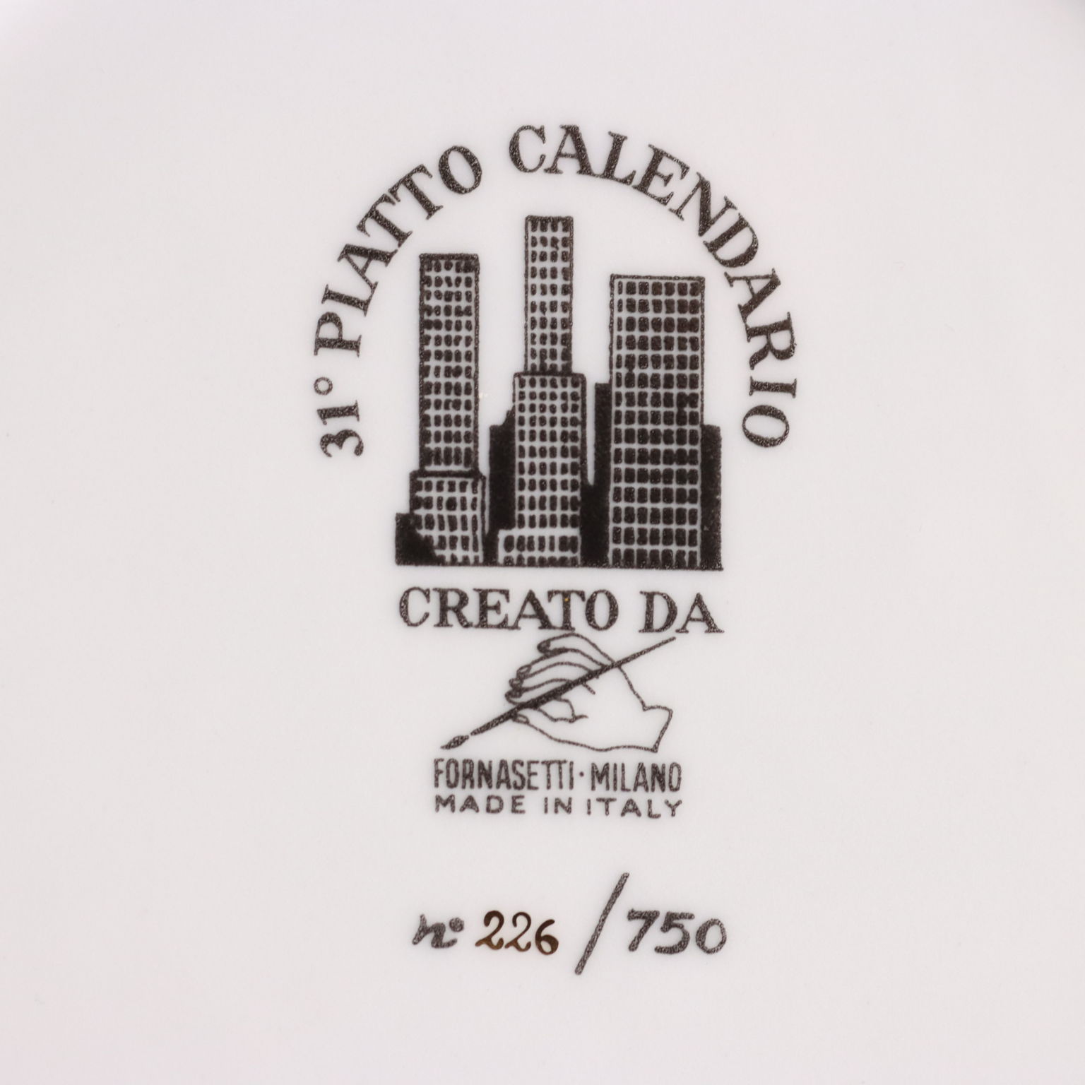 Piero Fornasetti Teller, Kalenderserie, Jahr 1998. Ed. 226/750.