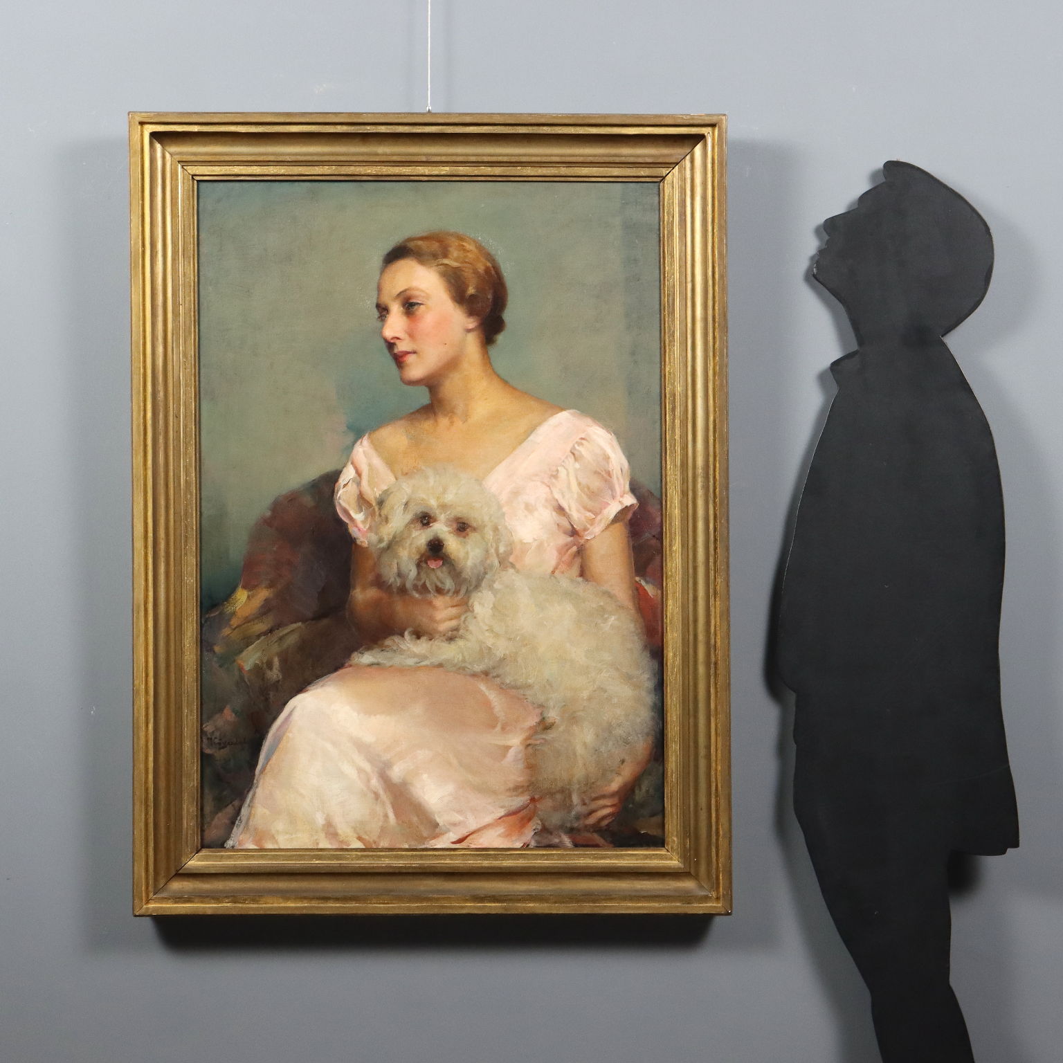 Porträt einer Dame mit einem Welpen 1934