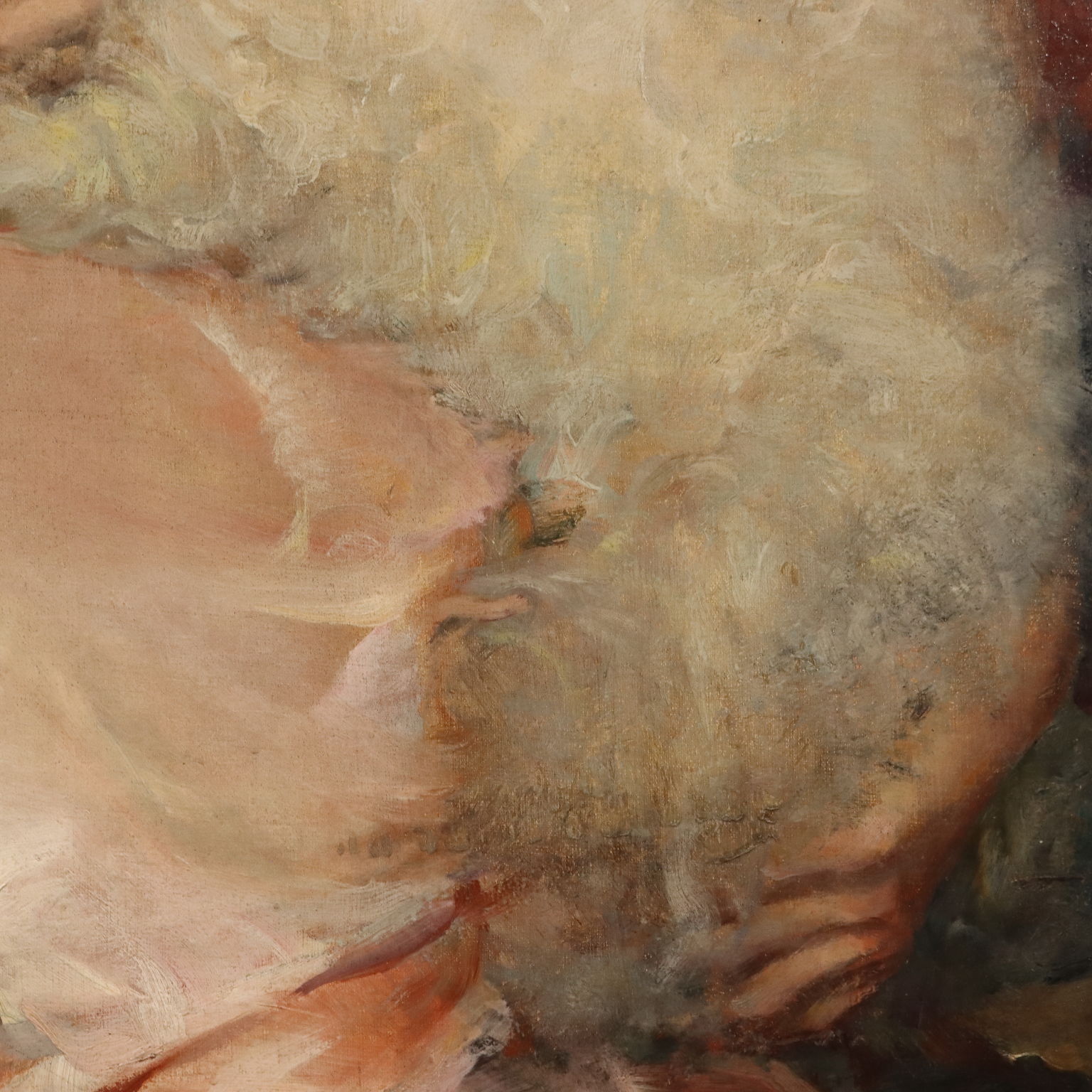 Öl auf Leinwand. Unten links signiert und datiert. Ein Werk des ungarischen Malers Géza Kövesdy, der vor allem Frauenporträts und Landschaften malte, die manchmal durch naive Figuren belebt wurden. Die weibliche Figur mit einem kleinen Hund ist ein wiederkehrendes Thema, fast ein Symbol für den sozialen Status dieser wohlhabenden bürgerlichen Damen. Der Bildstil ist in den Nuancen und im Lichtspiel vom Impressionismus beeinflusst. Das Gemälde wird in einem zeitgenössischen Rahmen präsentiert.
