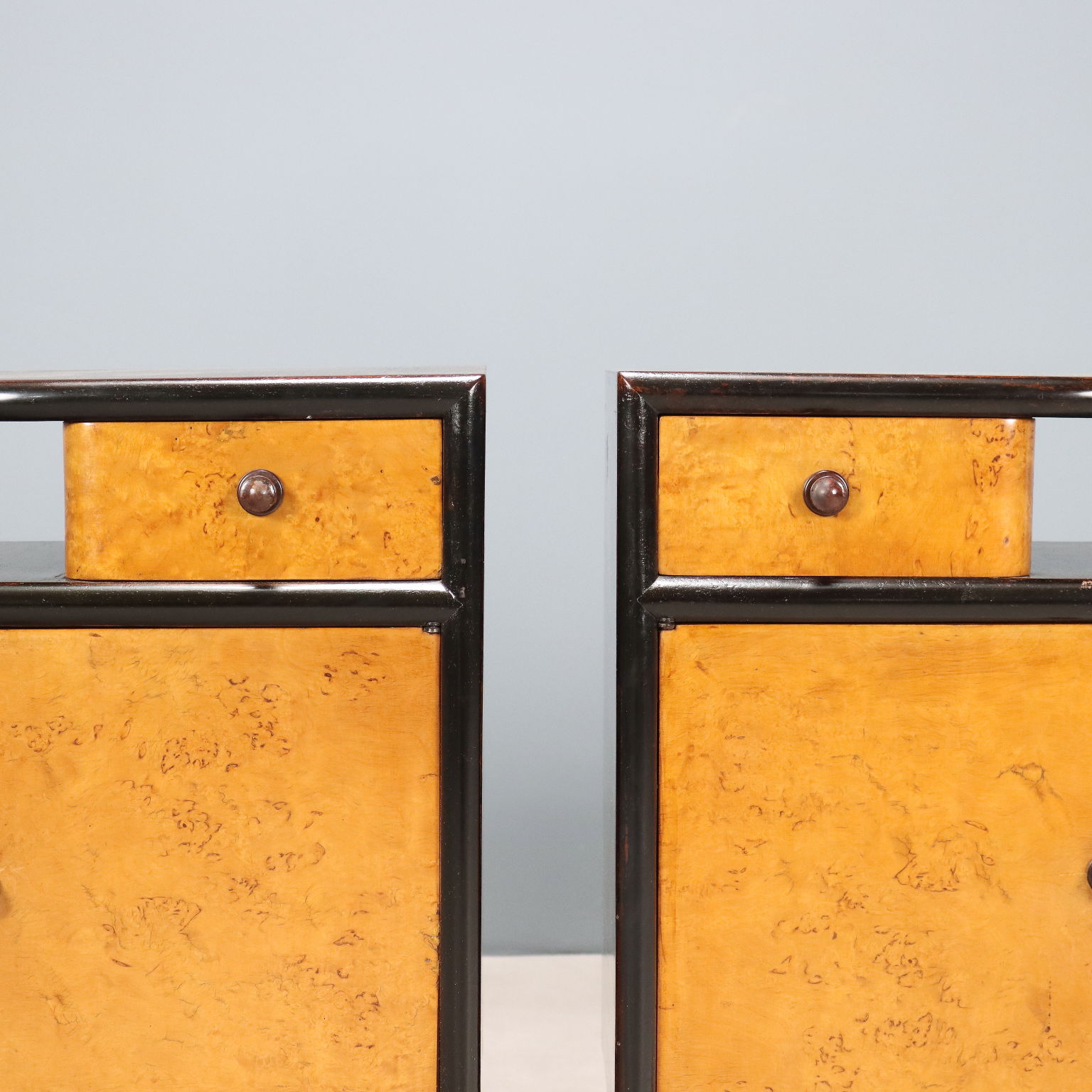 Paar Nachttische im Art-déco-Stil mit exotischem Holzfurnier und Wurzelholz.