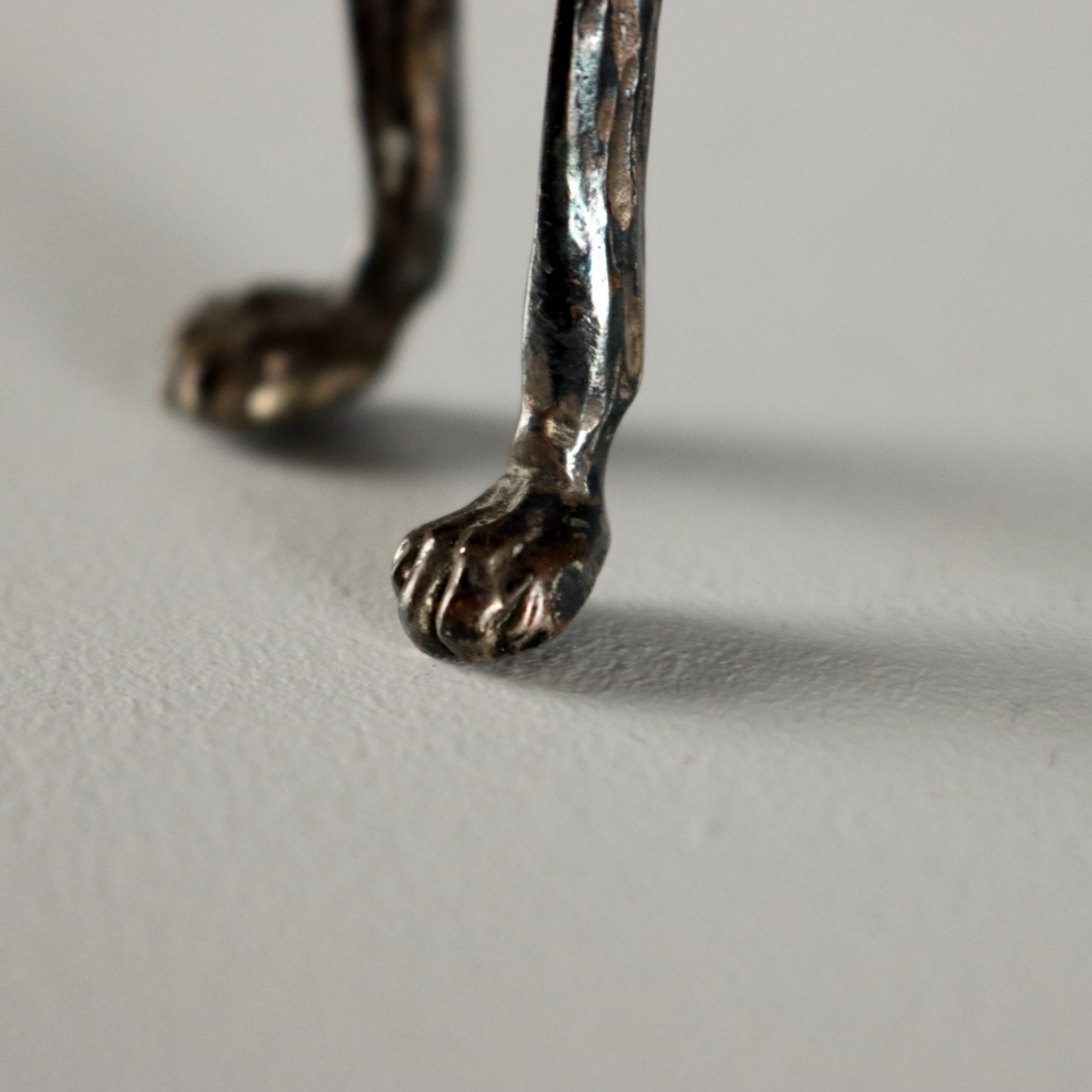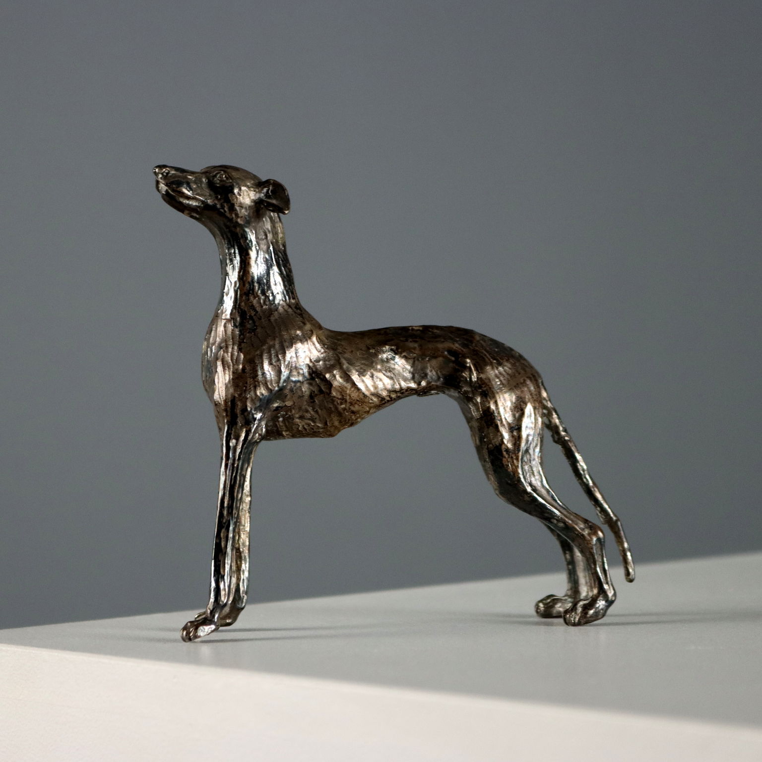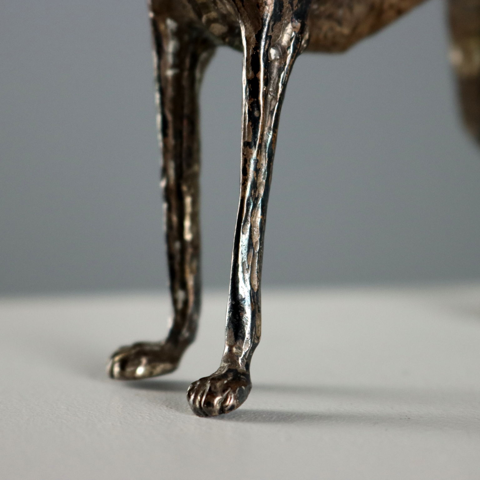Eine ziselierte Silberfigur eines Windhundes. Gravierte Silberpunzen. Die Schmiedemarke ist unleserlich. Gewicht: 180 Gramm.