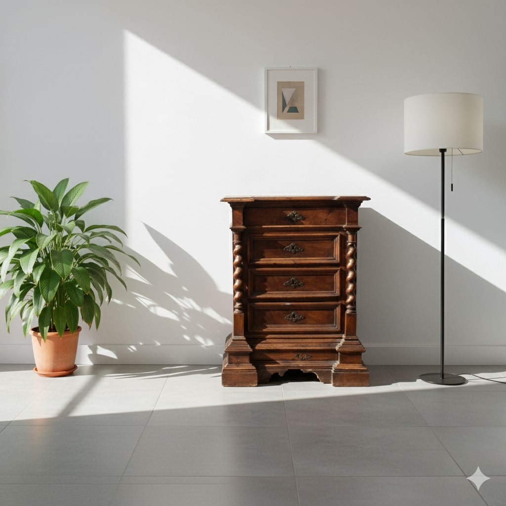 Antiker Barocker Nachttisch Walnuss Pappel 4 Schuhbladen XVIII Jhd - Mittelitalien, frühes 18. Jahrhundert