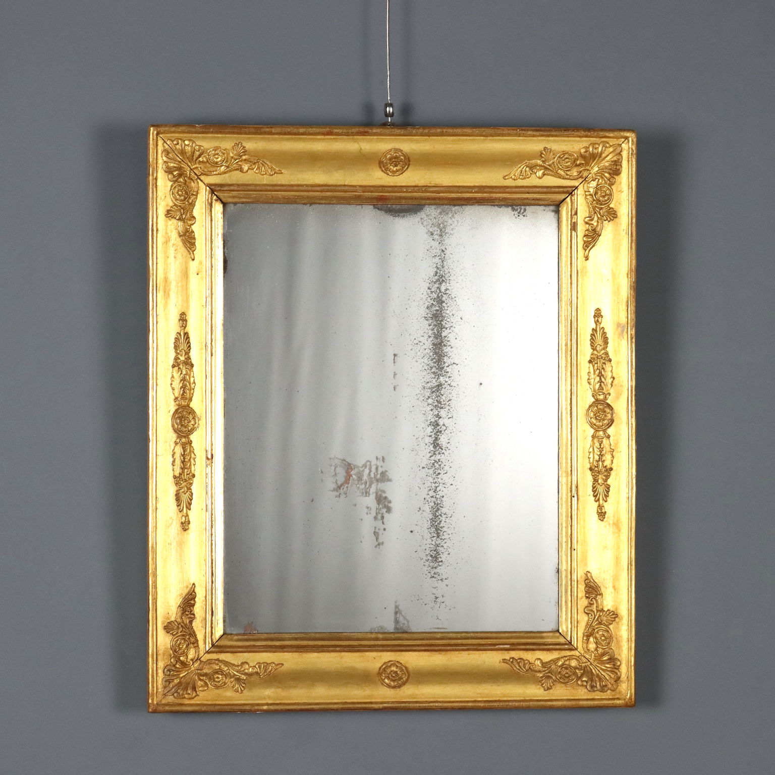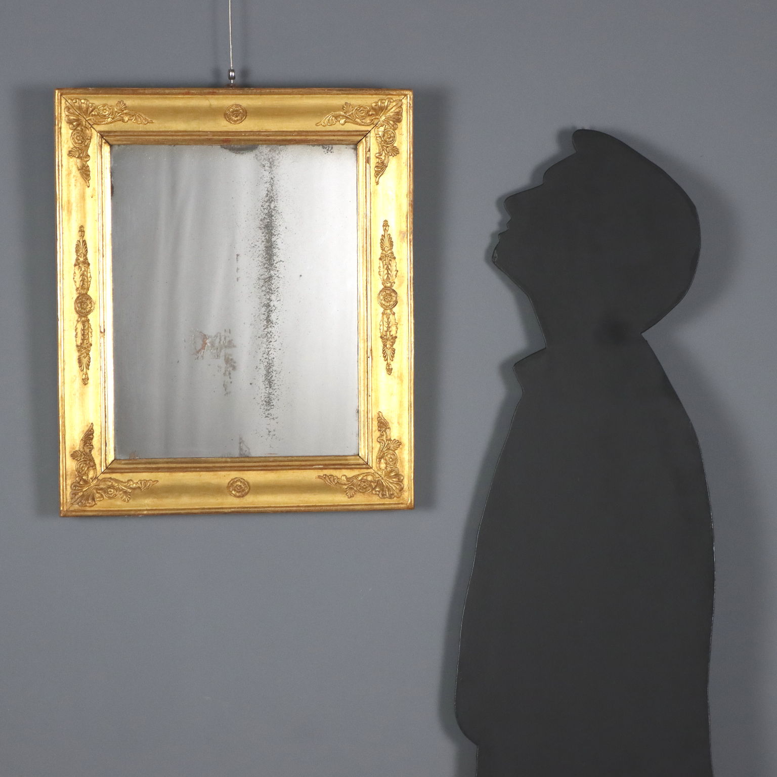Vergoldeter Holzspiegel. Neoklassizistische Pastiglia-Schnitzereien, Quecksilberspiegel. Italien, frühes 19. Jahrhundert.