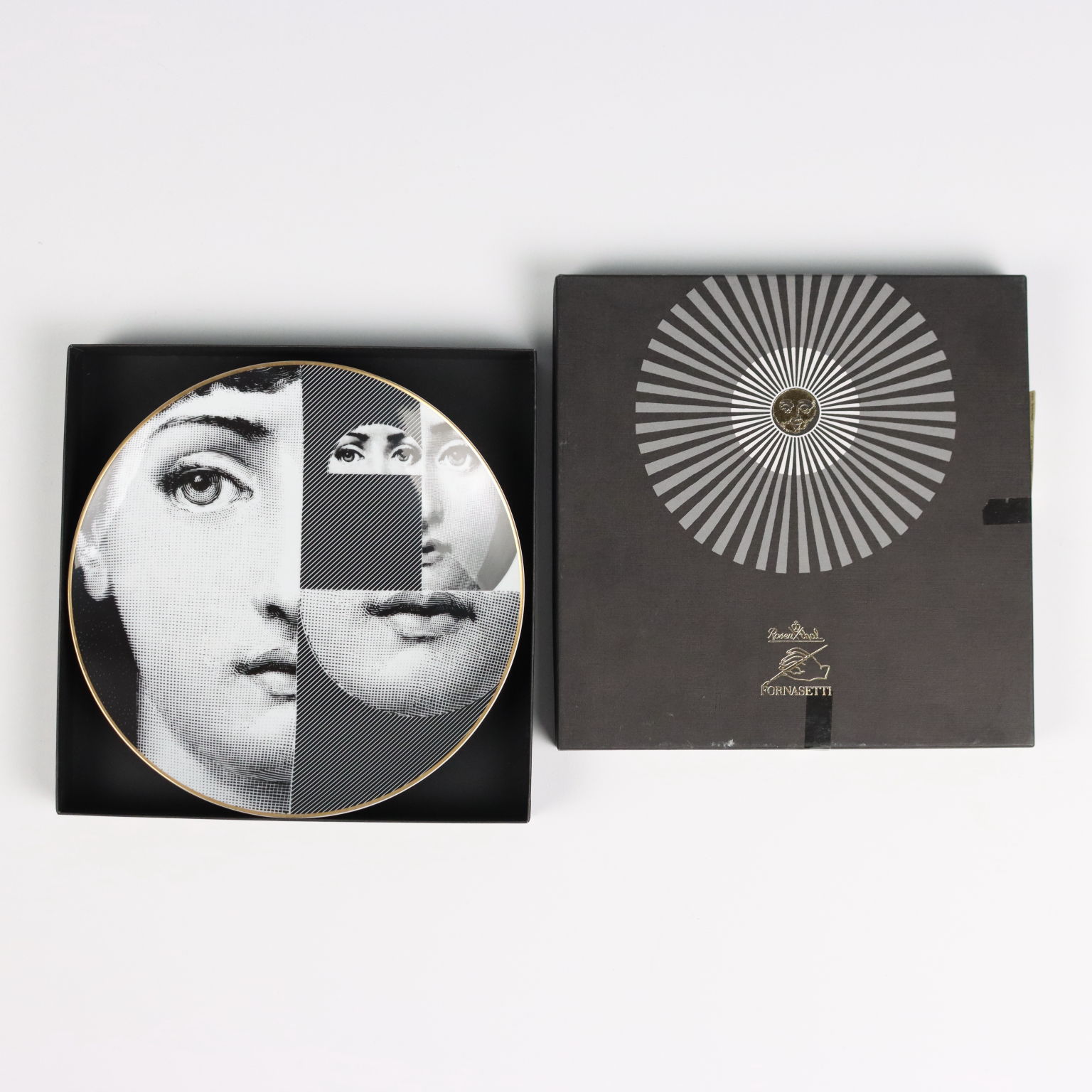 Teller von Piero Fornasetti für Rosenthal Themen und Variationen Nummer 27. Originalverpackung.