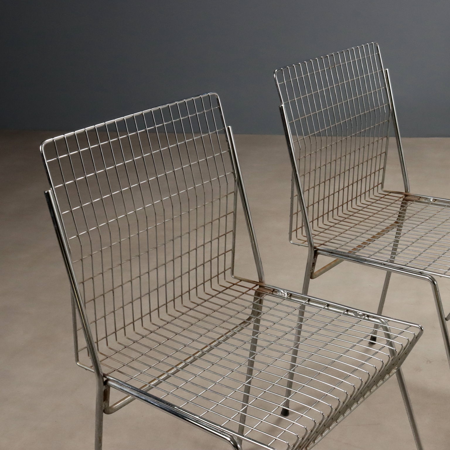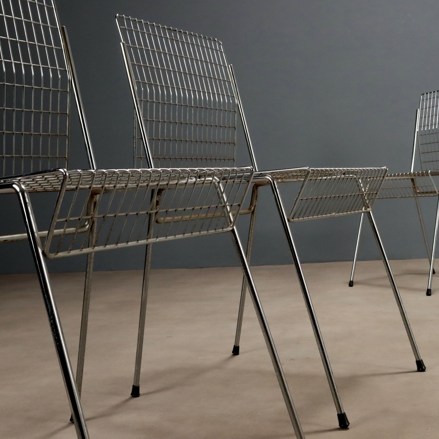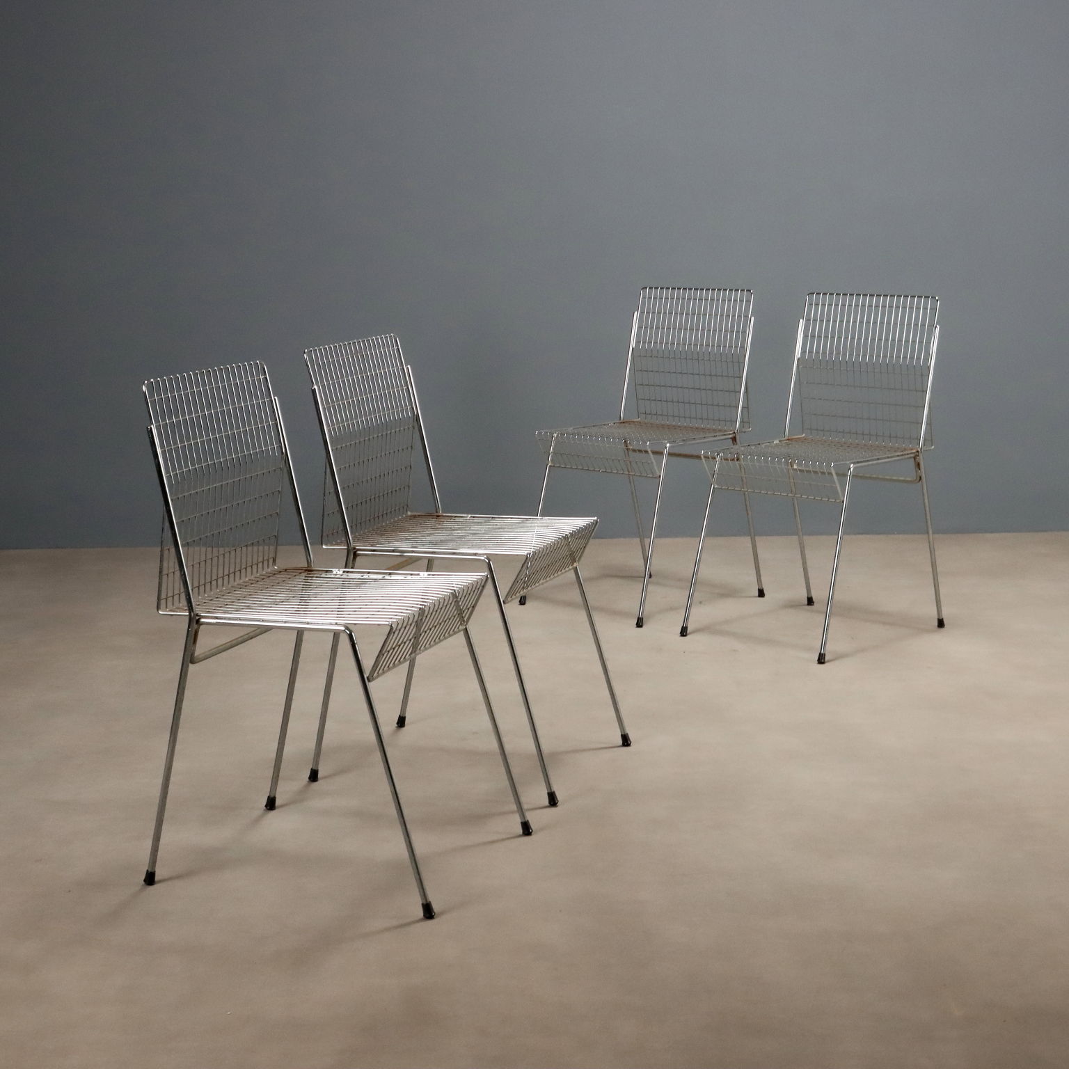 Vintage Esszimmerstühle aus verchromtem Metall.
