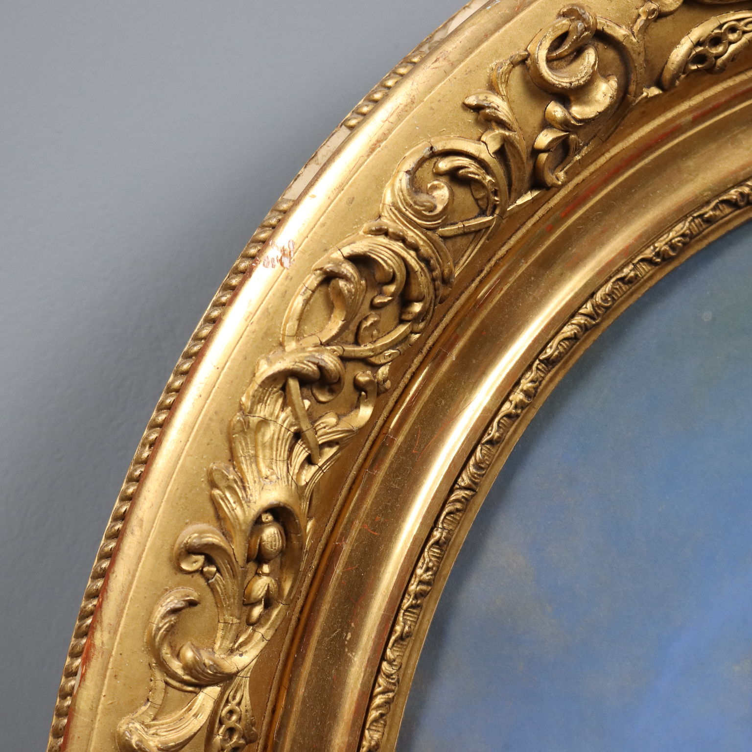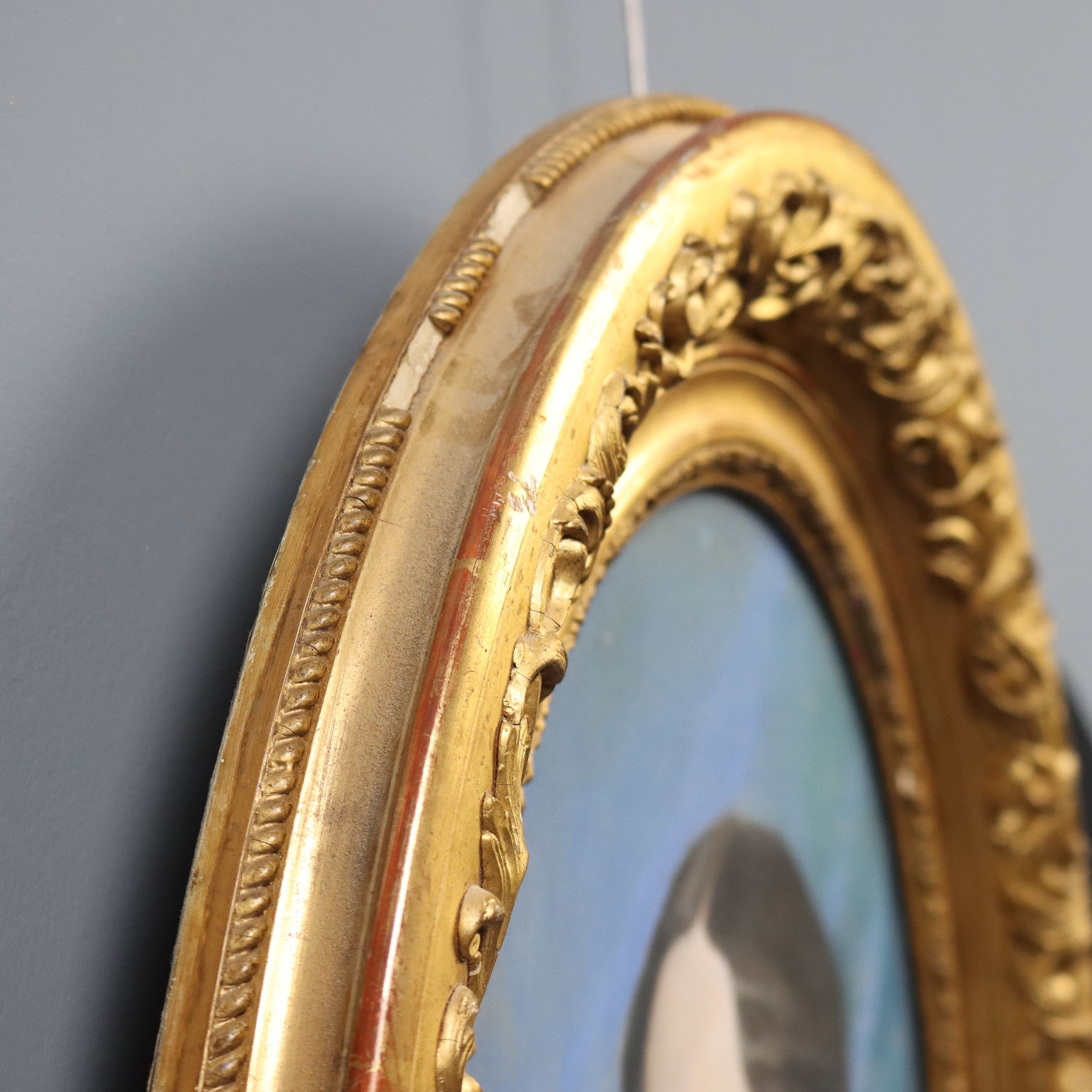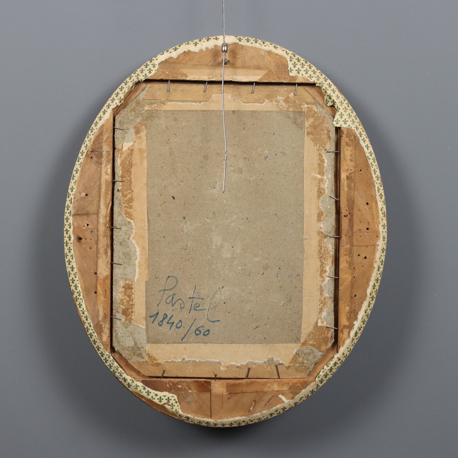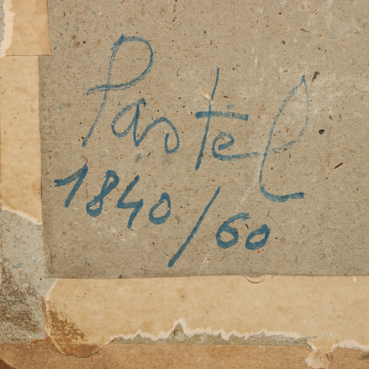 Pastell auf Karton. Elegante Halbfigur einer Frau, sitzend in einem Sessel. Das Gemälde befindet sich in einem zeitgenössischen, vergoldeten Rahmen mit kleineren Fehlstellen und Beschädigungen.