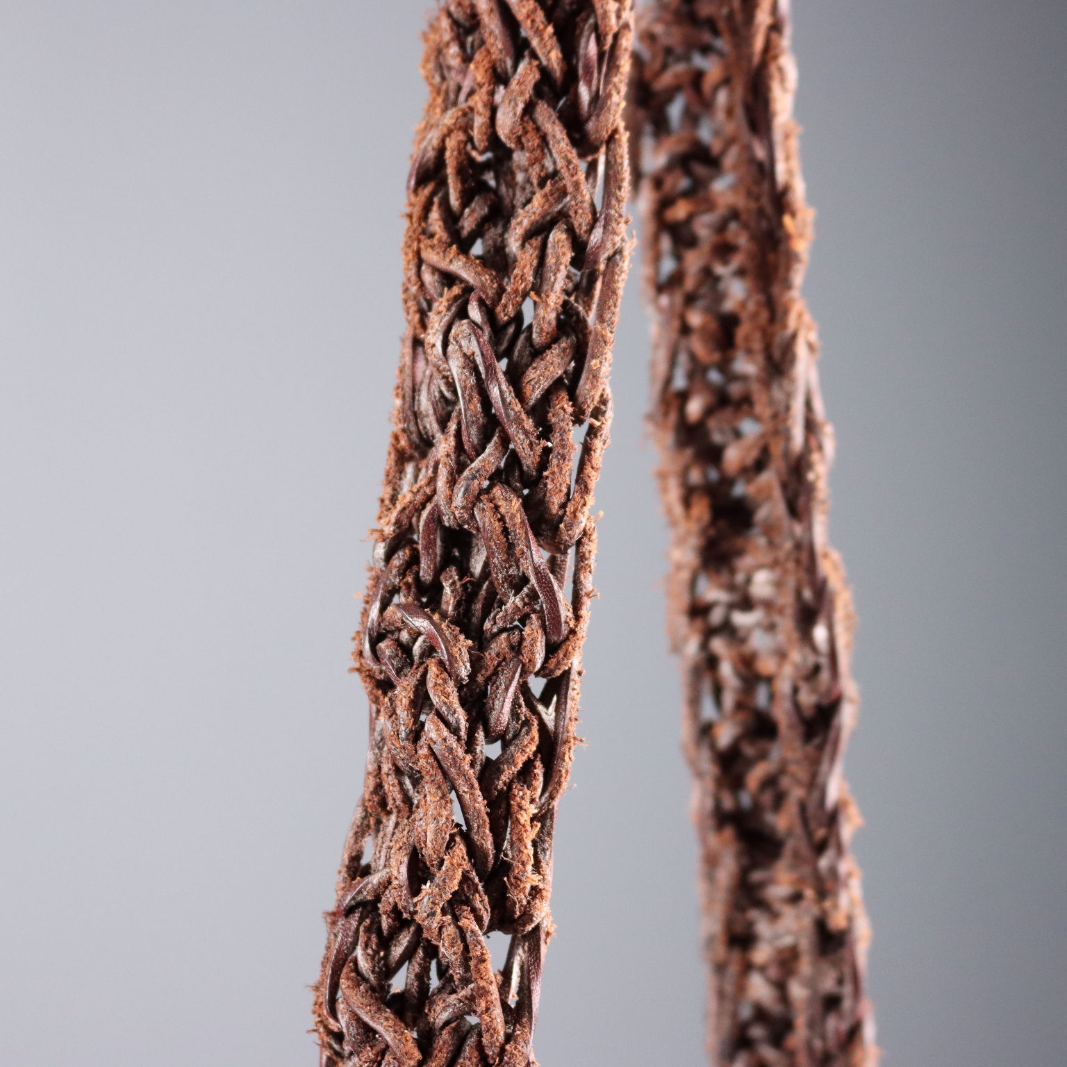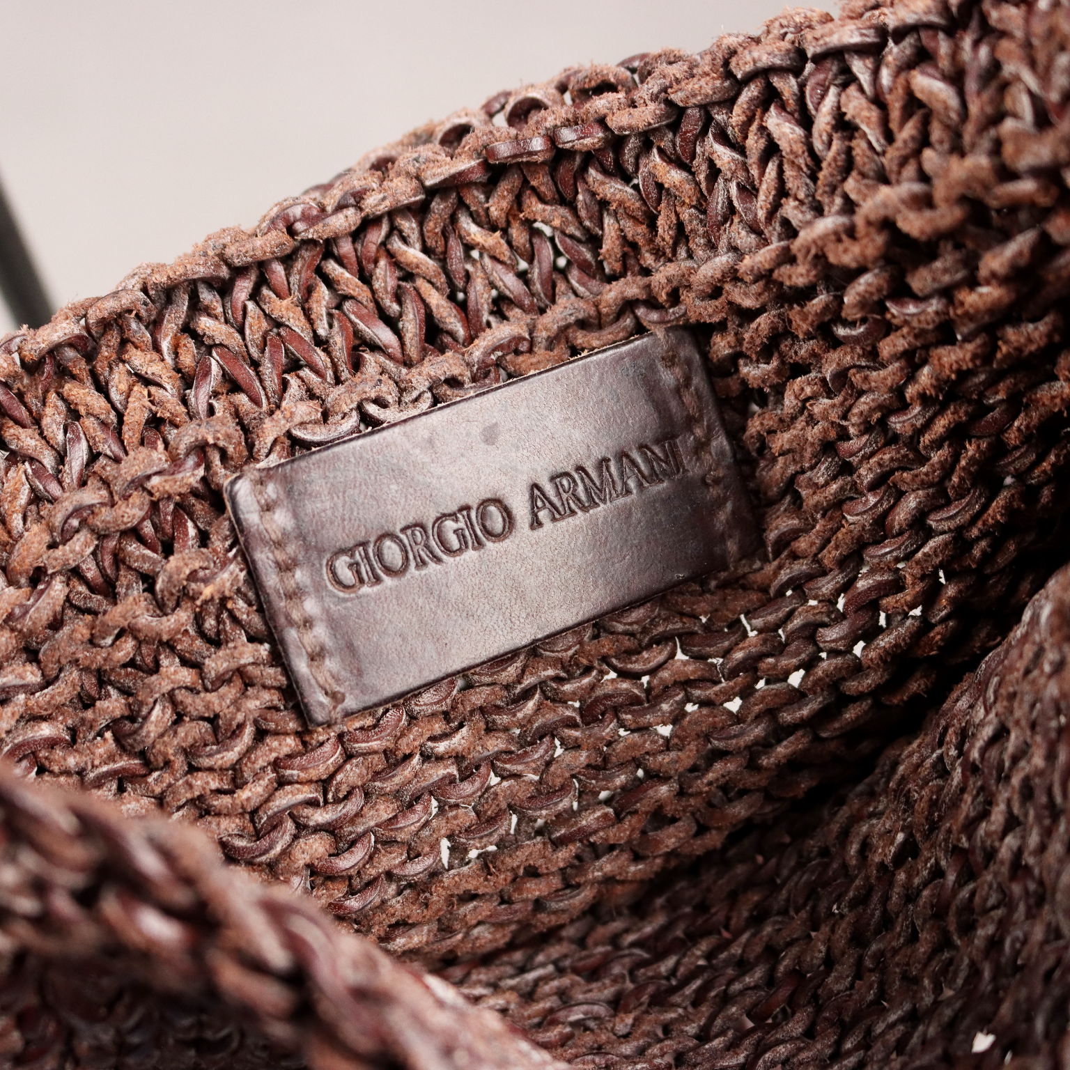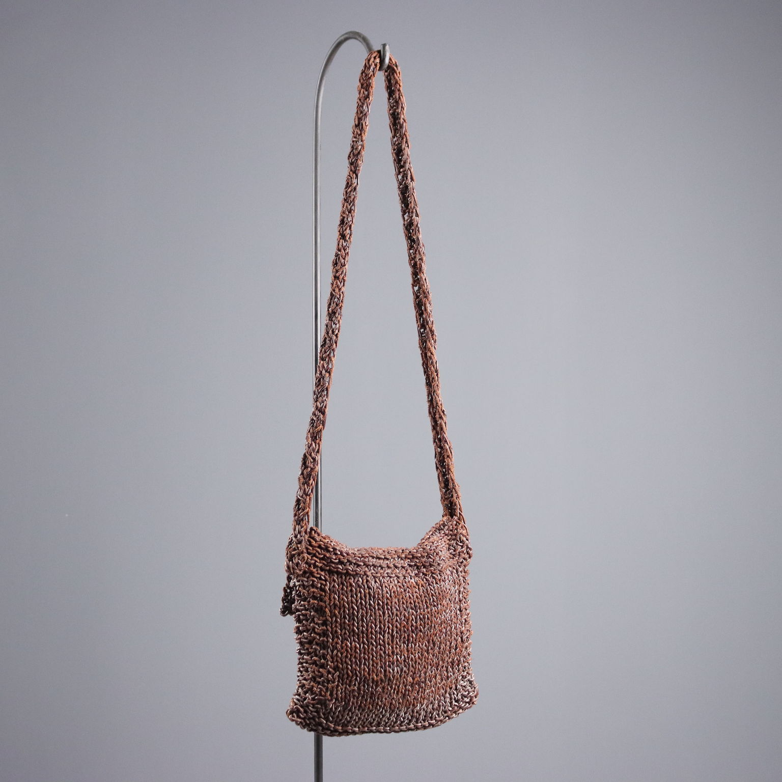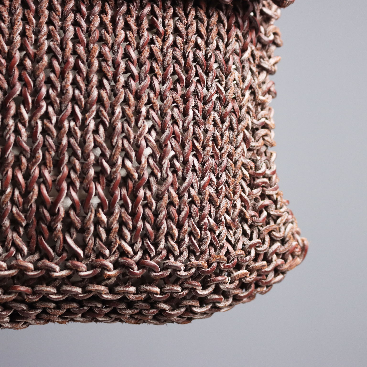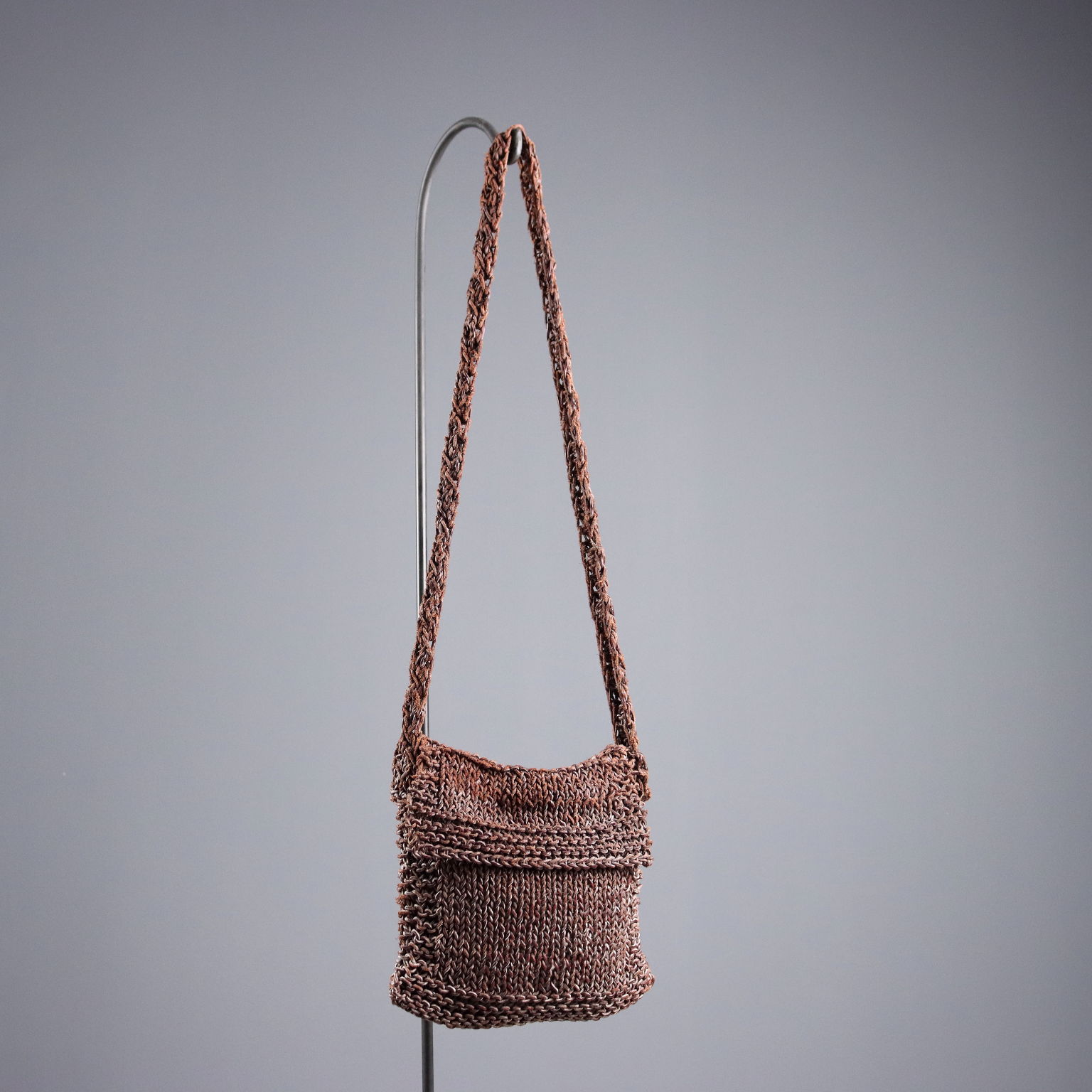 Brown woven leather shoulder bag with a flap and long handle, suitable for carrying on the shoulder or cross-body. The interior is plain and unlined. Shoulder strap length: 115 cm.