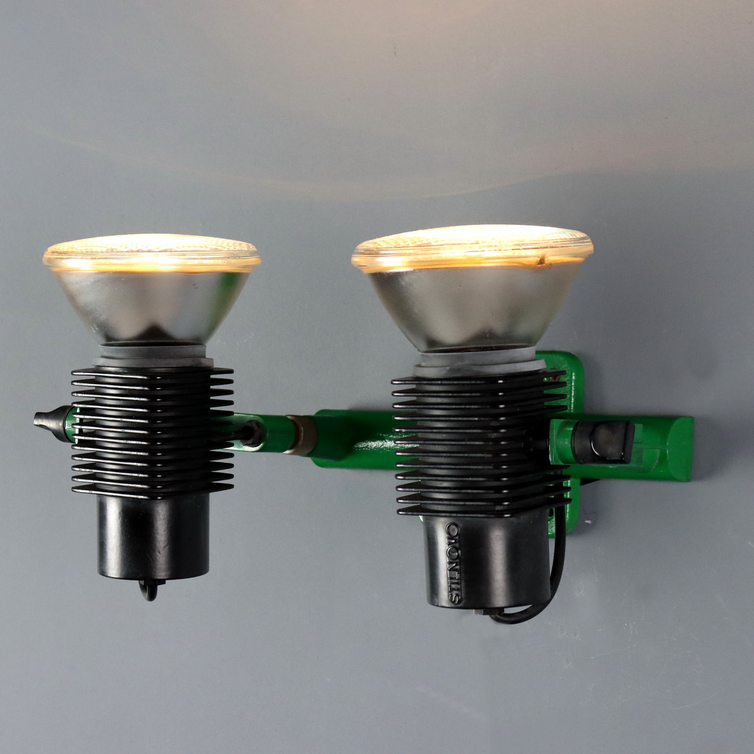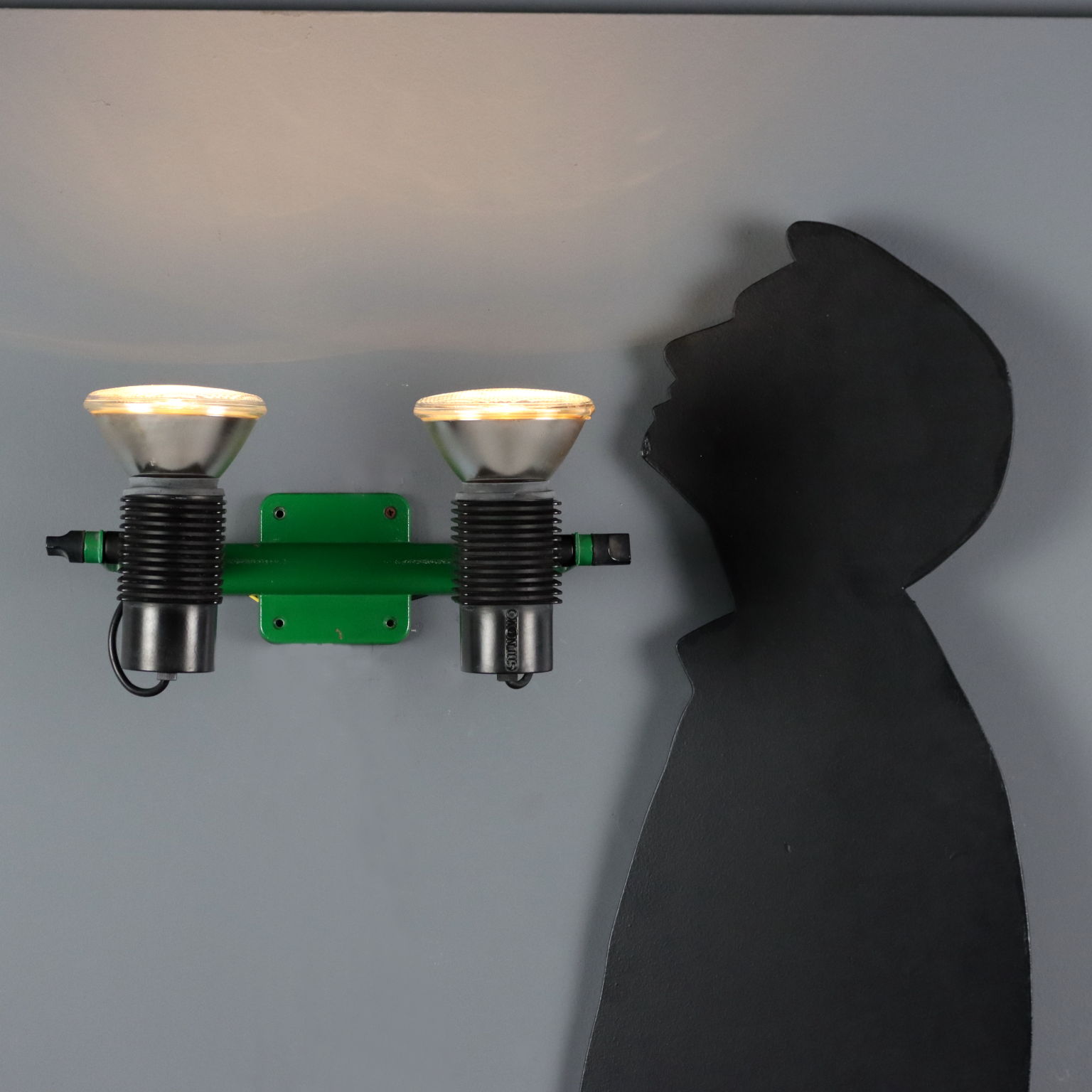 Wall lamp in green enamelled metal and plastic material with two adjustable light points.