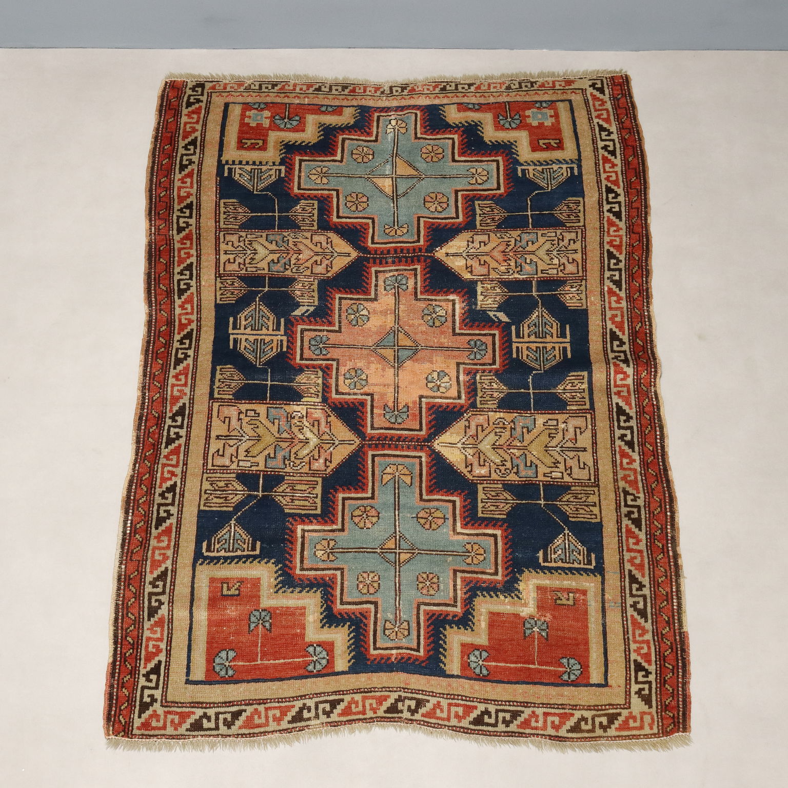 Kazak wool rug, fine knot, hand-made. Requires restoration.