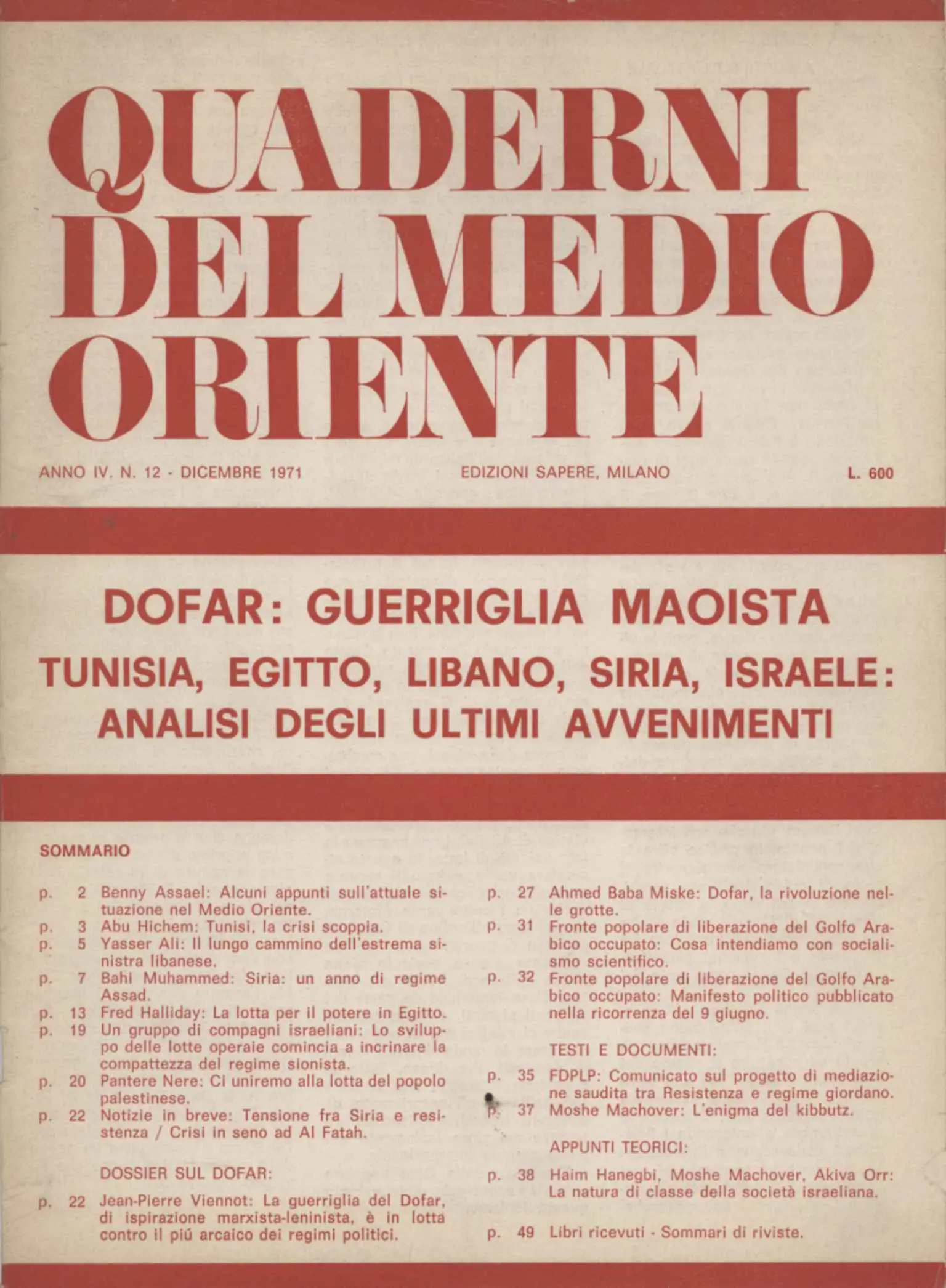 Dofar: Maoist Guerrilla Warfare. Tunisia, Egypt, Lebanon, Syria, Israel: Analysis of Recent Events.