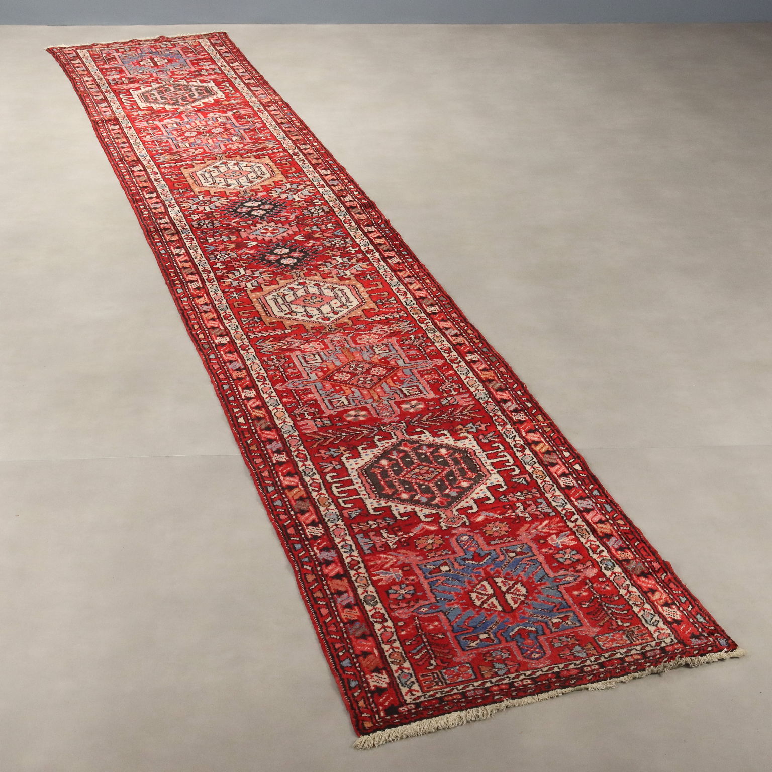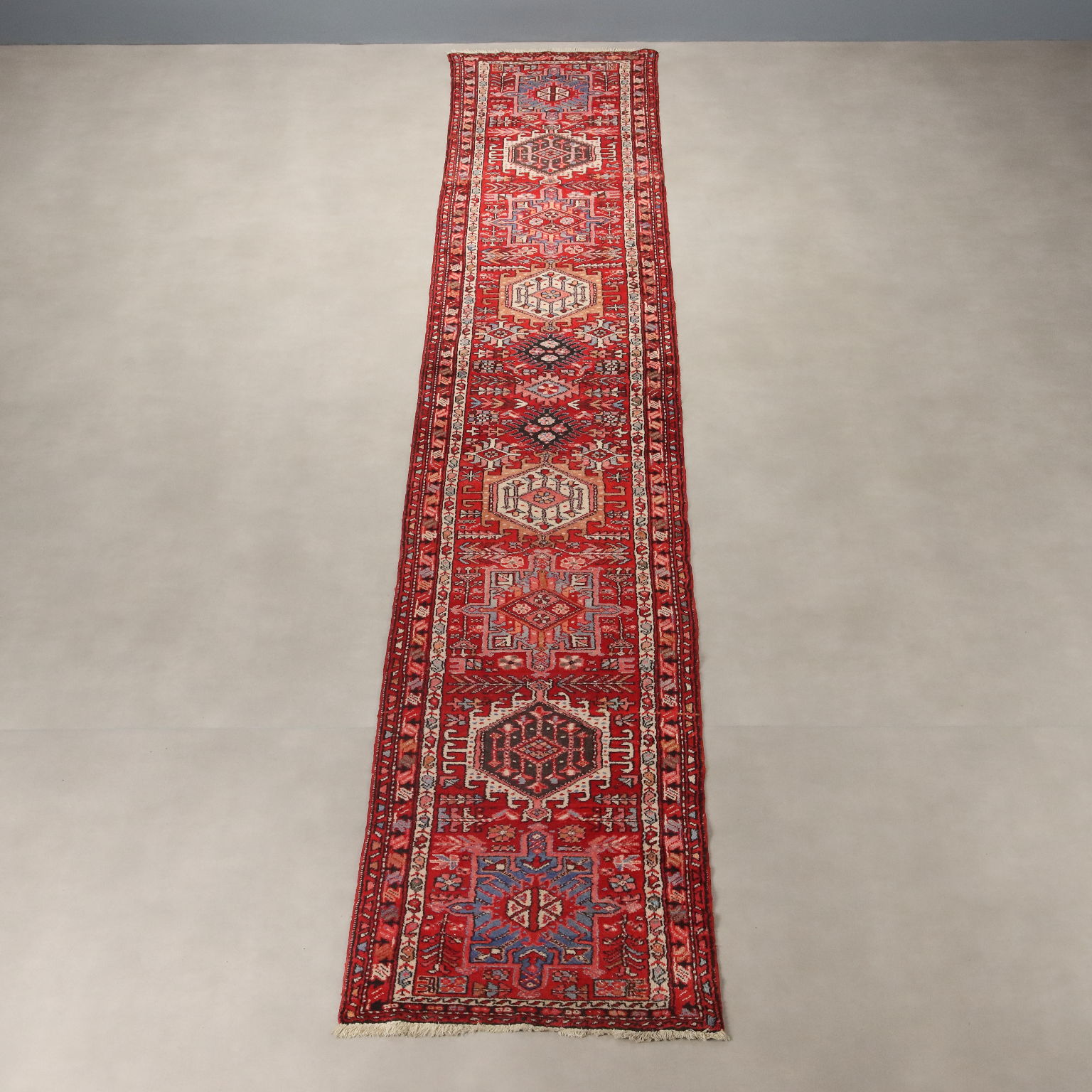 Antique Heriz Carpet Cotton Wool Heavy Knot Handmade 191 x 34 In - 191 x 34 In