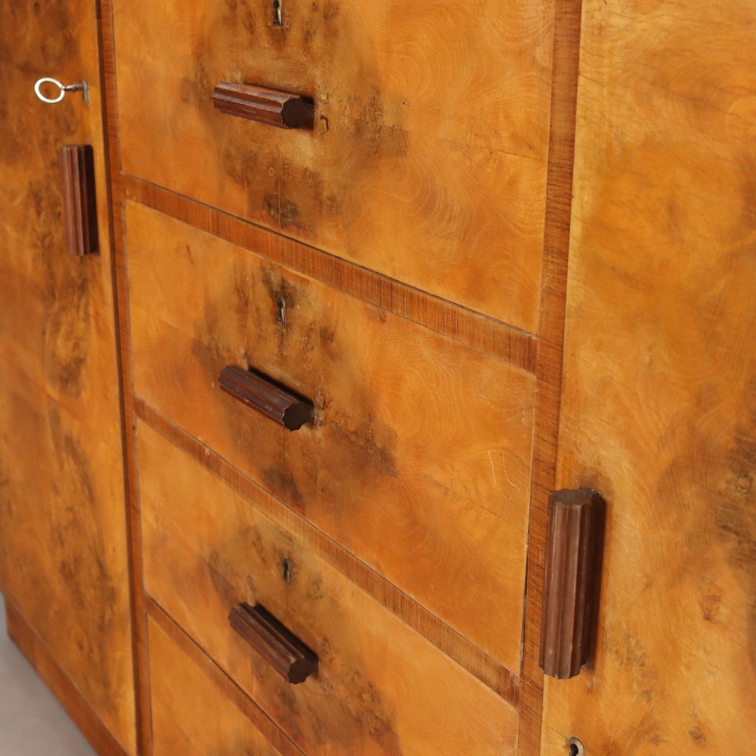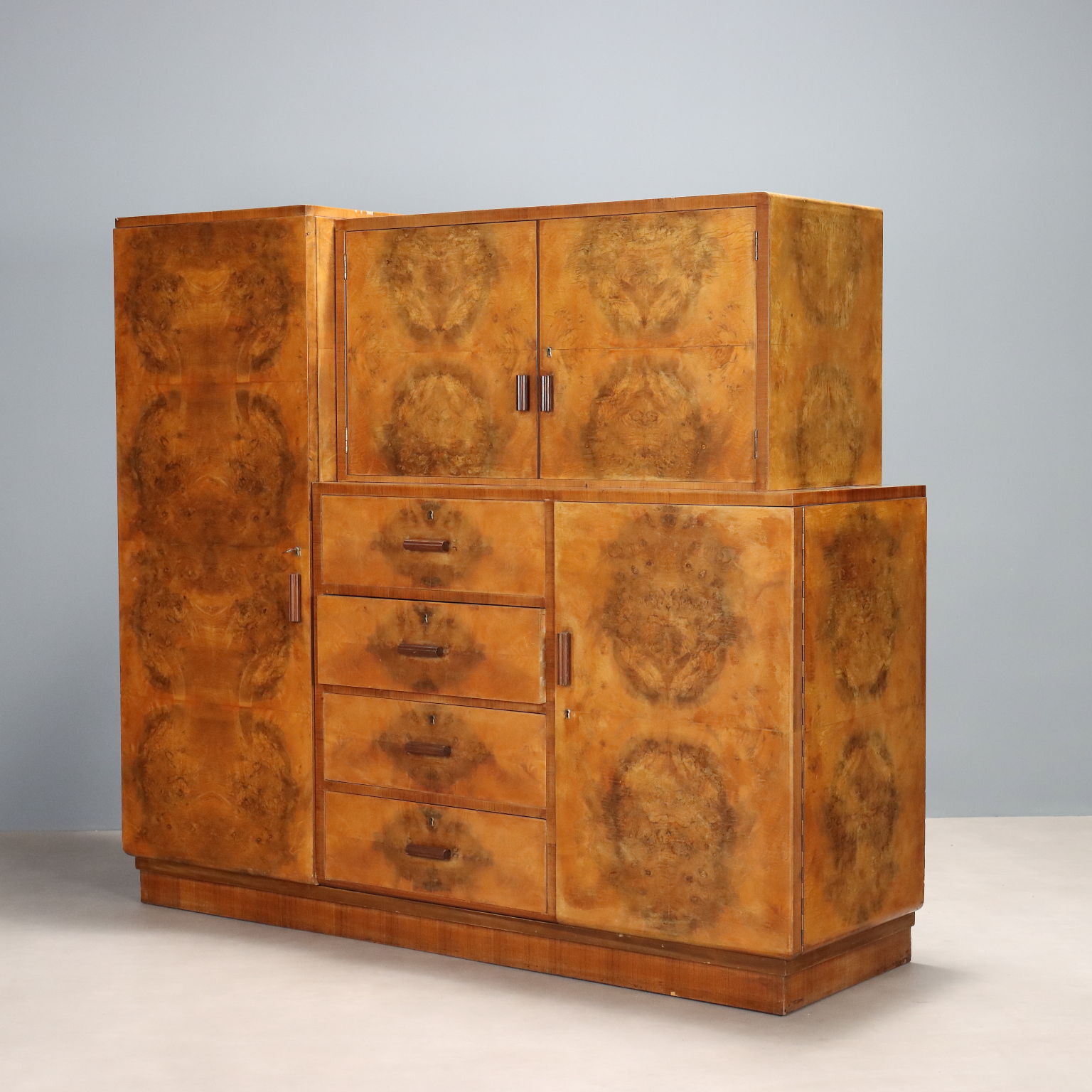 Vintage Cupboard Deco Style Burl Veneer Design Italy 1940s