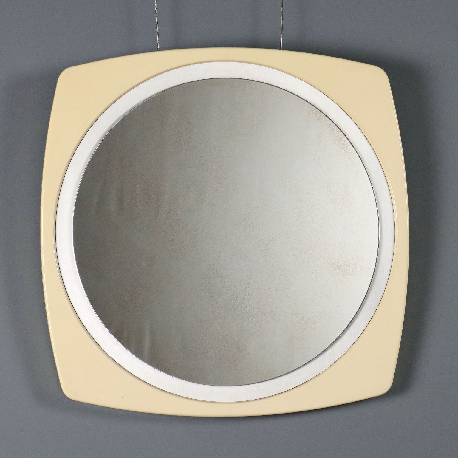 Vintage Round Mirror Plastic Frame Glass Design Italy 1970s