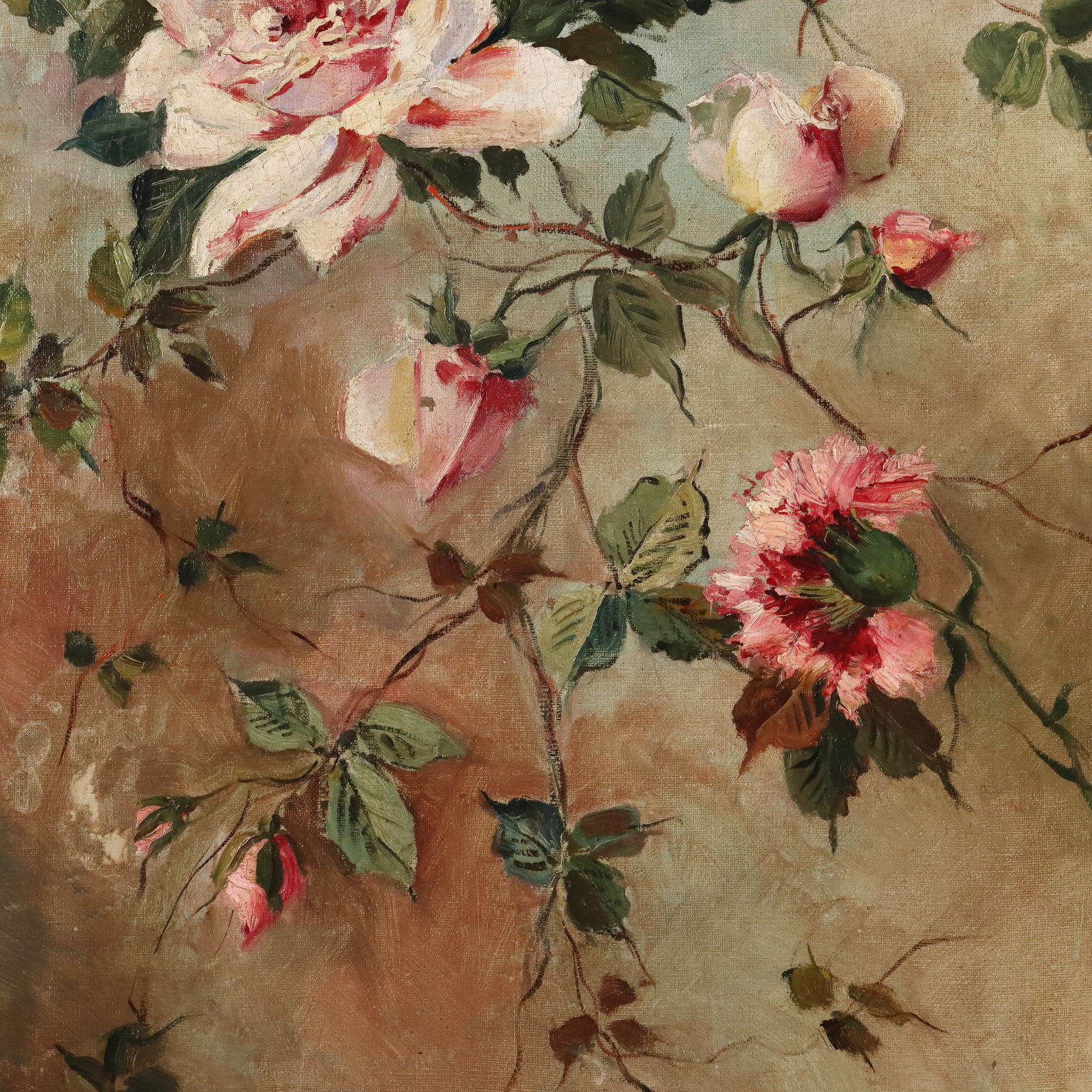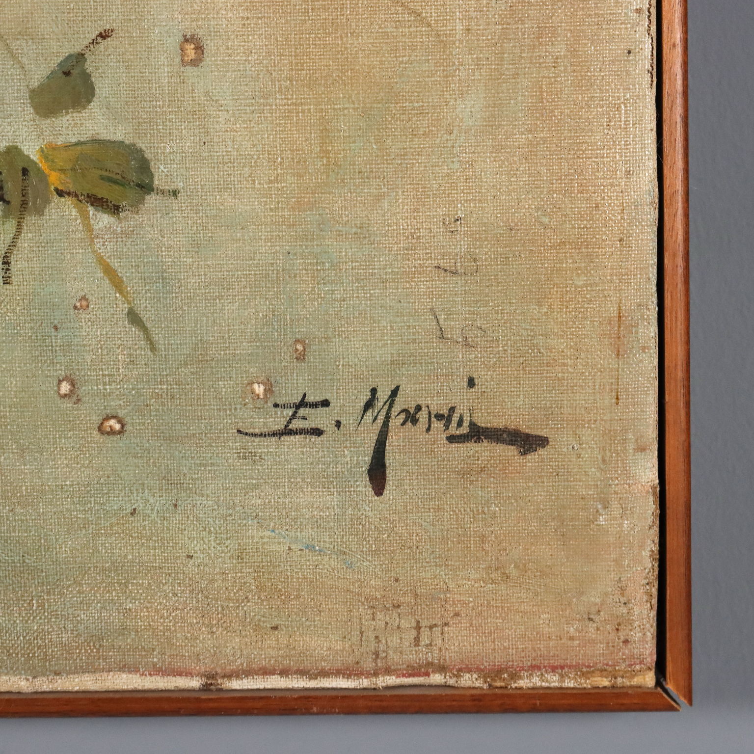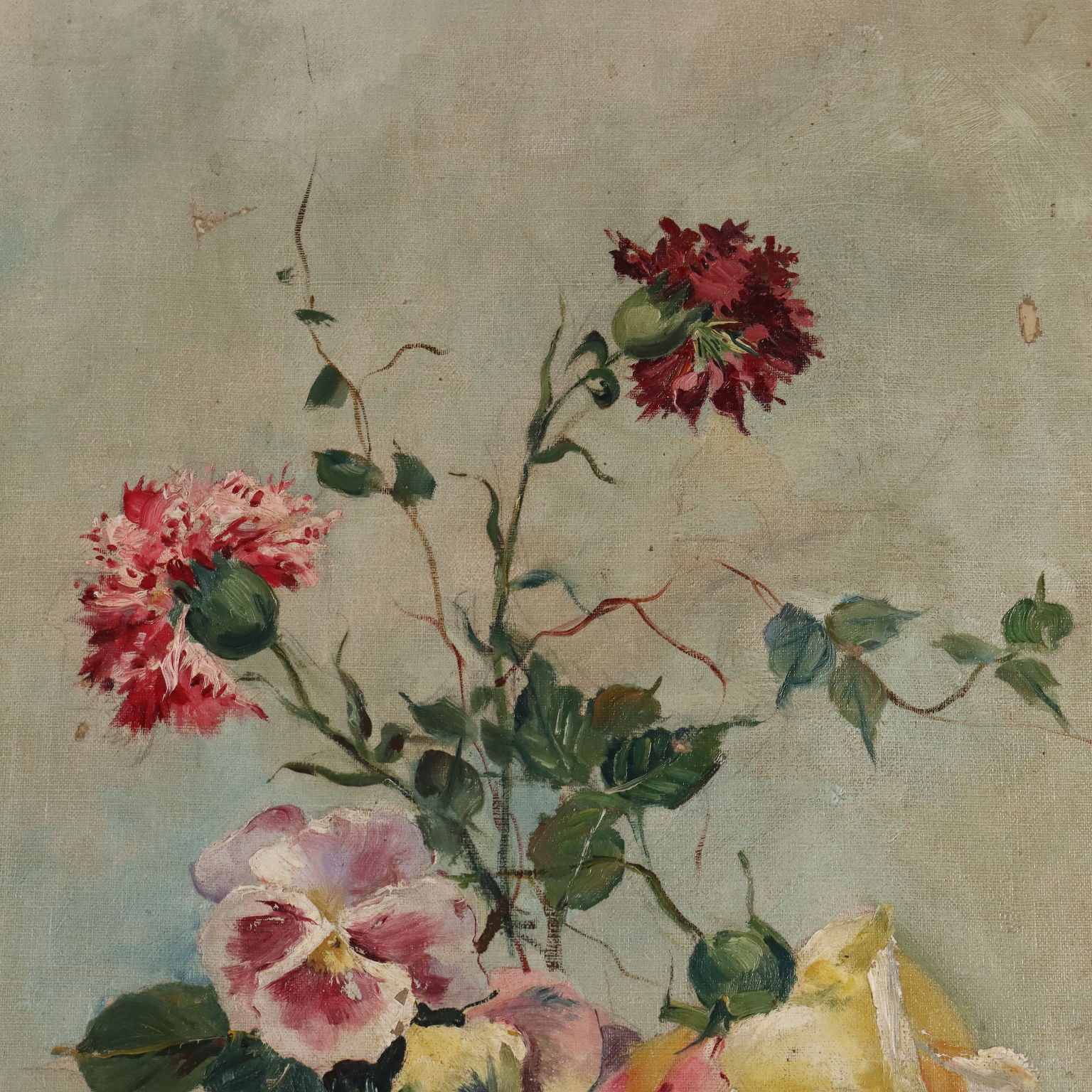 Antique Painting Flowers Oil on Canvas Italy XX Century