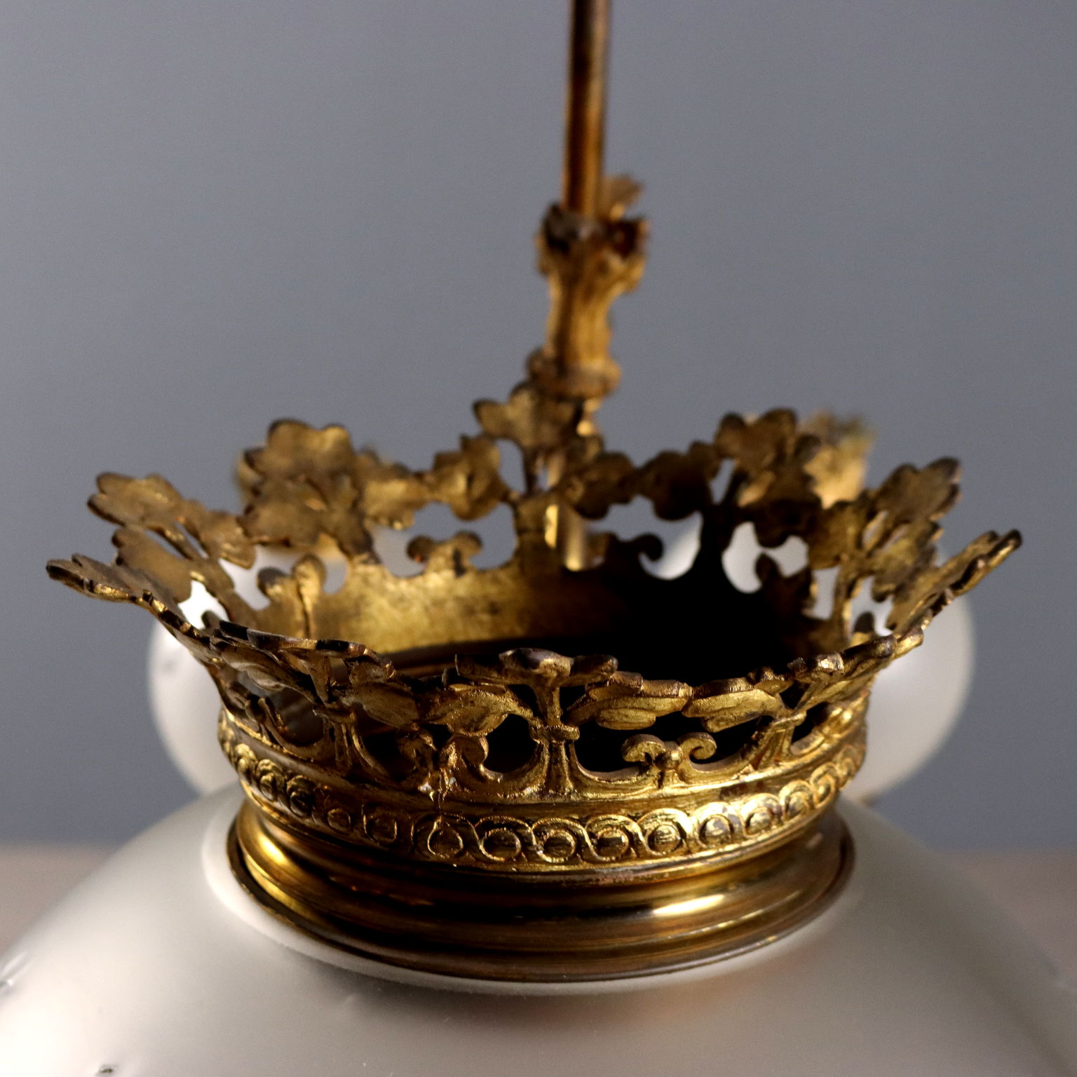Due to its age and wear, this lamp may require restoration and likely has an electrical system that does not comply with current regulations. We have tried to present the lamp's actual condition as accurately as possible with photos. If any details are unclear from the photos, the description will apply.