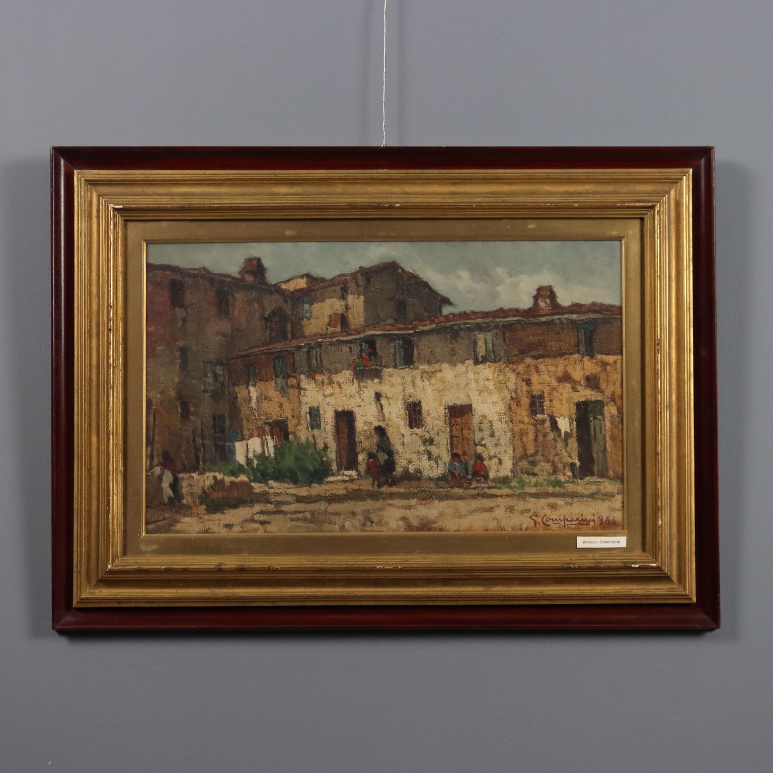 Oil on canvas. Signed and dated lower right. Title, further signature, and stamp of Galleria Bolzani, Milan, on the back. Giuseppe Comparini is a Florentine painter of clear Macchiaioli lineage. His aim was to depict on canvas the changing light at different times of the day. He created works in which the themes he addressed—views, landscapes, farmers at work, the Tuscan countryside—while imbued with realism, are based on plays of light that lend a significant touch of lyricism. The diffusion of his work is closely linked to his partnership with the Milanese gallery owner Guido Bolzani (1957), who regularly hosted exhibitions of the artist. Framed work.