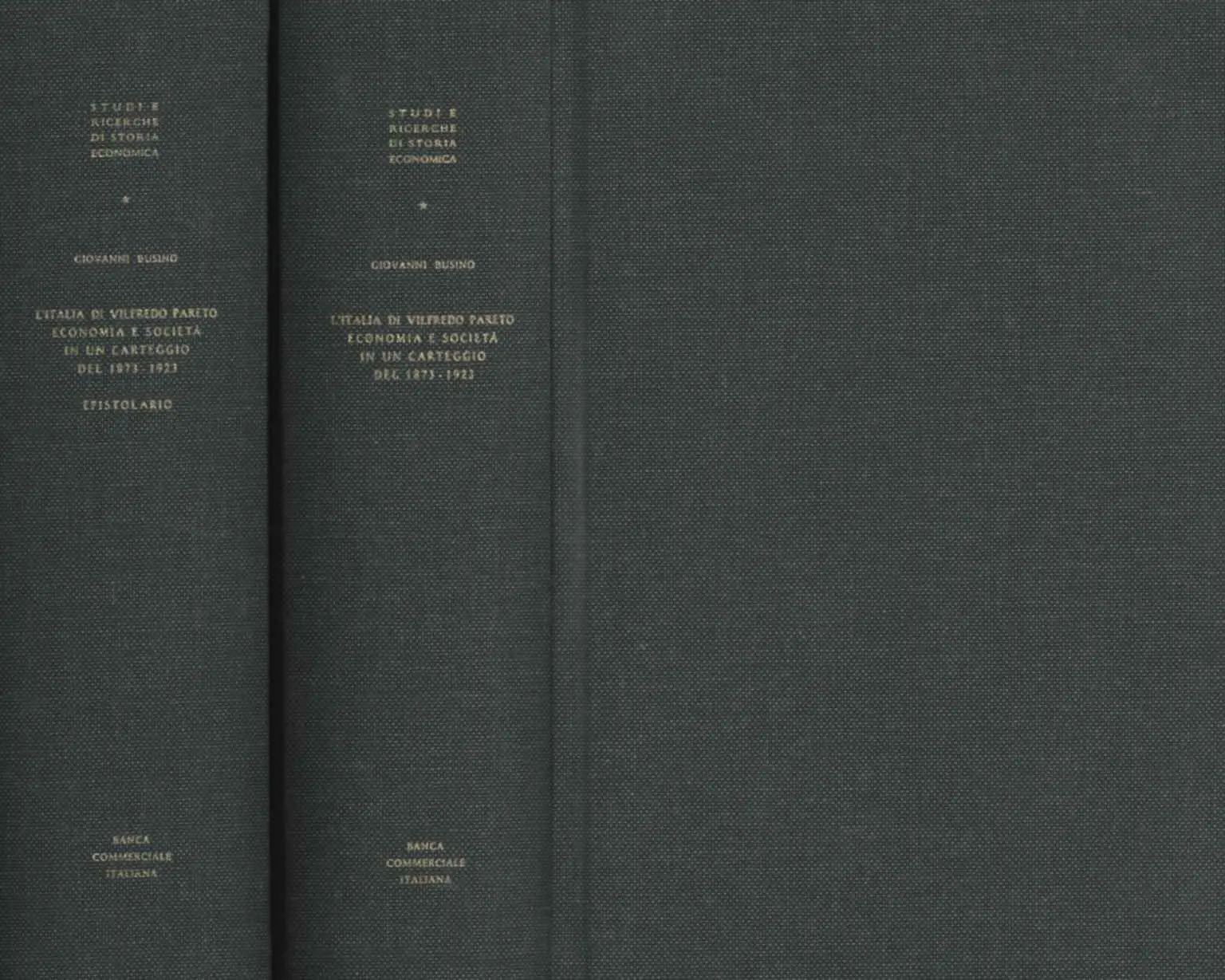Volume I: "Vilfredo Pareto's Italy. Economy and Society in a Correspondence from 1873 to 1923." Volume II: "Vilfredo Pareto's Italy. Economy and Society in a Correspondence from 1873 to 1923. Correspondence.