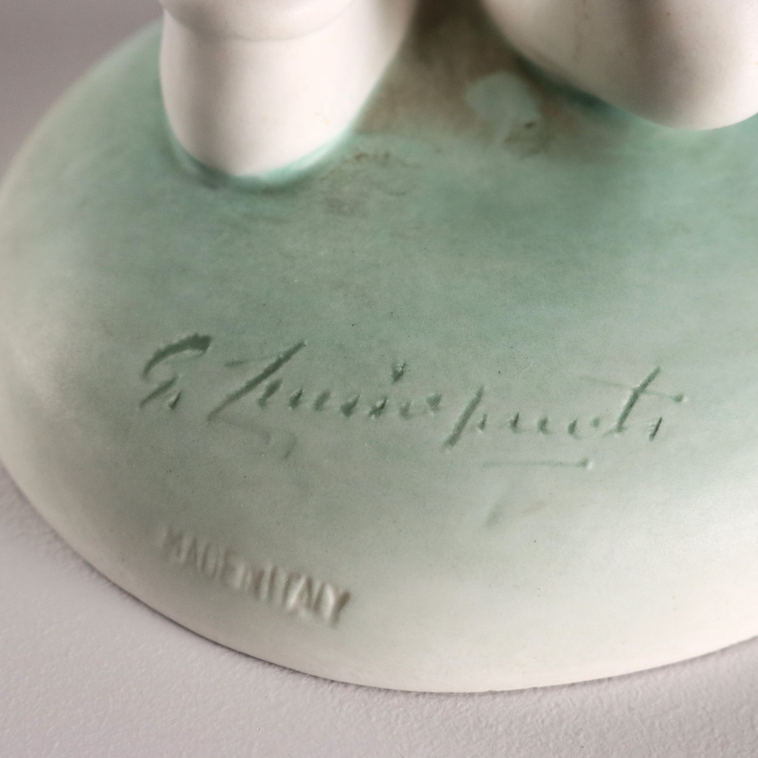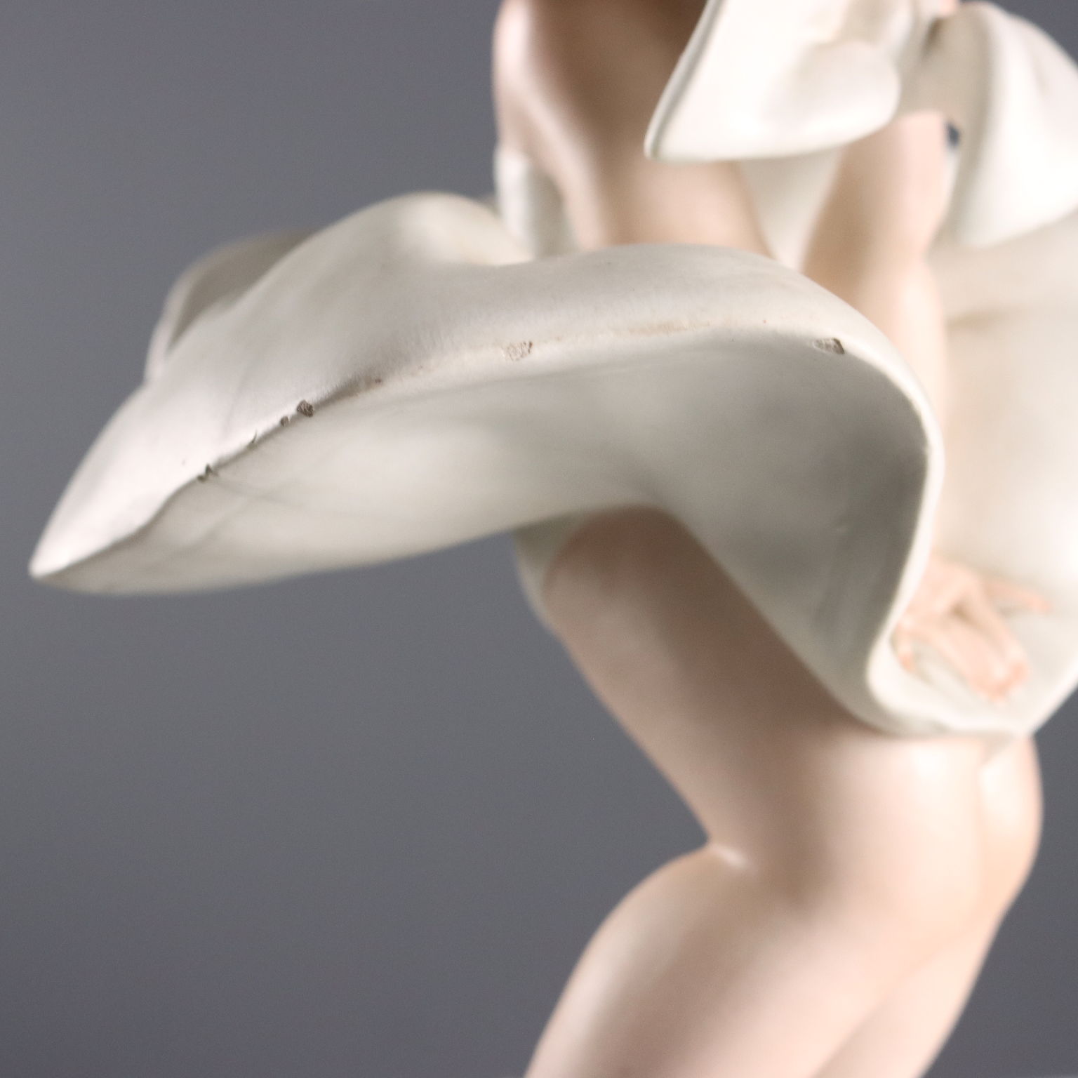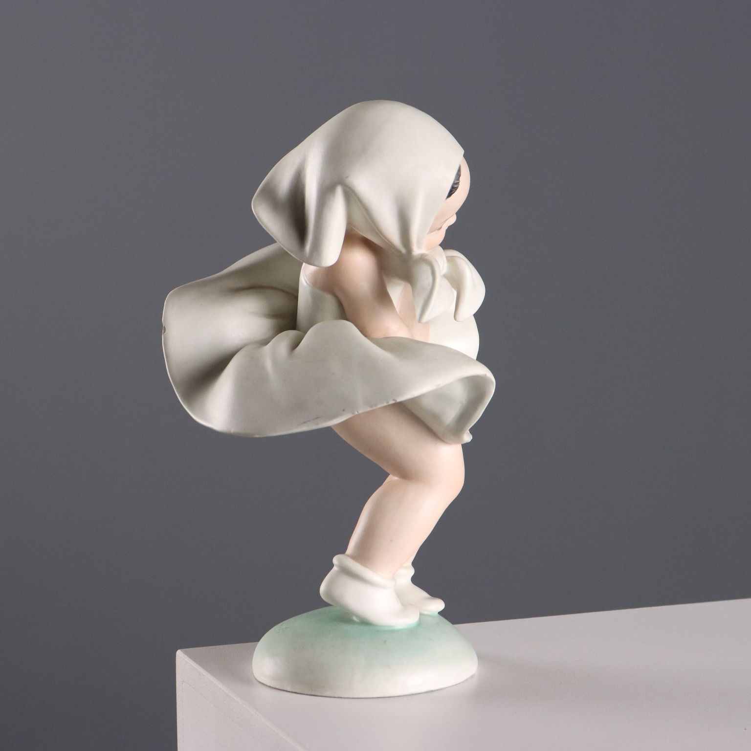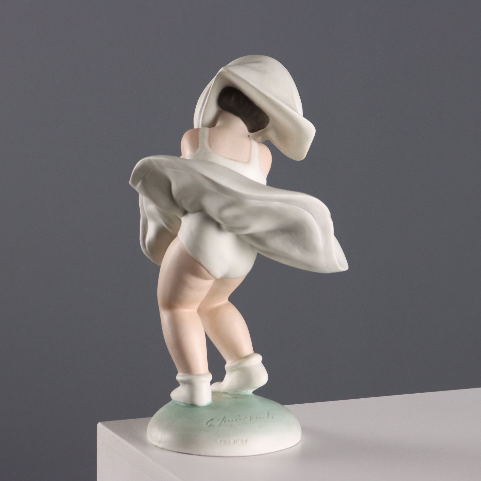 Gust of Wind, cast ceramic statue. The artist's signature is engraved on the base.