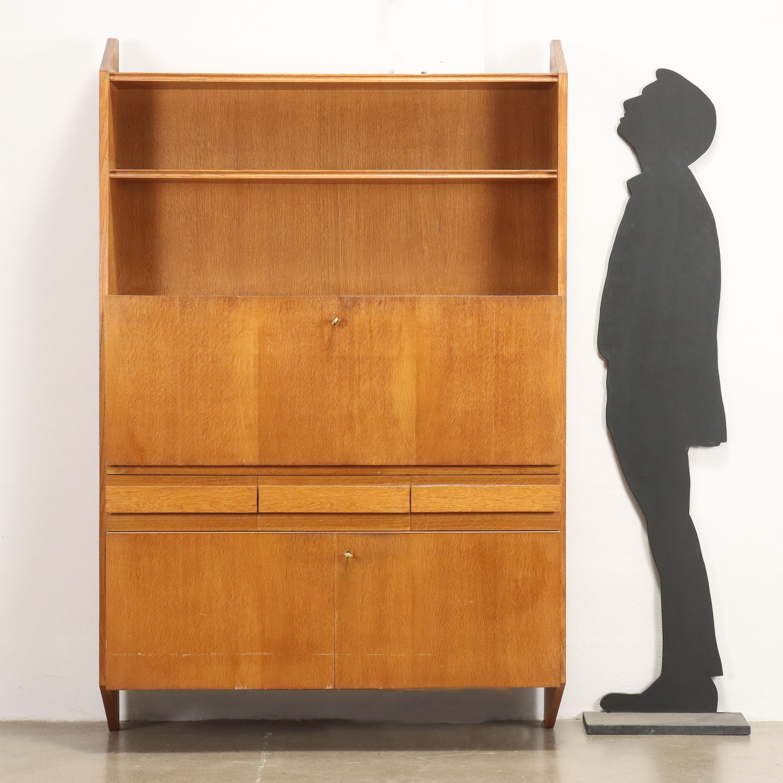 Vintage Cabinet Oak Veneered Wood Design Italy 1950s