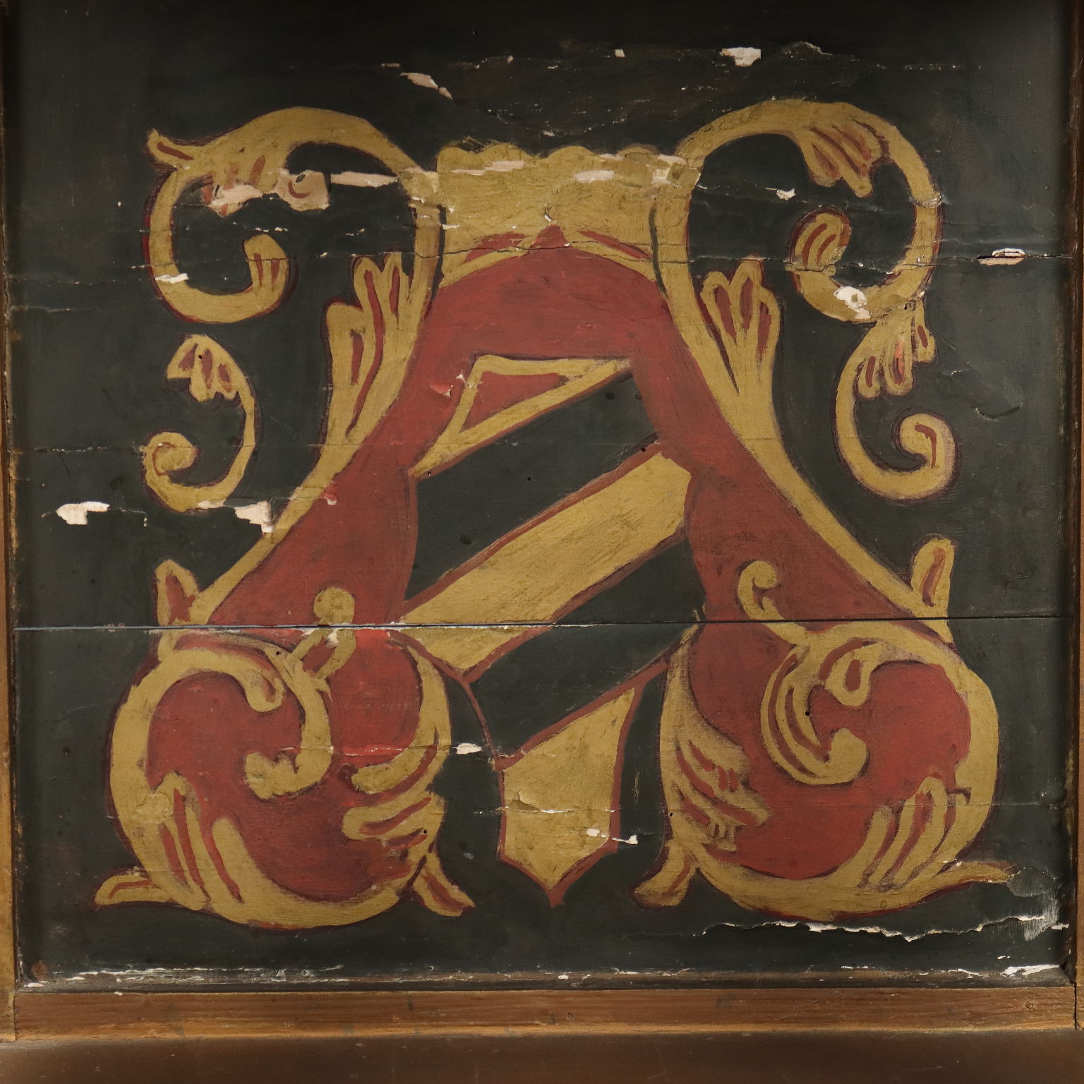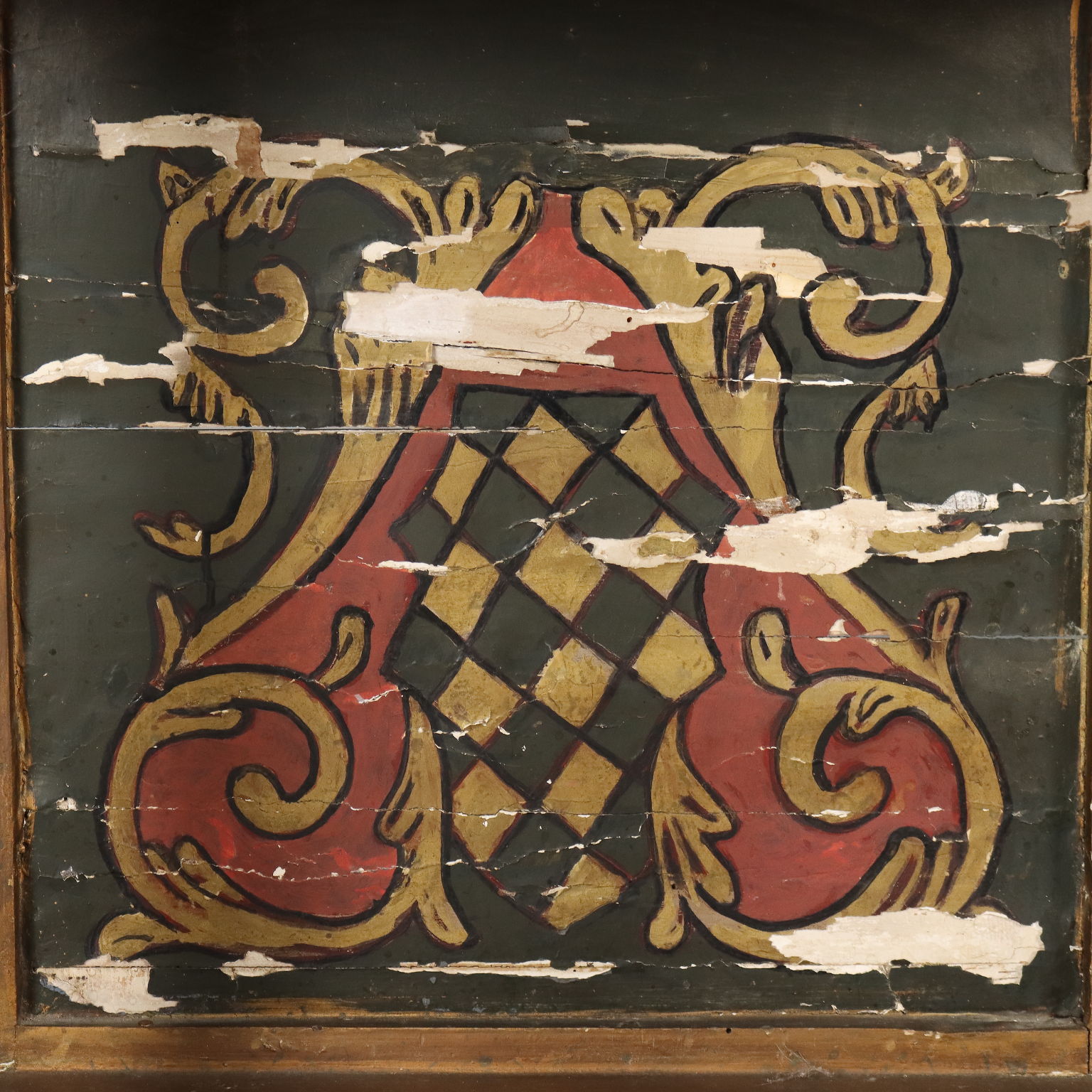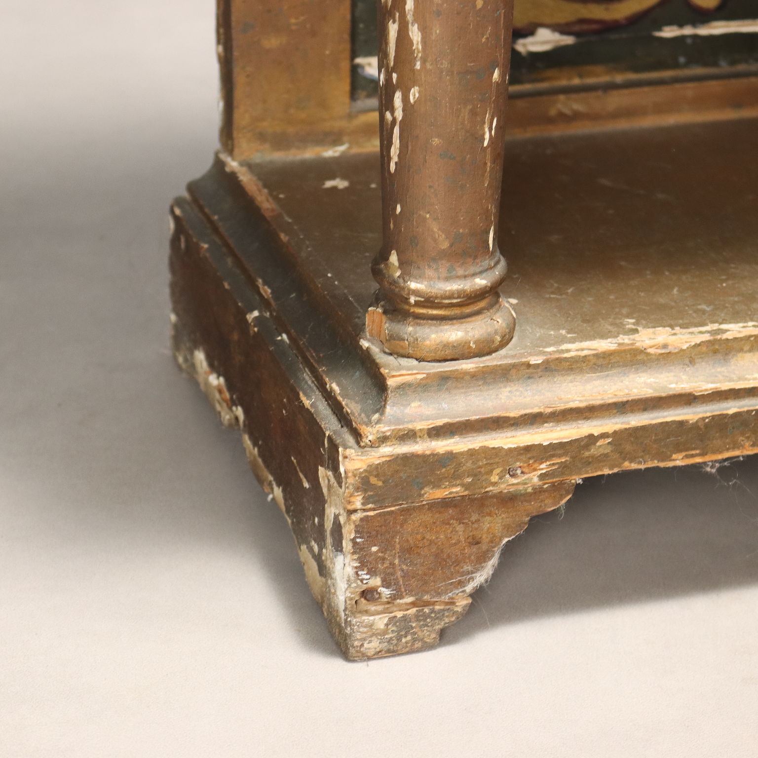 A pair of small cabinets painted in Renaissance style in the early 1900s. Supported by tall columns with a painted panel on the bottom, they feature two doors on the front. The doors depict profiles of Renaissance ladies and knights: the Sforzas on one, Ludovica Tornabuoni and Ioan Picus Mirandola on the other. The Medici coat of arms is on the sides, and other coats of arms adorn the base. Entirely painted in polychrome and partially gilded, with numerous paint losses.