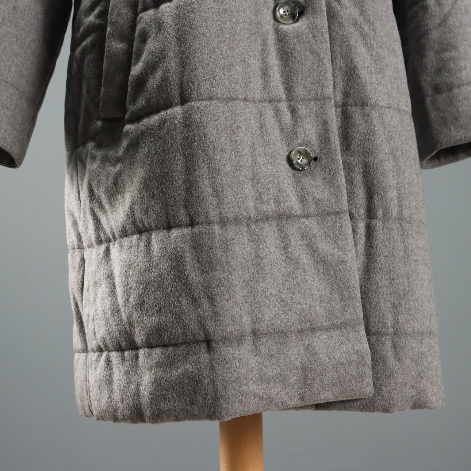 Single-breasted coat in pure gray cashmere with two inset pockets. Lined interior with pocket. Length: 92 cm. Sleeve length: 61 cm. Armhole: 60 cm. Shoulder width: 35 cm.