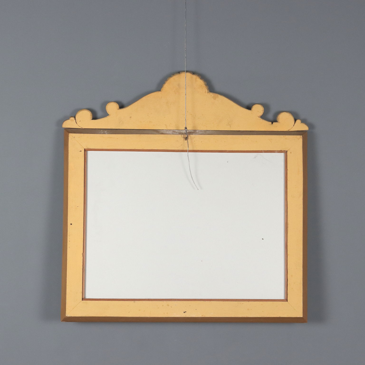 Lacquered wood mirror, carved scrollwork pediment with a central shell. Italy, 19th century.