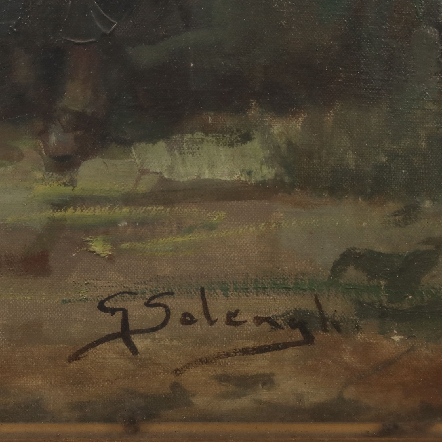 Giuseppe Solenghi, born in Milan in 1879, studied from 1892 to 1895 at the Accademia di Brera in Milan, attending painting courses under the direction of Cesare Tallone, sculpture and engraving courses under the direction of Ernesto Bazzaro, and finally perspective courses under the direction of Giuseppe Mentessi. Between 1895 and 1900 he dedicated himself to the reproduction of illuminated manuscripts. After the First World War, he began to exhibit his landscapes, especially urban views of old Milan, in group exhibitions, focusing on representing the humid panoramas of Milan's canals as well as those of the Venetian lagoons. After his death, he was buried at the Monumental Cemetery of Milan.Age: 20th Century / 1901 - 2000