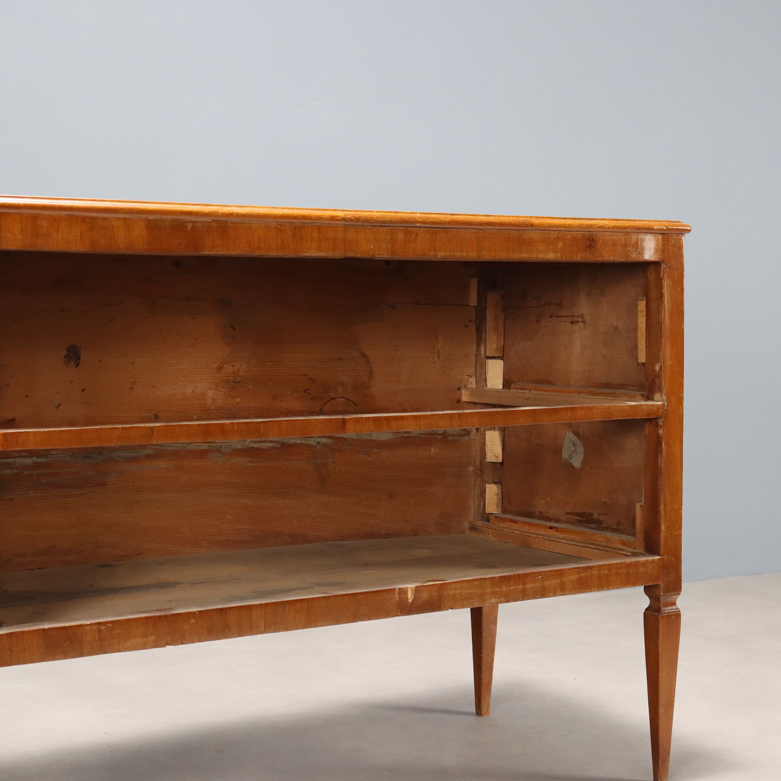 It is one of the most precious and sought-after woods in cabinet making. It was discovered in Central America around 1600 and began to be imported to England in the 1700s. Much appreciated for its hardness and indestructibility, it became widespread following the blocking of walnut exports from France in 1720 and the consequent elimination of English import duties on mahogany from the colonies in America and India. The most valuable version comes from Cuba, but it became very expensive. At the end of the 18th century it began to be used also in France in Louis XVI, Directory and Empire furniture, its diffusion declined starting from when Napoleon, in 1810, forbade its import. It was generally used in the manufacture of elegant furniture, due to its characteristics and beautiful grain.Other customers have searched: