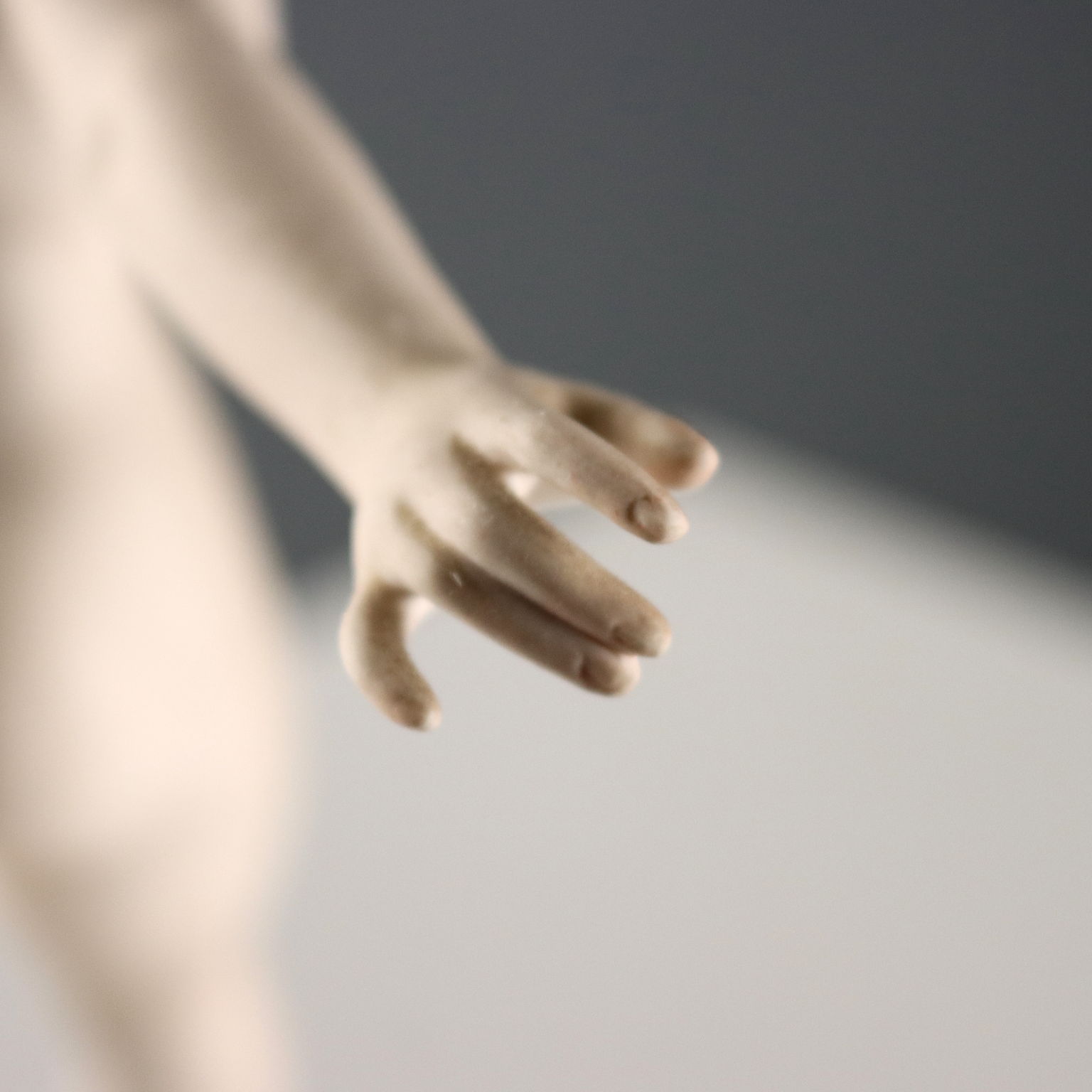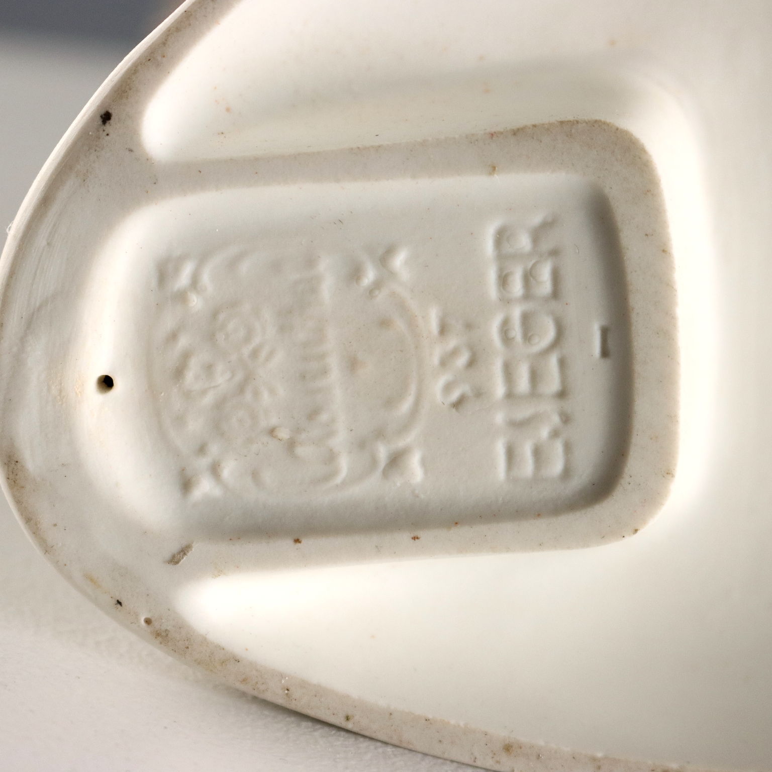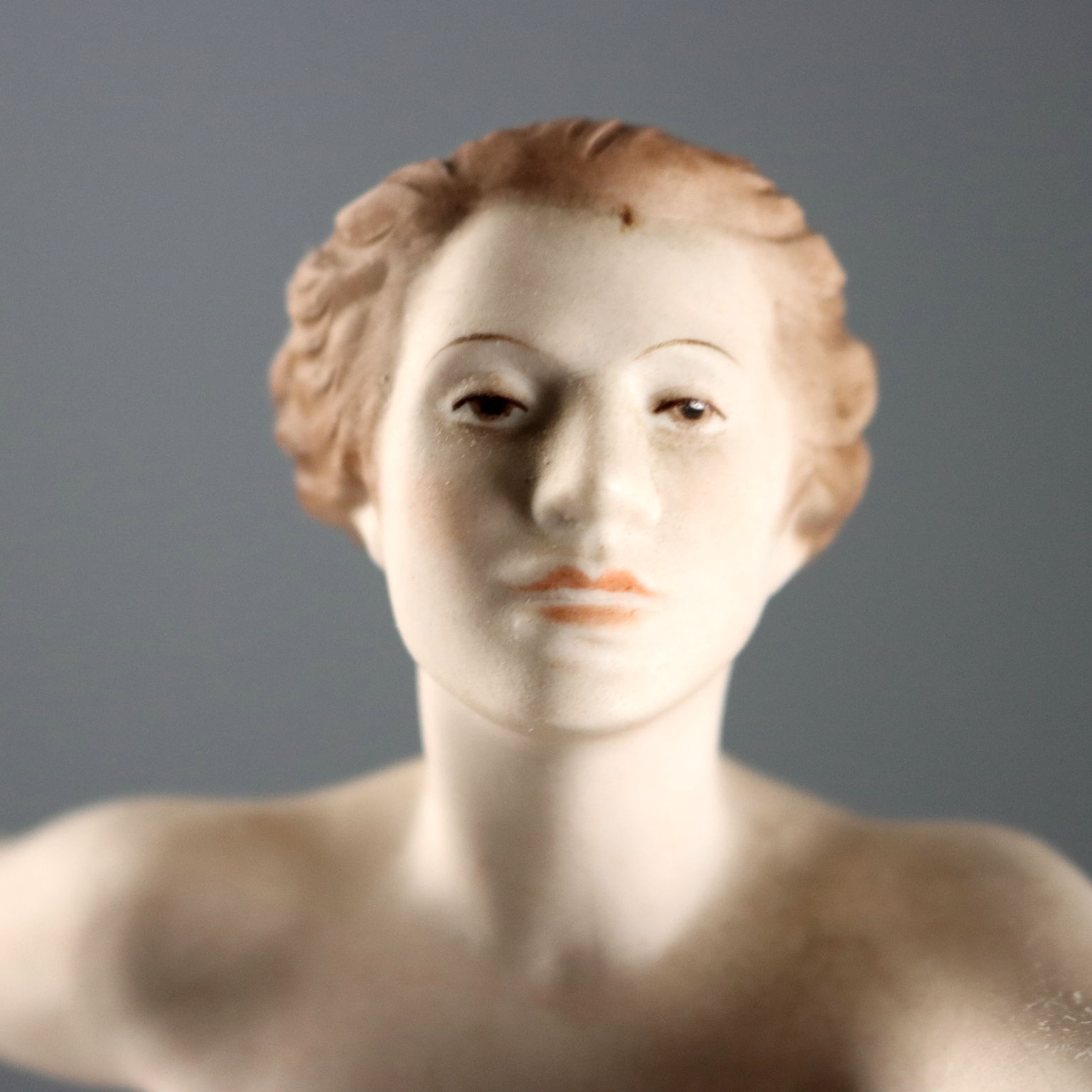 Biscuit sculpture depicting a nude female figure running. The manufacturer's mark is under the base.