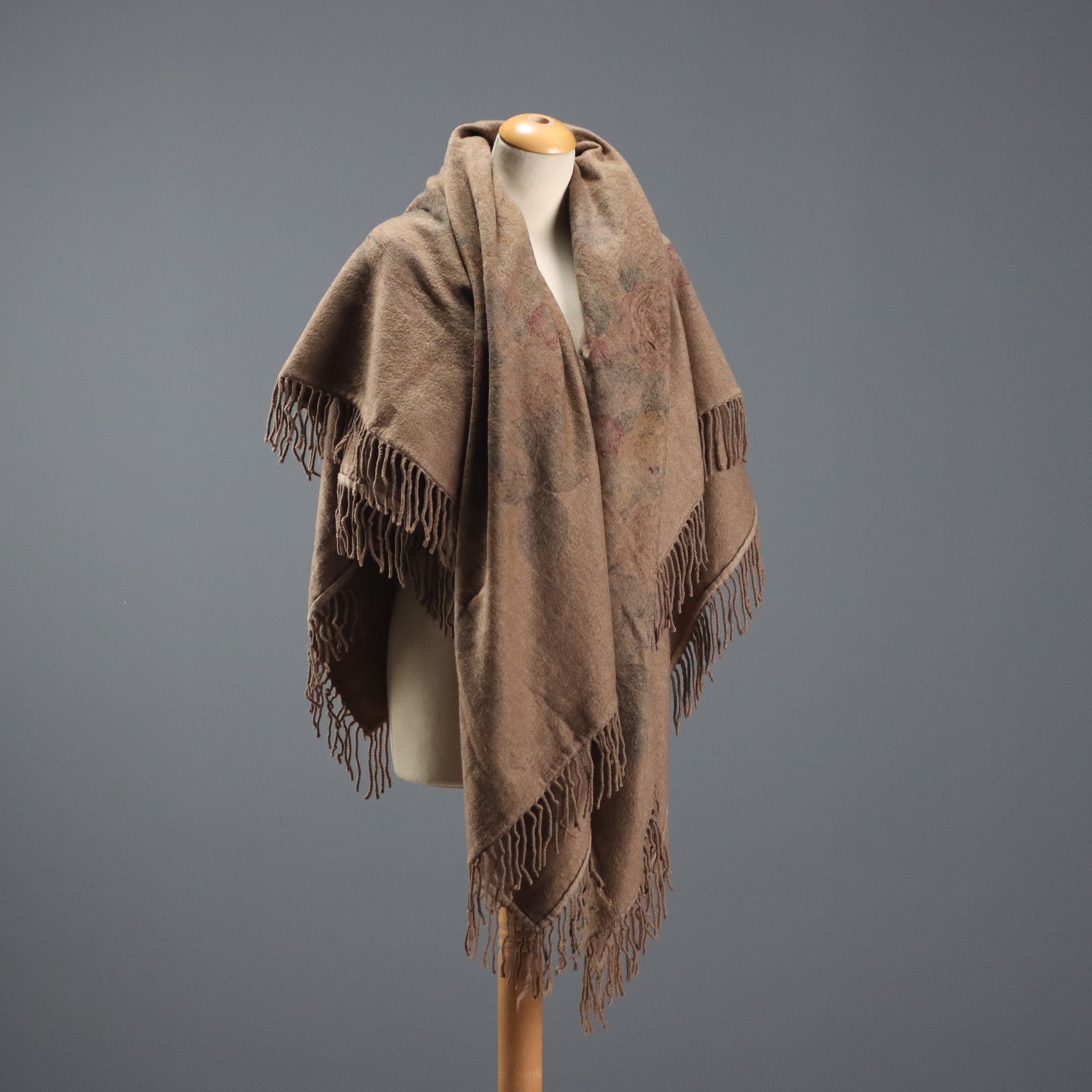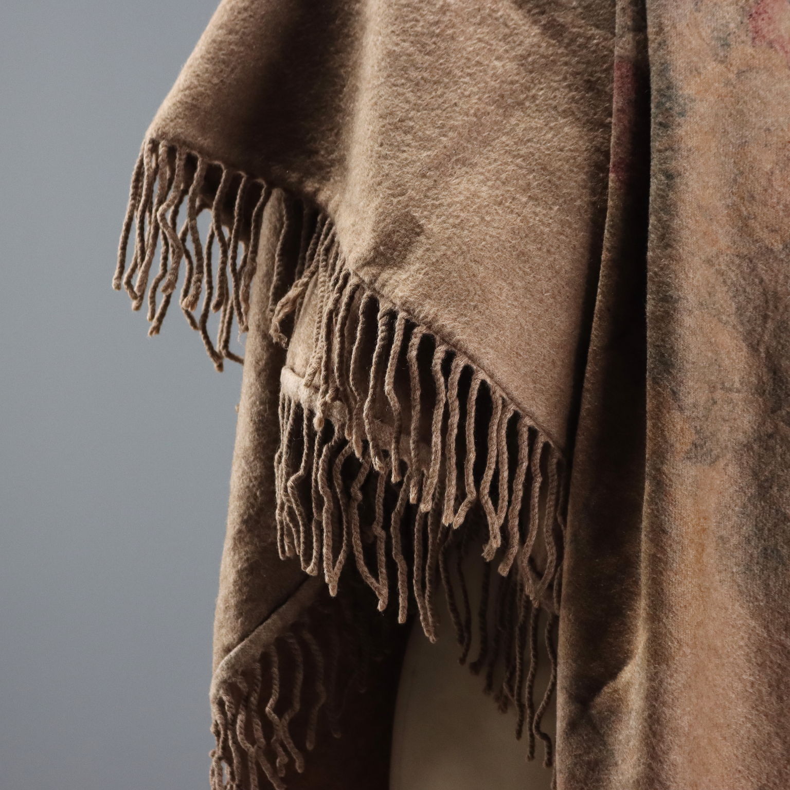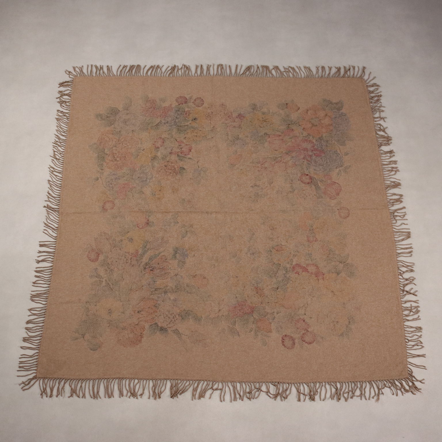 Fringed blanket made of soft and enveloping dove grey cashmere with a delicate floral print.