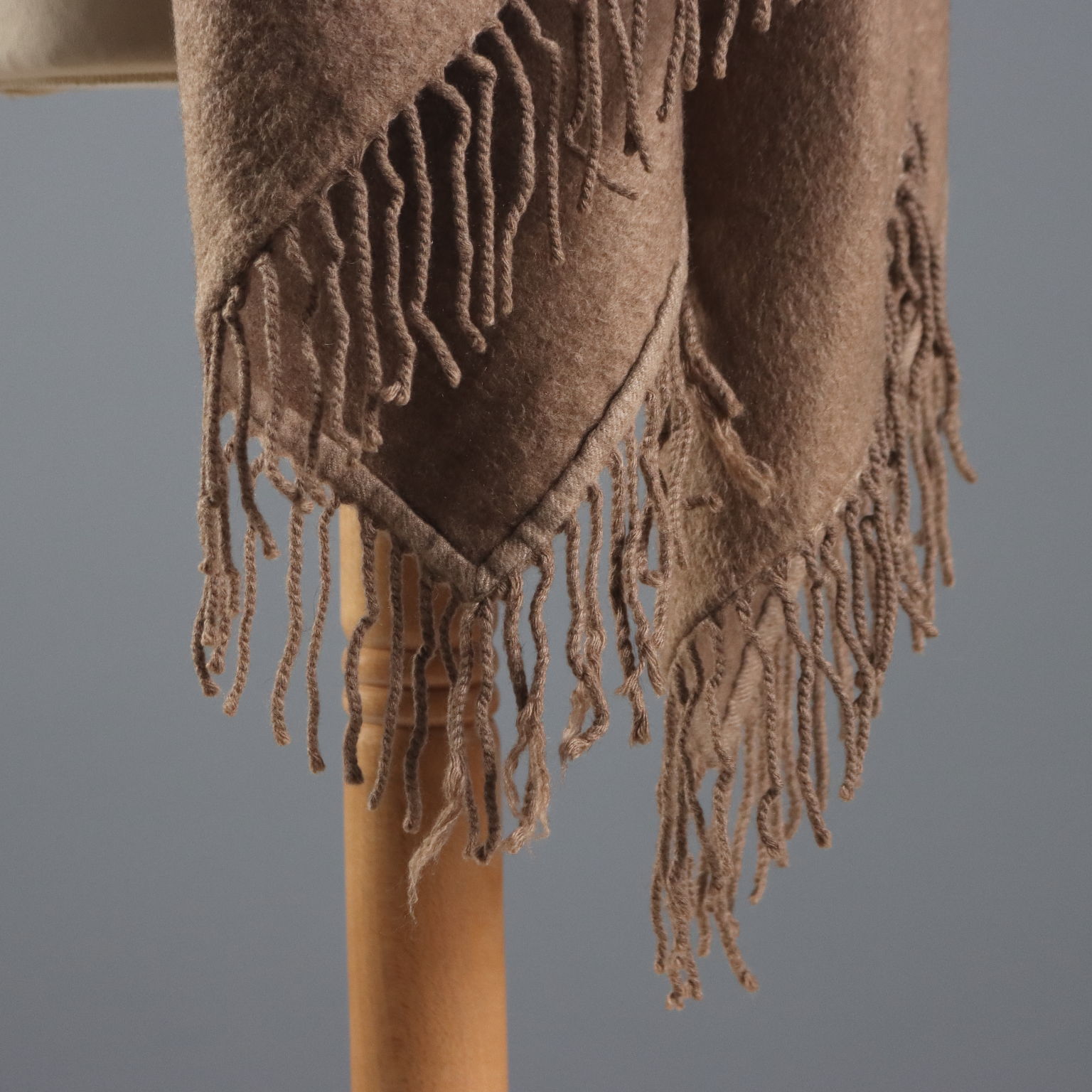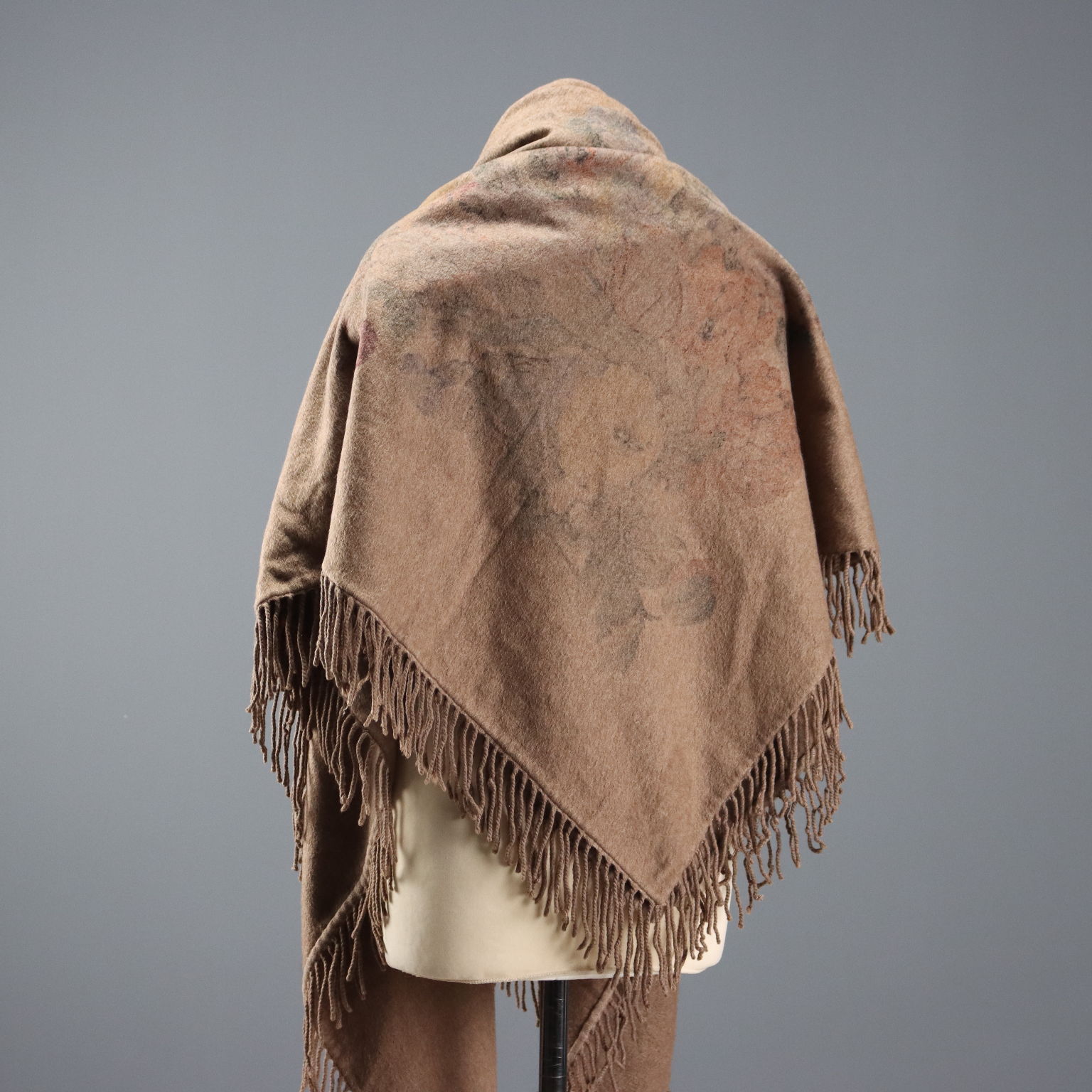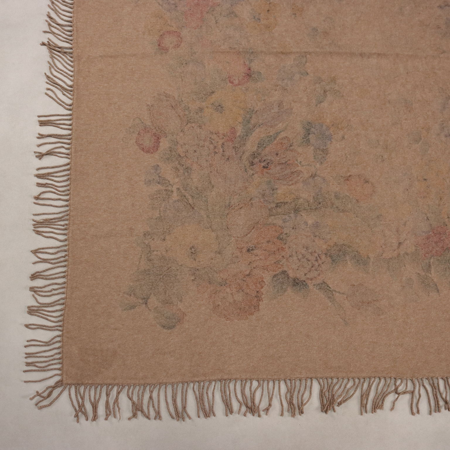 Fringed blanket made of soft and enveloping dove grey cashmere with a delicate floral print.