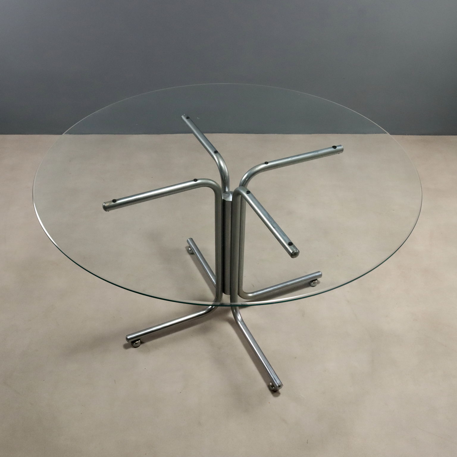 Vintage Round Table Design Chromed Metal Glass 1970s