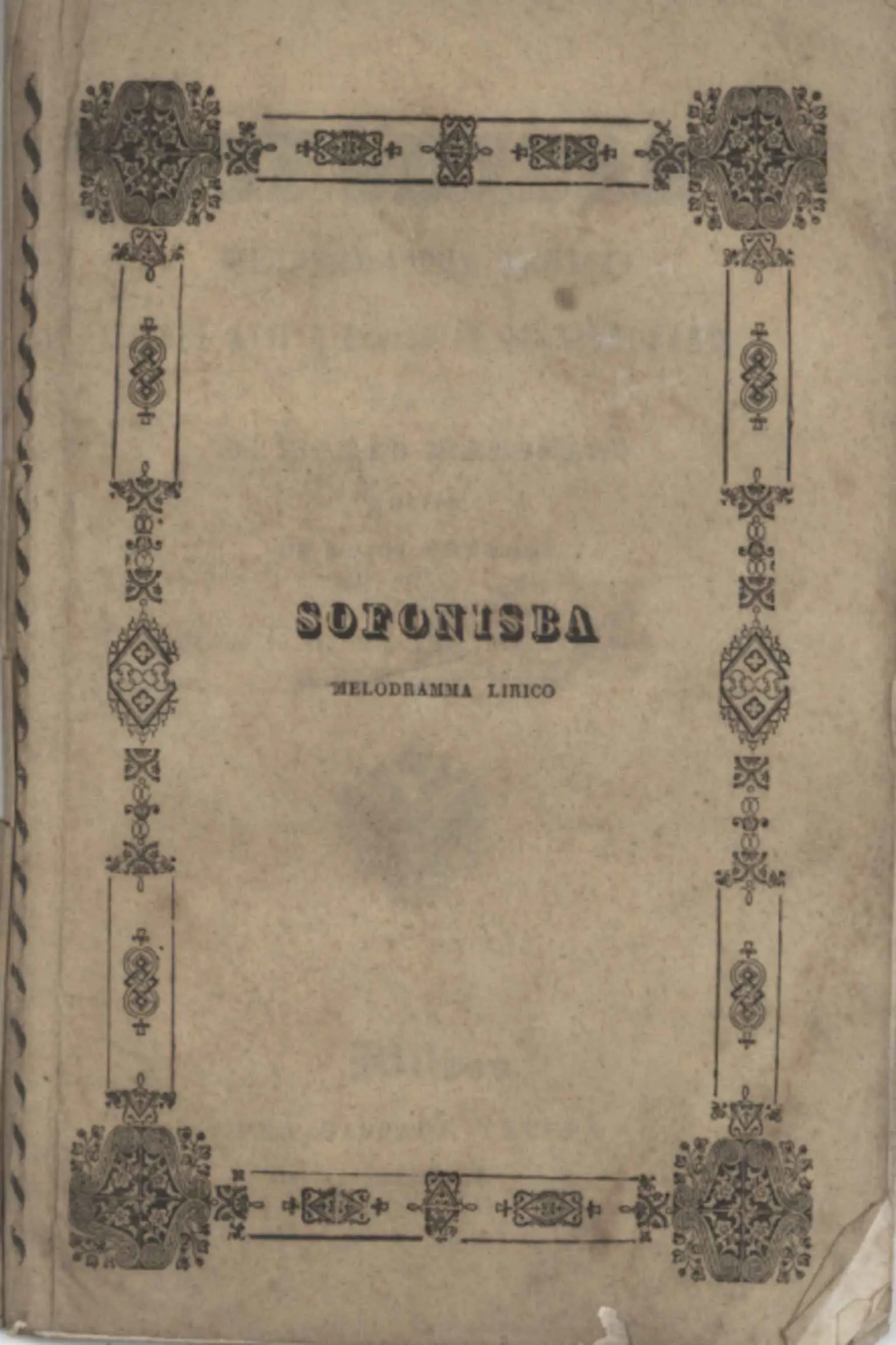 Sofonisba Melodramma Lirico in due atti e diviso in quattro parti da rappresentarsi nell'Imp. Regio Teatro alla Scala il Carnevale del 1844