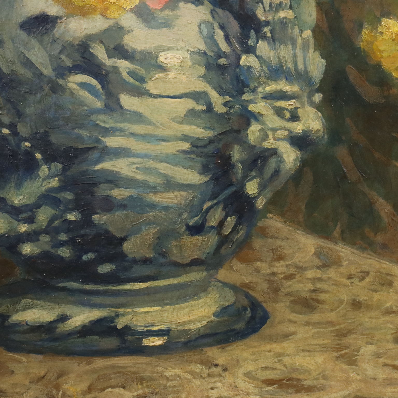 Oil on canvas. Signed lower right. The Pisan artist was best known as an engraver (he taught engraving at the Academy of Fine Arts in Florence) but also devoted himself to painting, which he achieved with remarkable originality and extraordinary poetic depth, using colors that he himself defined as "the colors of the soul." Although he favored popular subjects, flowers were also often the subject of his works, so much so that a section of a recent (2023) retrospective dedicated to him in Pisa was titled "The Colors and Flowers of the Soul." The work is presented in a contemporary frame.