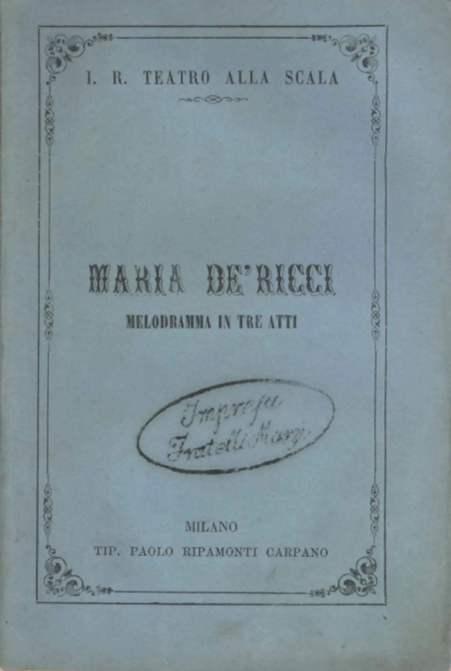 Maria de' Ricci Melodramma in tre atti da rappresentarsi nell'Imp. Regio Teatro alla Scala nella stagione di Carnevale del 1858-59