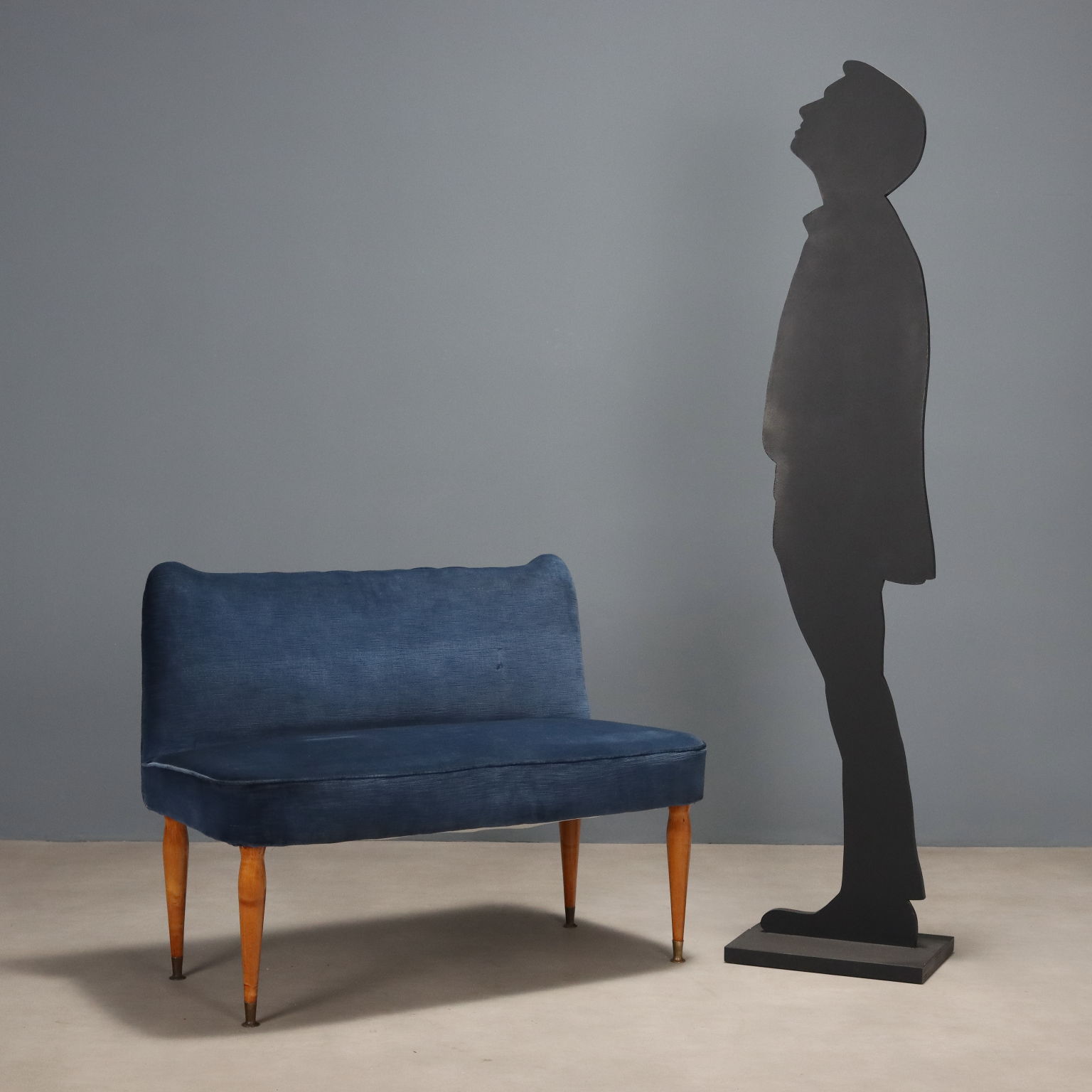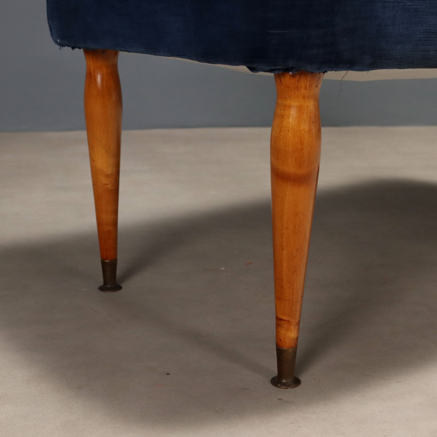 Vintage Bench Beech Brass Velvet Design Italy 1950s