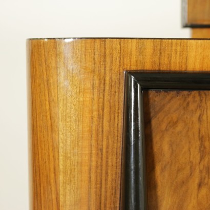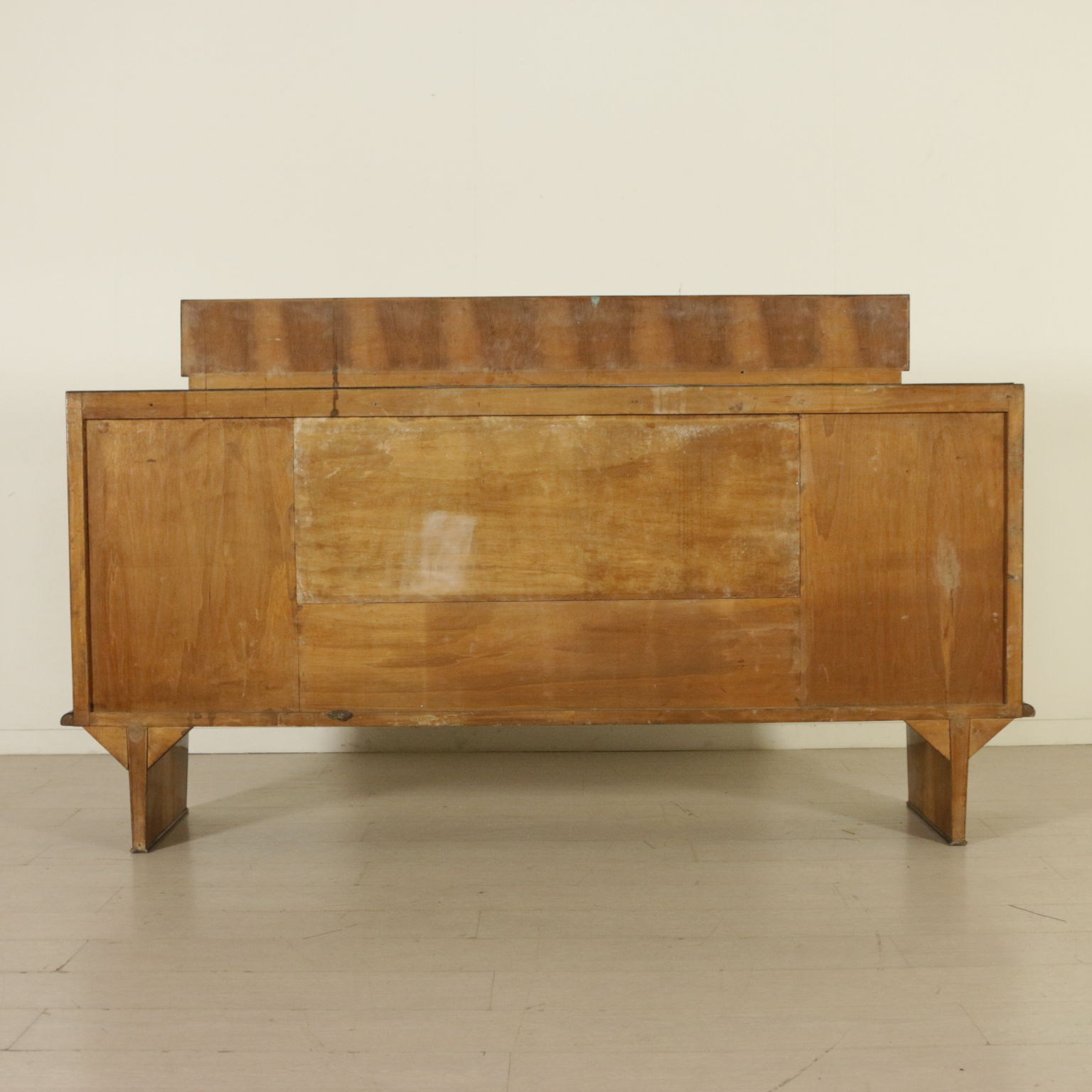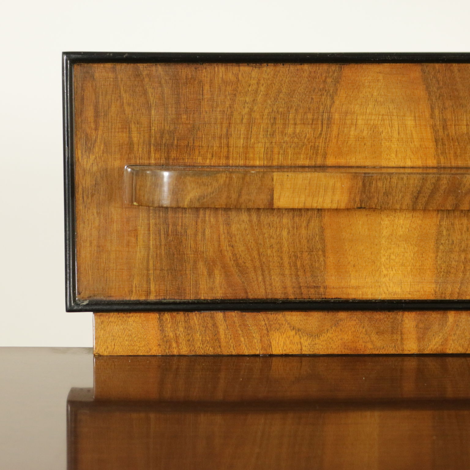Gabinete con cajones; de chapa de madera, nudosa, la parte superior cubierta de formica que no es original para el período de latón asas.