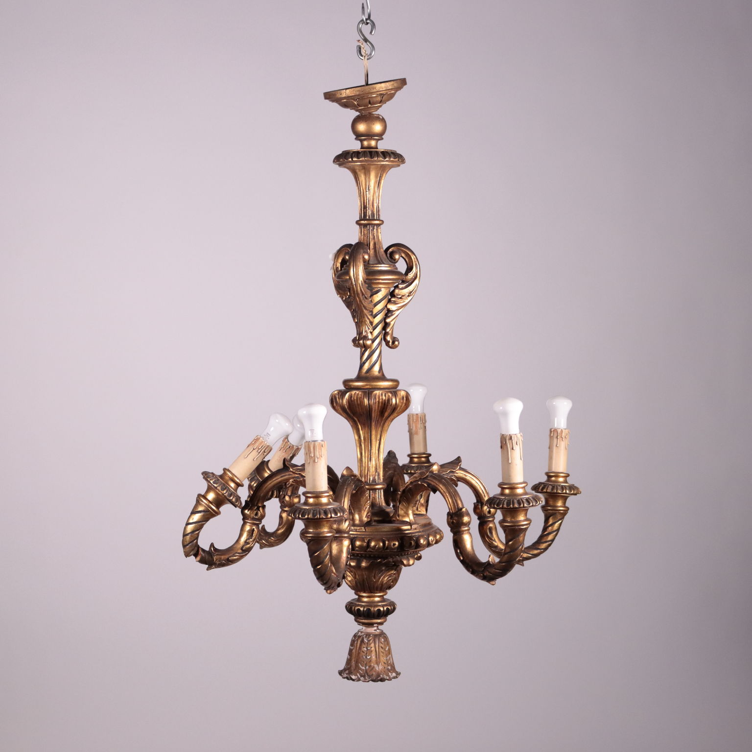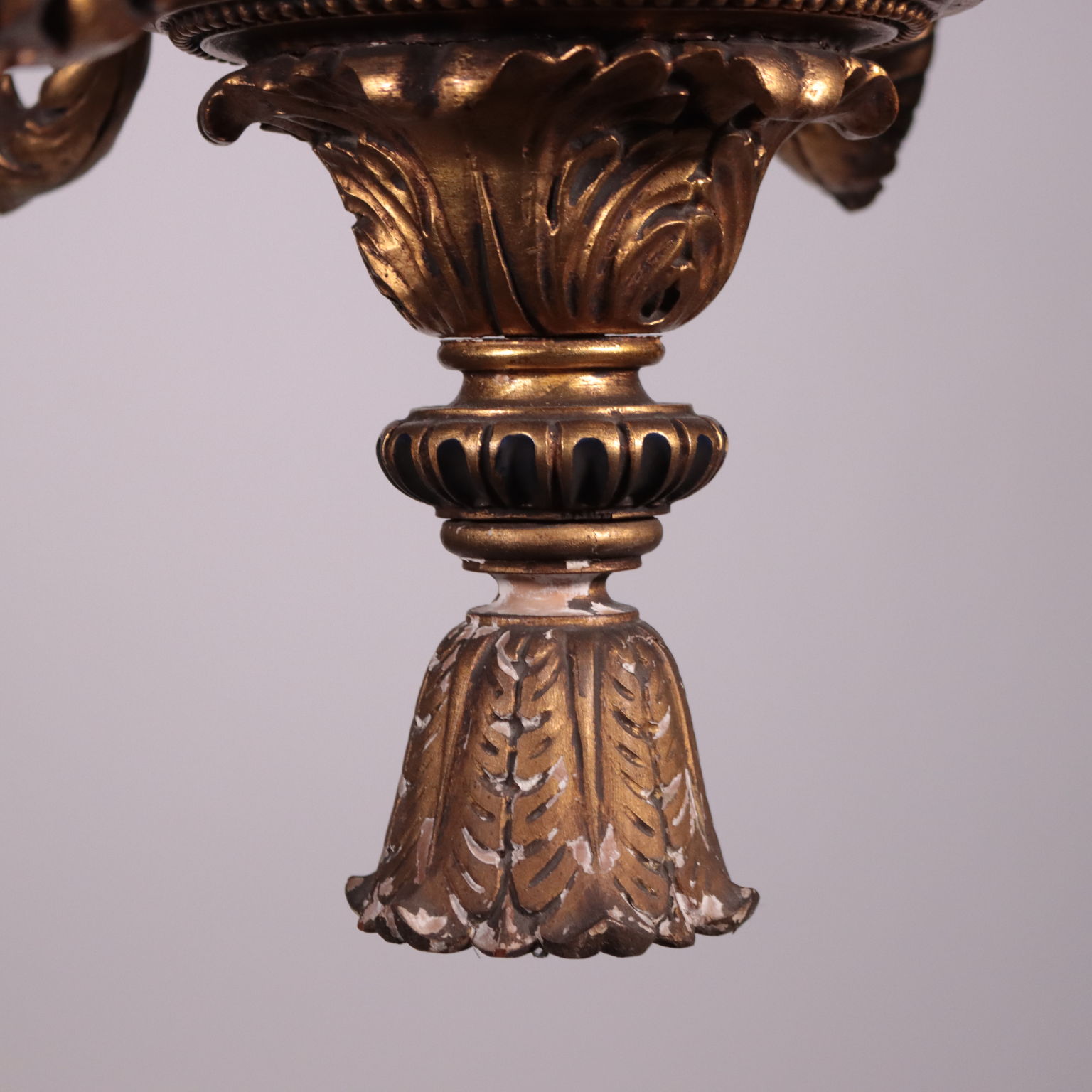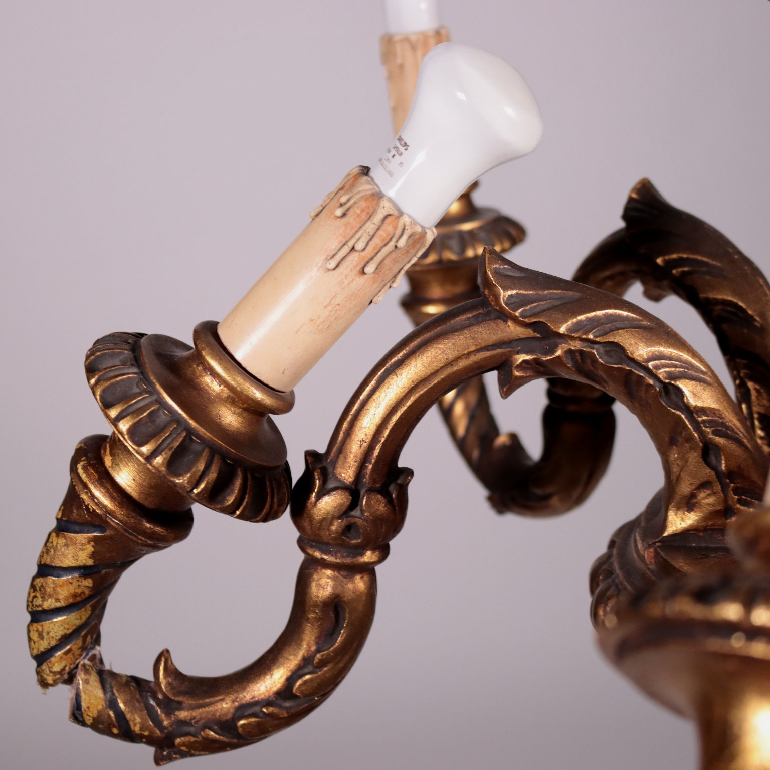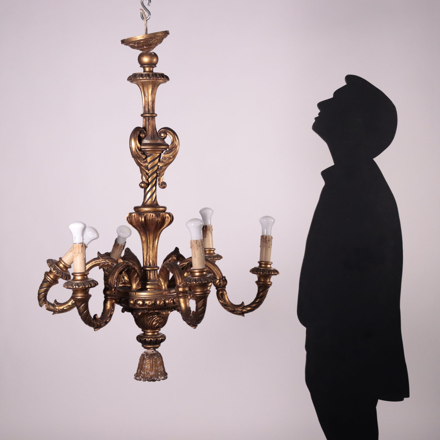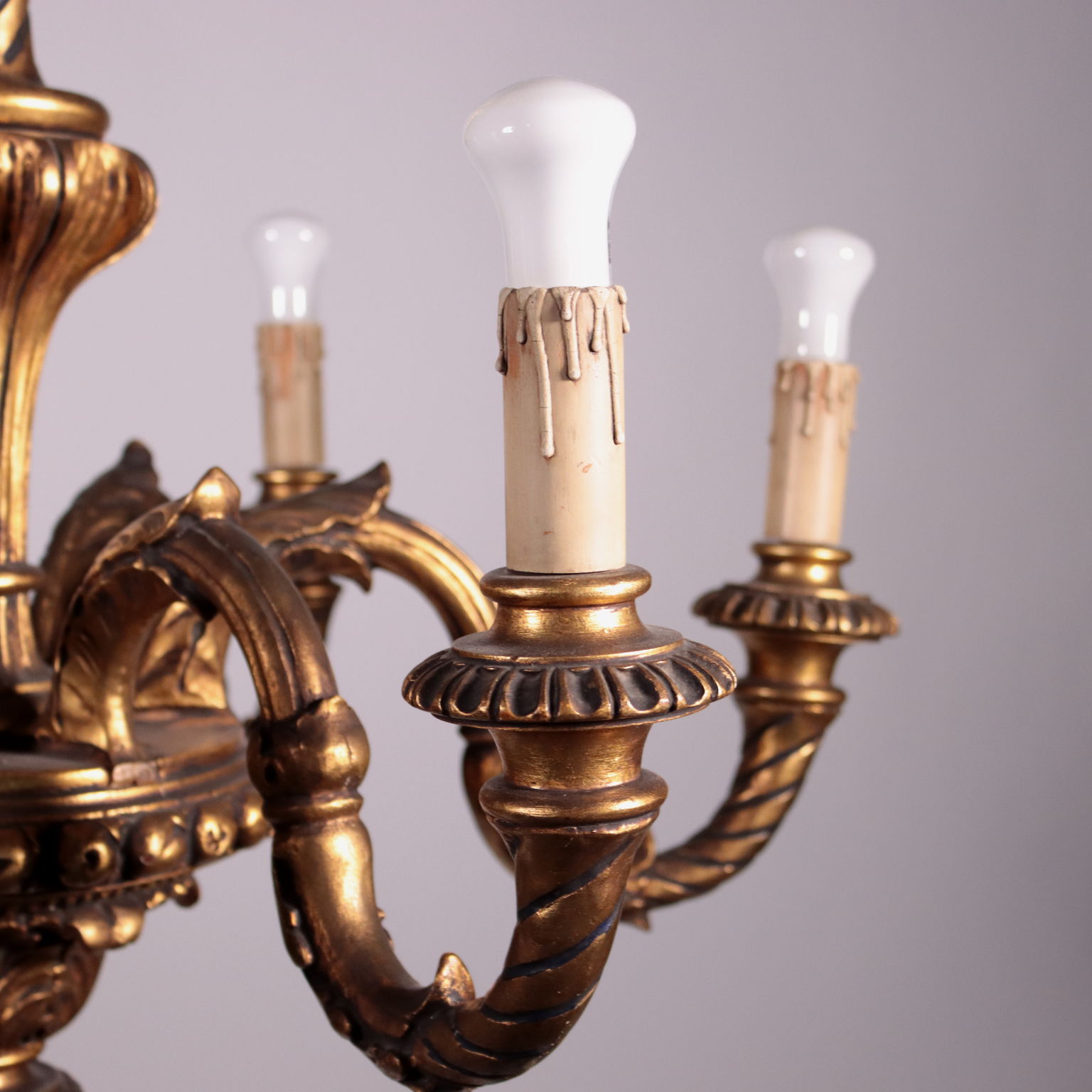Araña neorrenacentista de finales del siglo XIX en madera tallada y dorada.