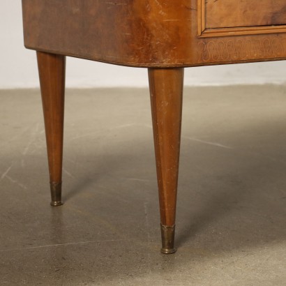Cómoda con espejo. Chapa de madera de brezo, tapa de cristal con tratamiento posterior, patas con puntas de latón.