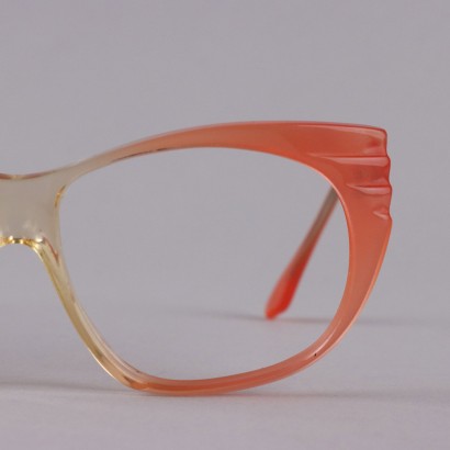Marco vintage de Pierre Balmain en material plástico color salmón sombreado. El modelo es ligeramente cat-eye, el estado es muy bueno: es posible que nunca se haya usado. Medidas: patillas 14 centímetros, lentes 58 milímetros.