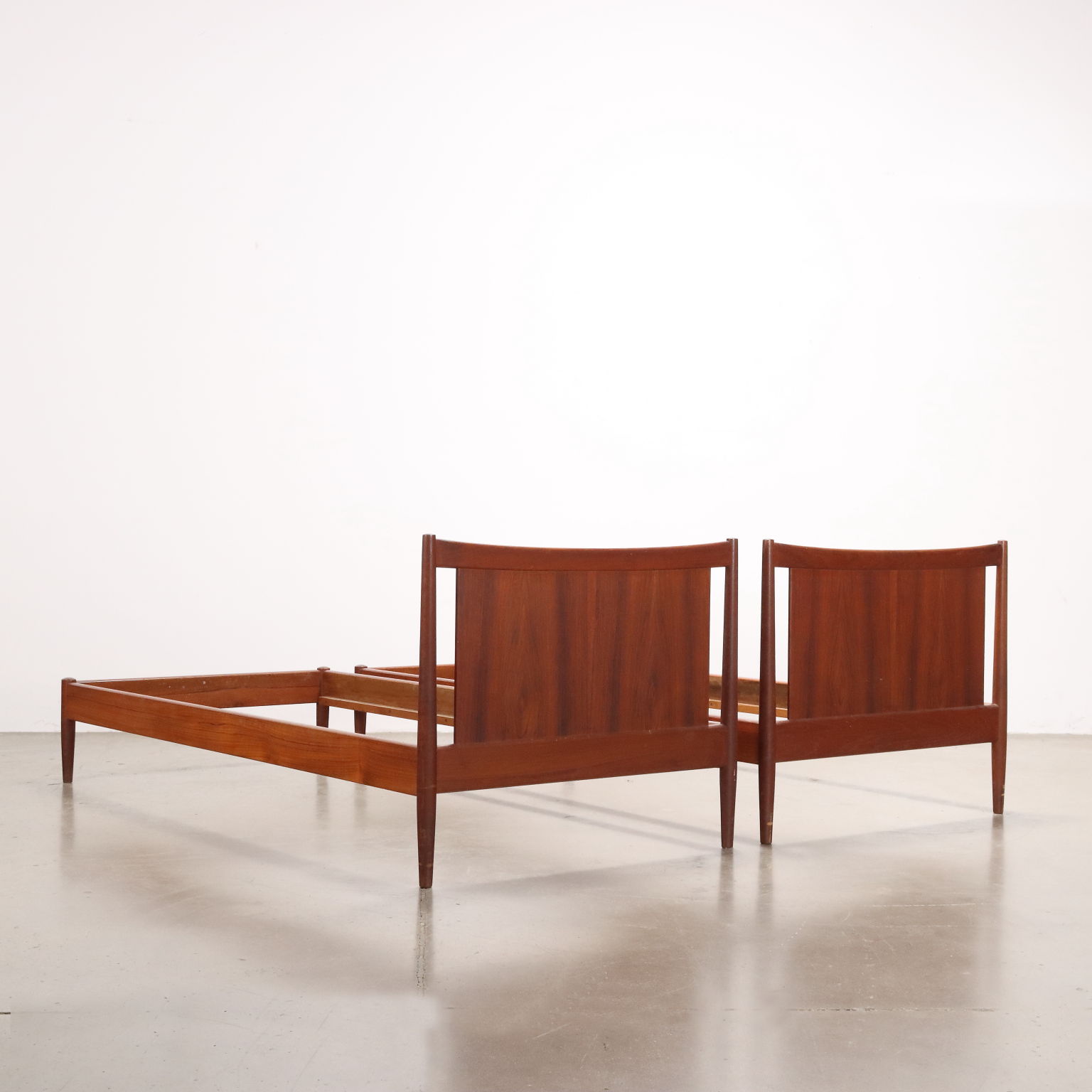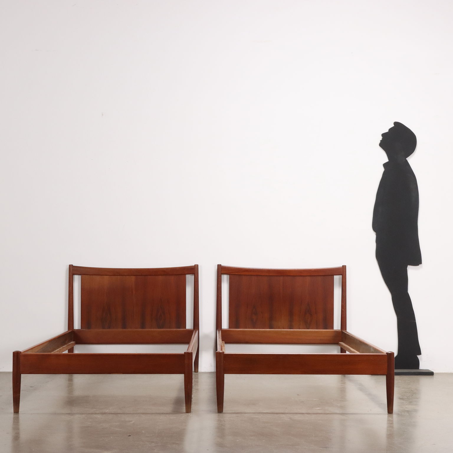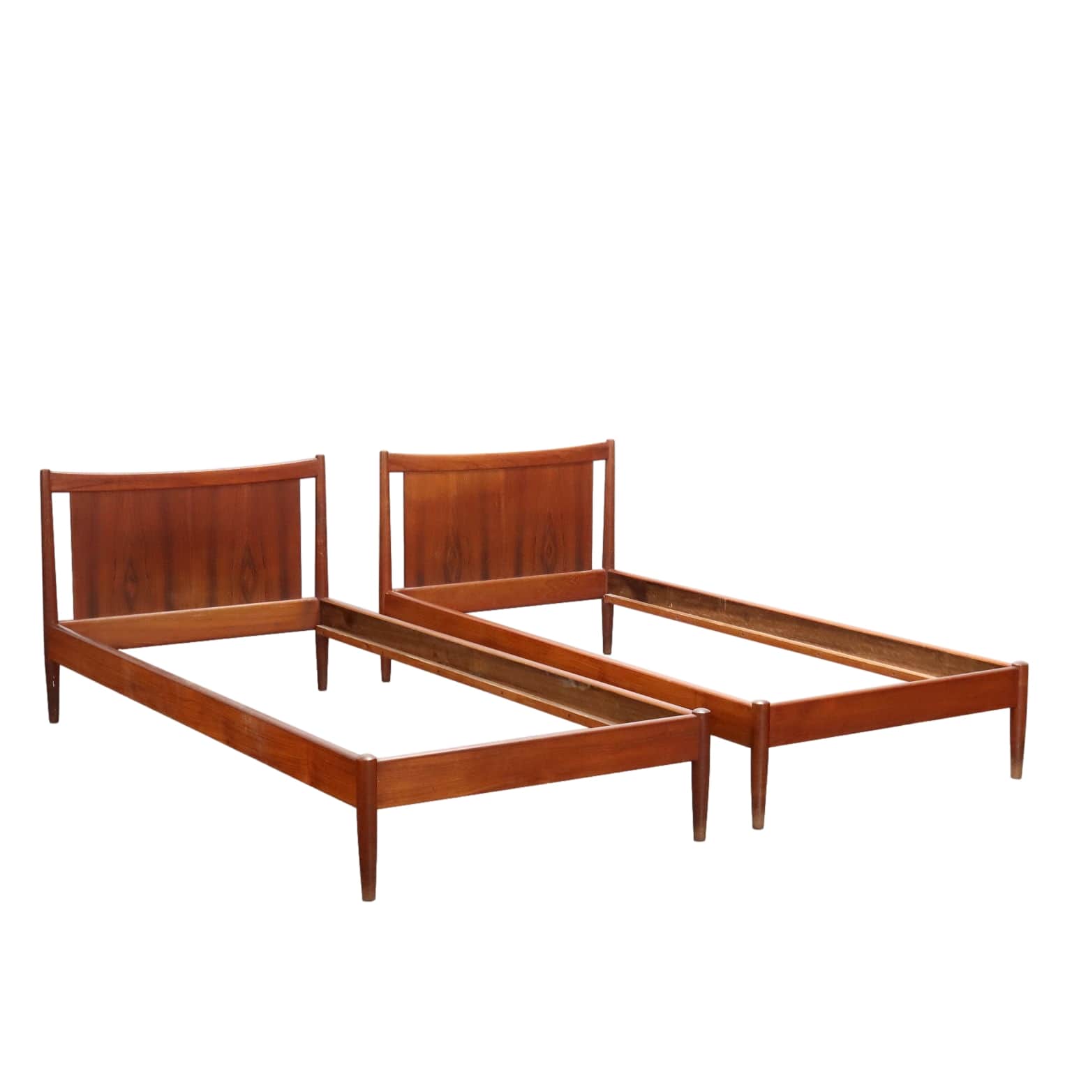 Par de camas individuales vintage con estructura de madera chapada en teca.