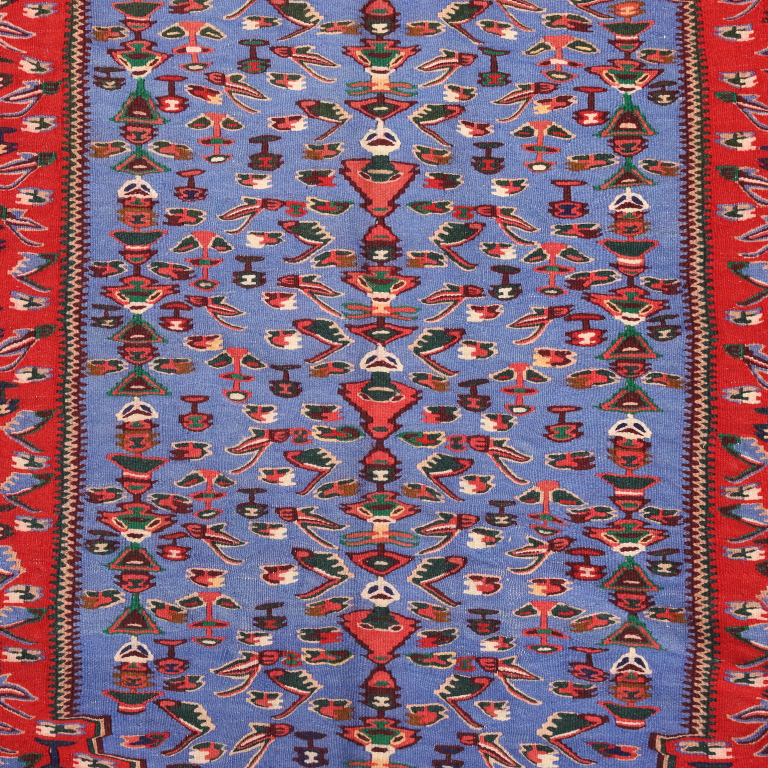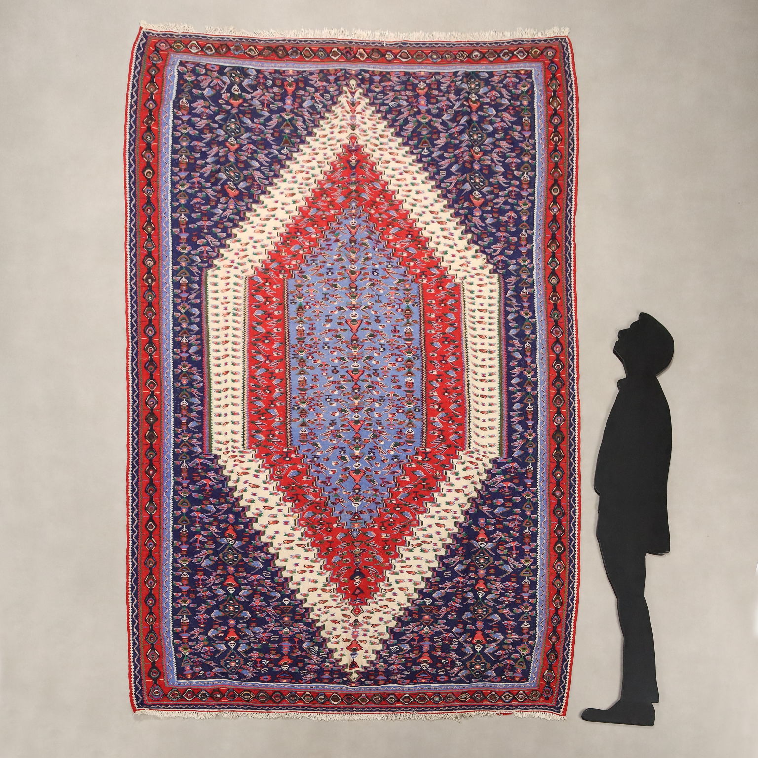 Alfombra Kilim Senne' de algodón y lana, nudo extrafino, hecha a mano.