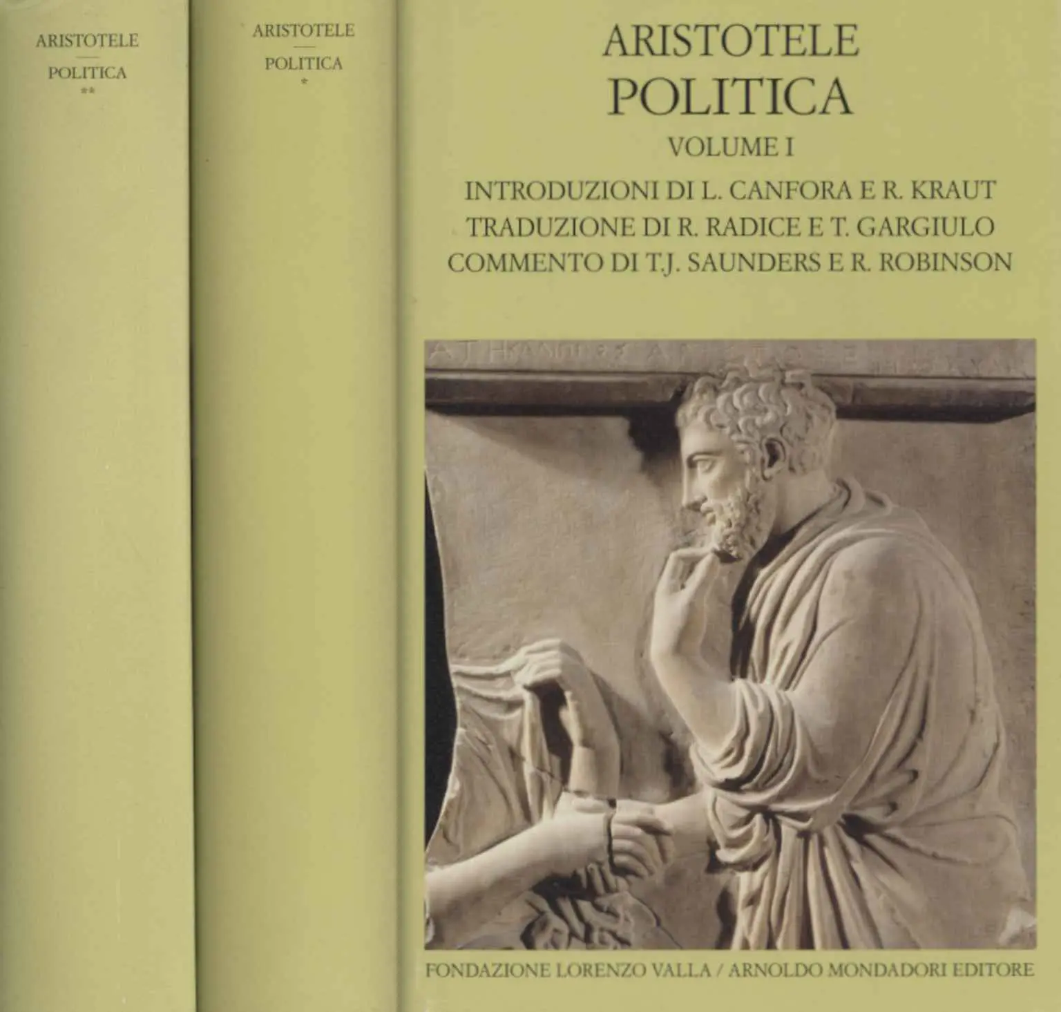 Volumen 1: Libros I-IV. Introducción de Luciano Canfora y Richard Kraut. Traducción de Roberto Radice y Tristano Gargiulo. Comentarios de Trevor J. Saunders y Richard Robinson. Volumen 2: Libros V-VIII. Traducción de Roberto Radice y Tristano Gargiulo. Comentarios de David Keyt y Richard Kraut. Texto en griego al dorso.