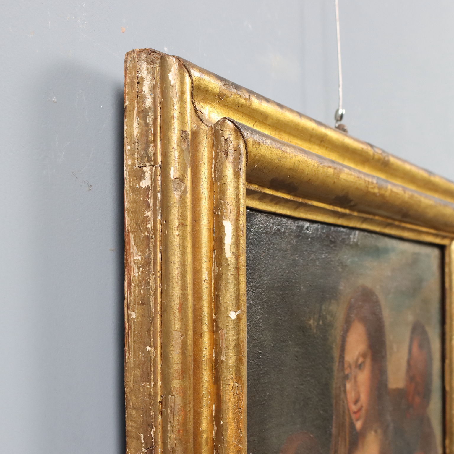 Óleo sobre lienzo. En esta obra, la Sagrada Familia se dirige a un joven fraile con hábito franciscano, probablemente en referencia al comitente: las manos extendidas del Niño se extienden para abrazarlo, bajo la mirada protectora de María y José. Previamente restaurada y reencuadernada, la pintura se presenta en un marco antiguo del siglo XVIII, redorado.
