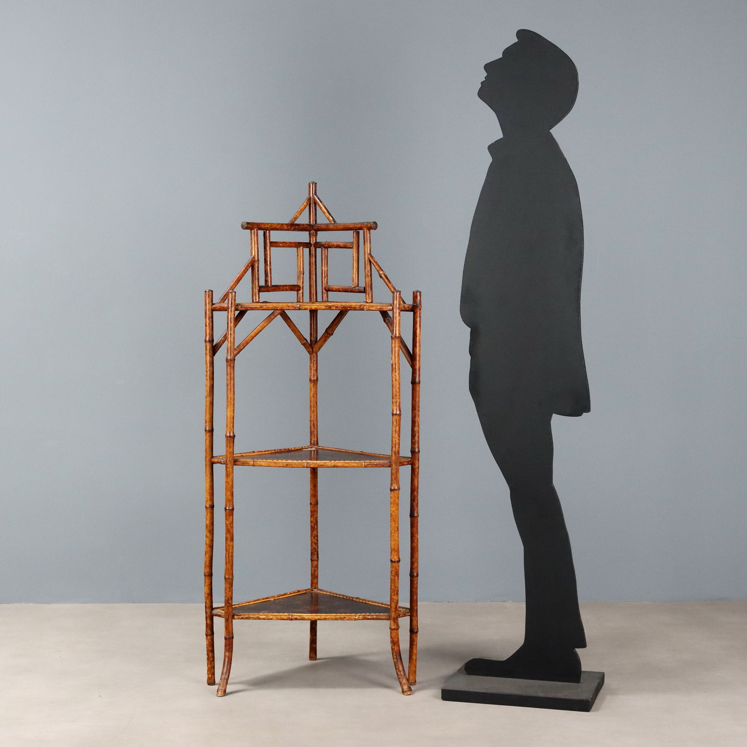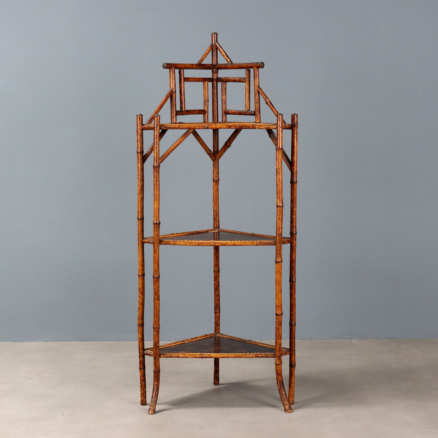 Vitrina de bambú. Tres estantes de estilo chinoiserie lacados y pintados, con leves signos de uso. China, siglo XX.